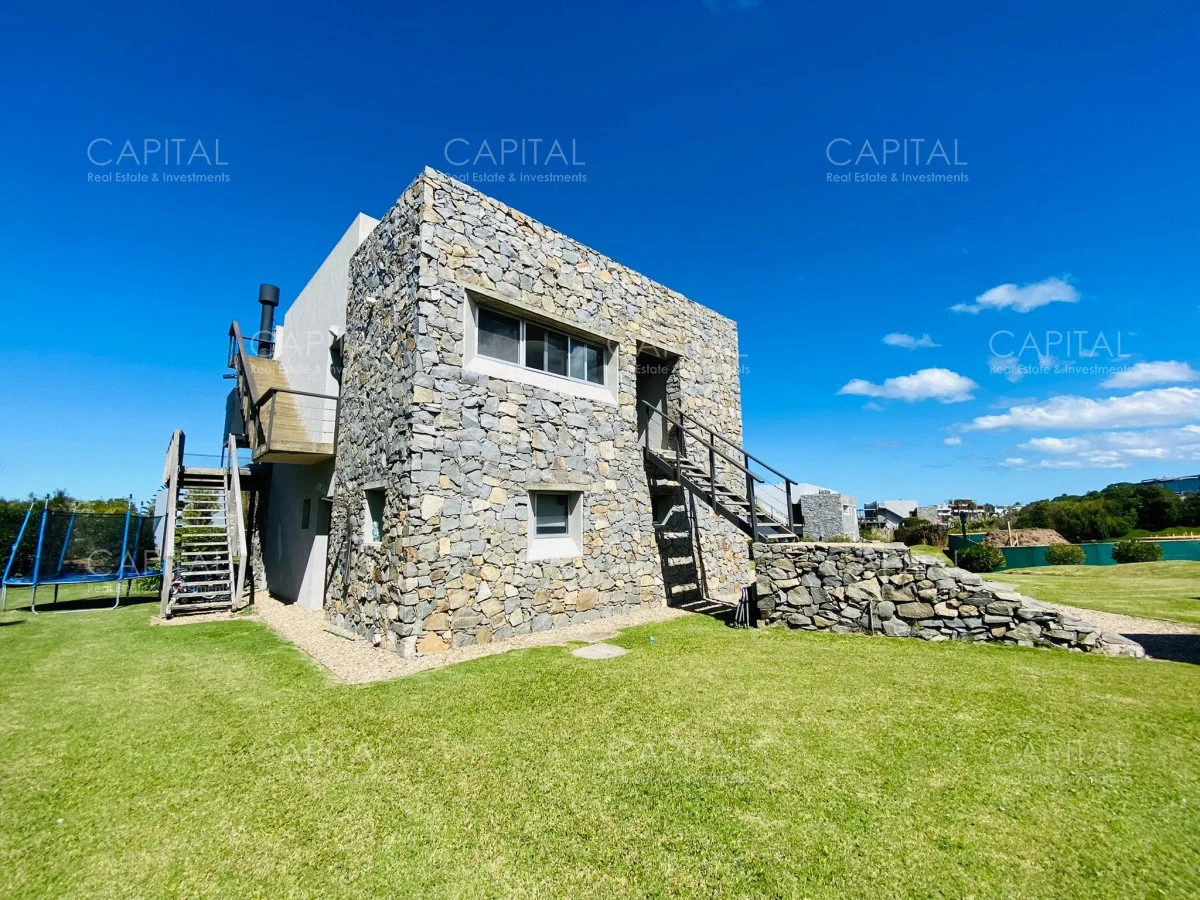 Casa moderna de sólida construcción con detalles en Piedra. Distribuida en dos plantas con ambientes amplios y luminosos.