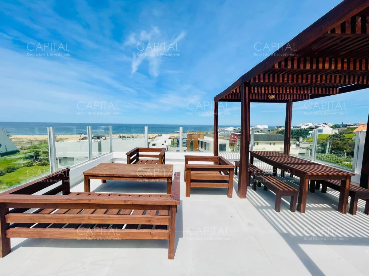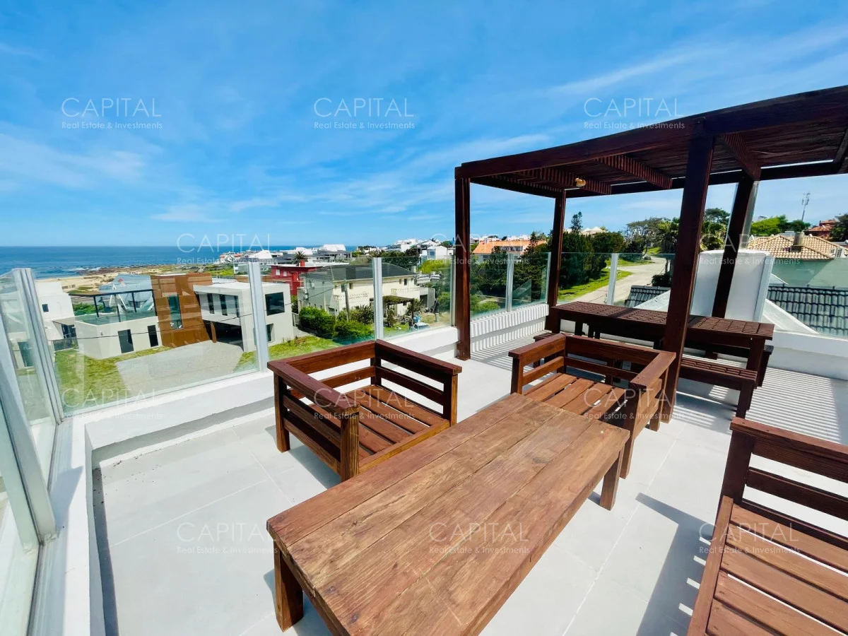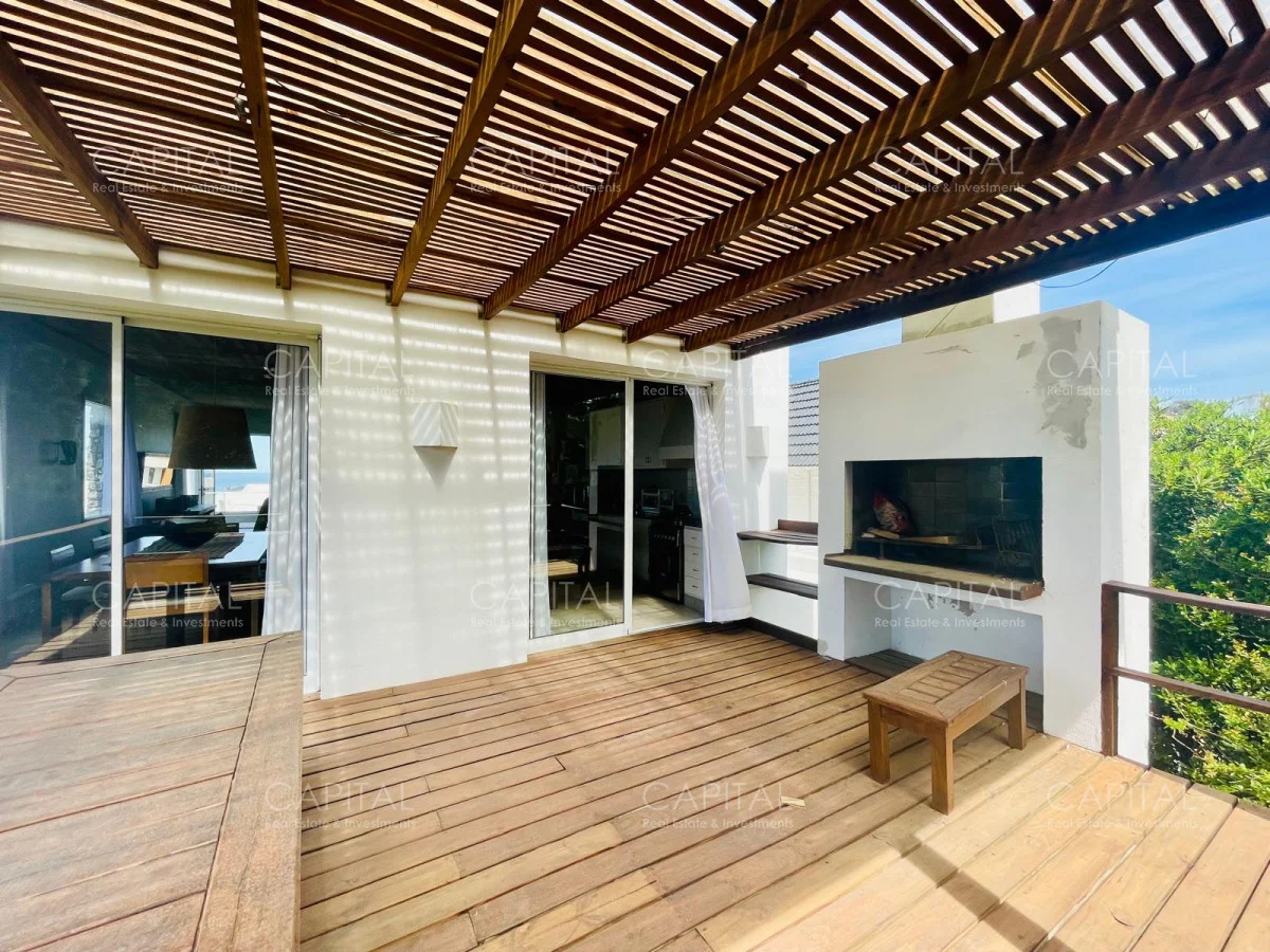 De diseño Moderno por el Arq. Martín Gomez, la misma cuenta con living comedor súper luminoso con salida a balcón terraza con vista al mar, cocina integrada estilo americana súper práctica con salida a gran balcón terraza contrafrente con parrillero techado. En planta baja se encuentra el sector de dormitorios ( ppal en suite con salida a jardín con terraza exclusiva), otro dormitorio grande en suite con 2 camas y un 3er dormitorio también con 2 camas singles y toilette. Por escalera interna desde el living se accede a la terraza superior con hermosas visuales a la bahía...un sector ideal para compartir en familia. Dependencia de sevicio externa con baño y lavadero. Entrada de autos.. ideal para estar cerca de la playa...