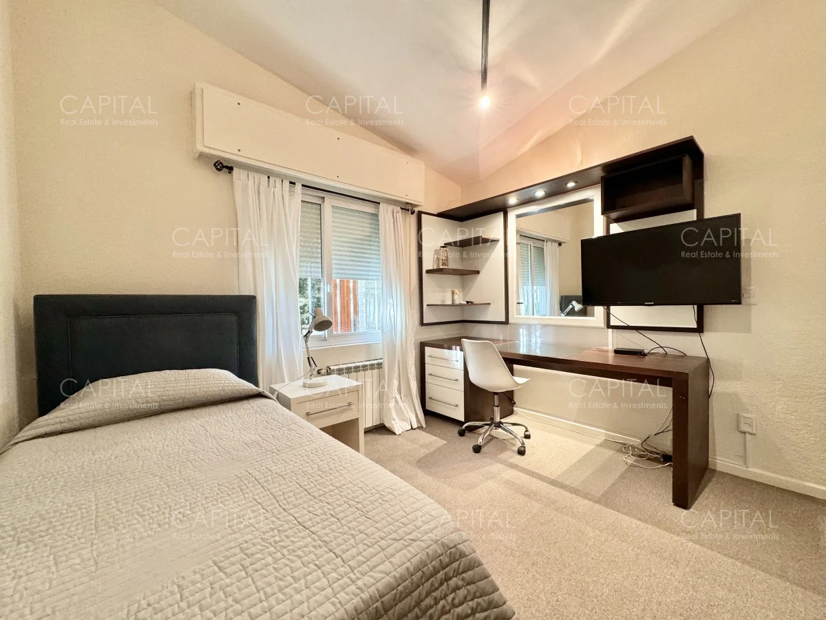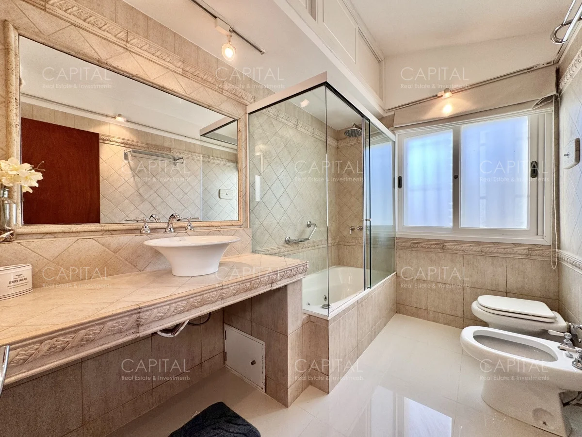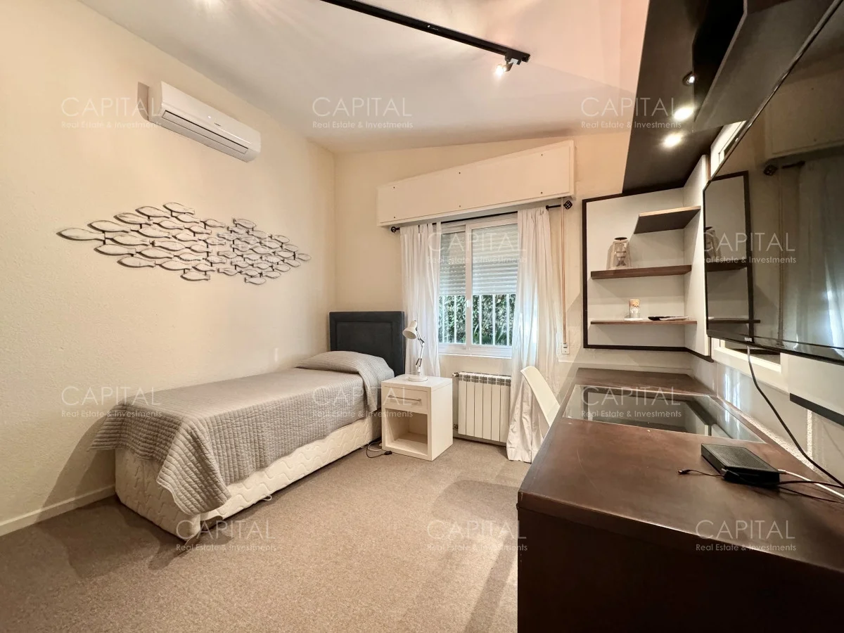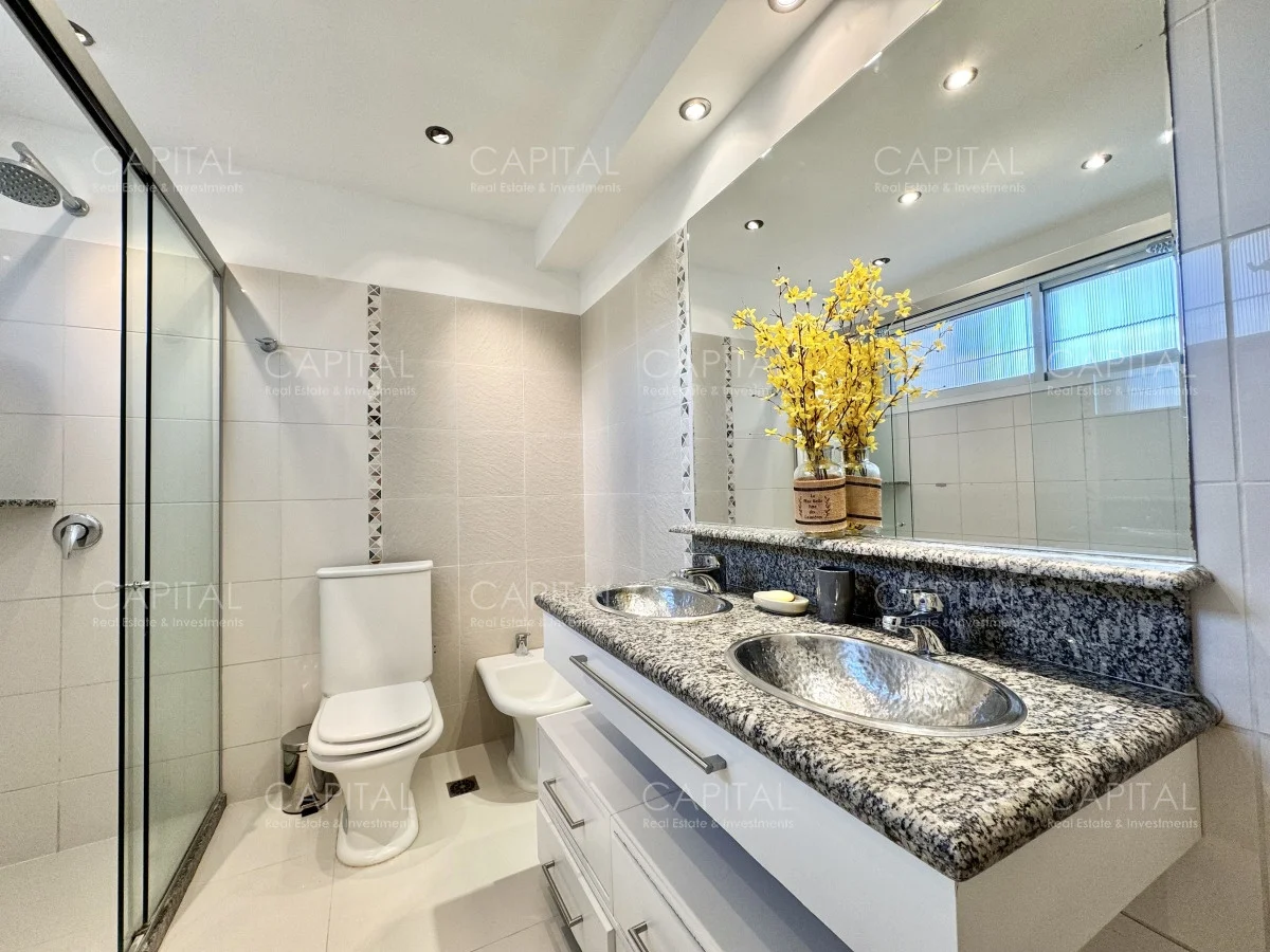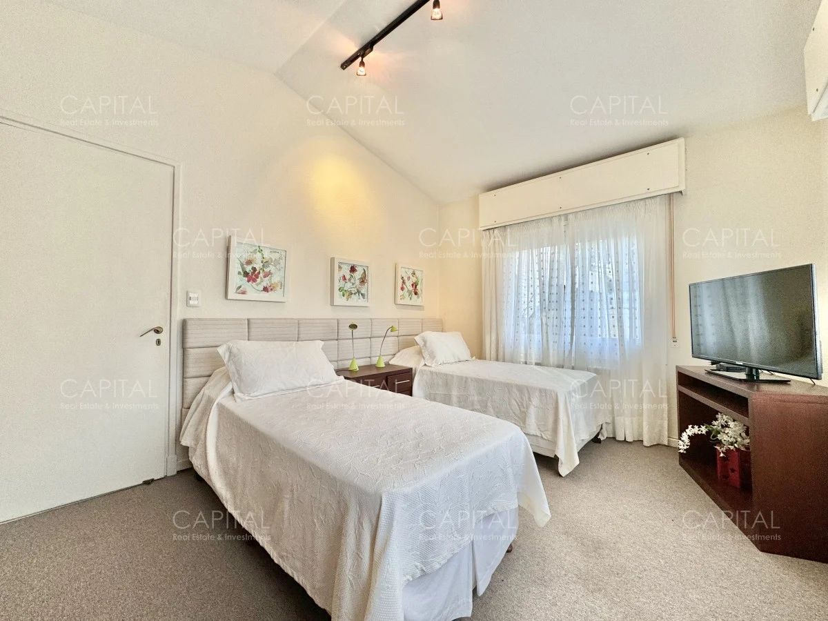 Cuenta con cuatro dormitorios, dos en suite, todos con AC. El living comedor amplio y luminoso, cómodo y muy hogareño. La cocina muy bien equipada, totalmente reciclada con espacio de lavadero.