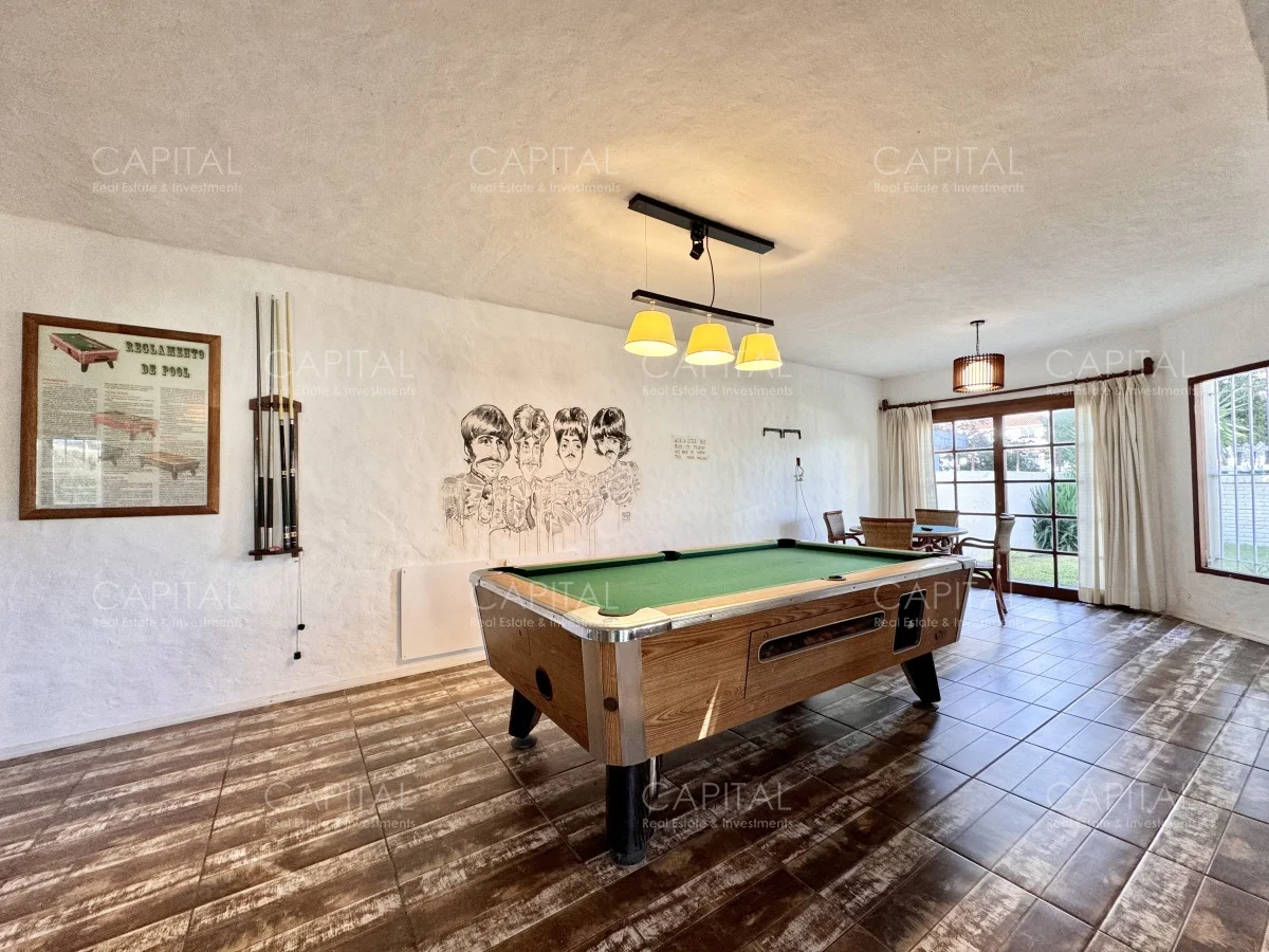 El fondo todo cercado, con una muy linda pileta climatizada junto a la barbacoa cerrada que cuenta con mesa de Ping Pong, pool , cocina y un muy buen espacio para recibir invitados. También tiene su baño completo.