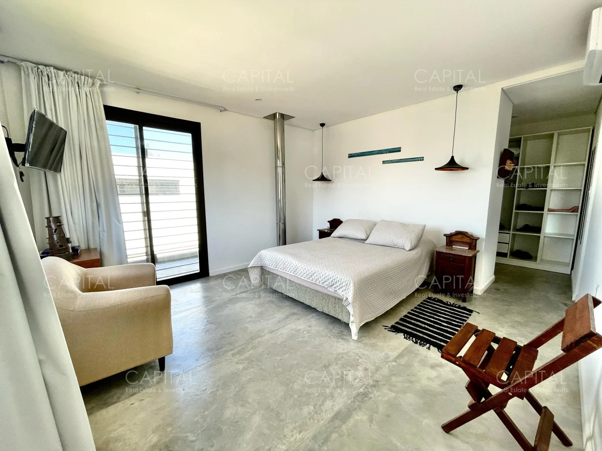 Casa en Montoya con ubicación única a tan solo 100 mts de la Playa. Distribuida en 2 niveles. Cuenta en planta baja con living comedor con cocina con isla con salida directa al parrillero techado y jardín, 2 dormitorios con 1 baño, toilette. En planta alta amplia suite con vestidor y salida a balcón con vista al mar. Calefacción con estufa de alto rendimiento con salida a los dormitorios, aire acondicionado.