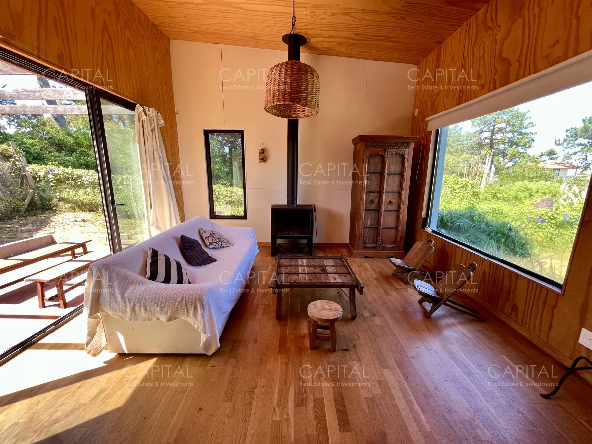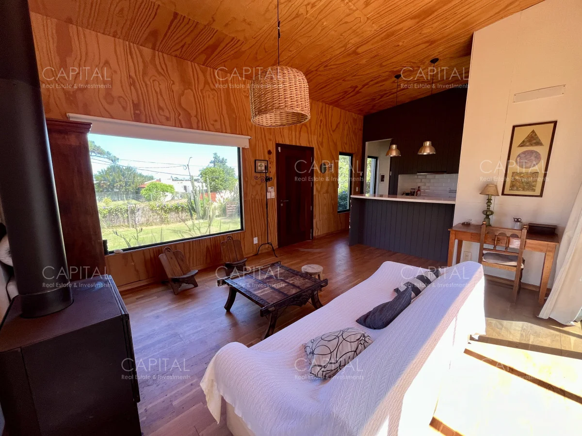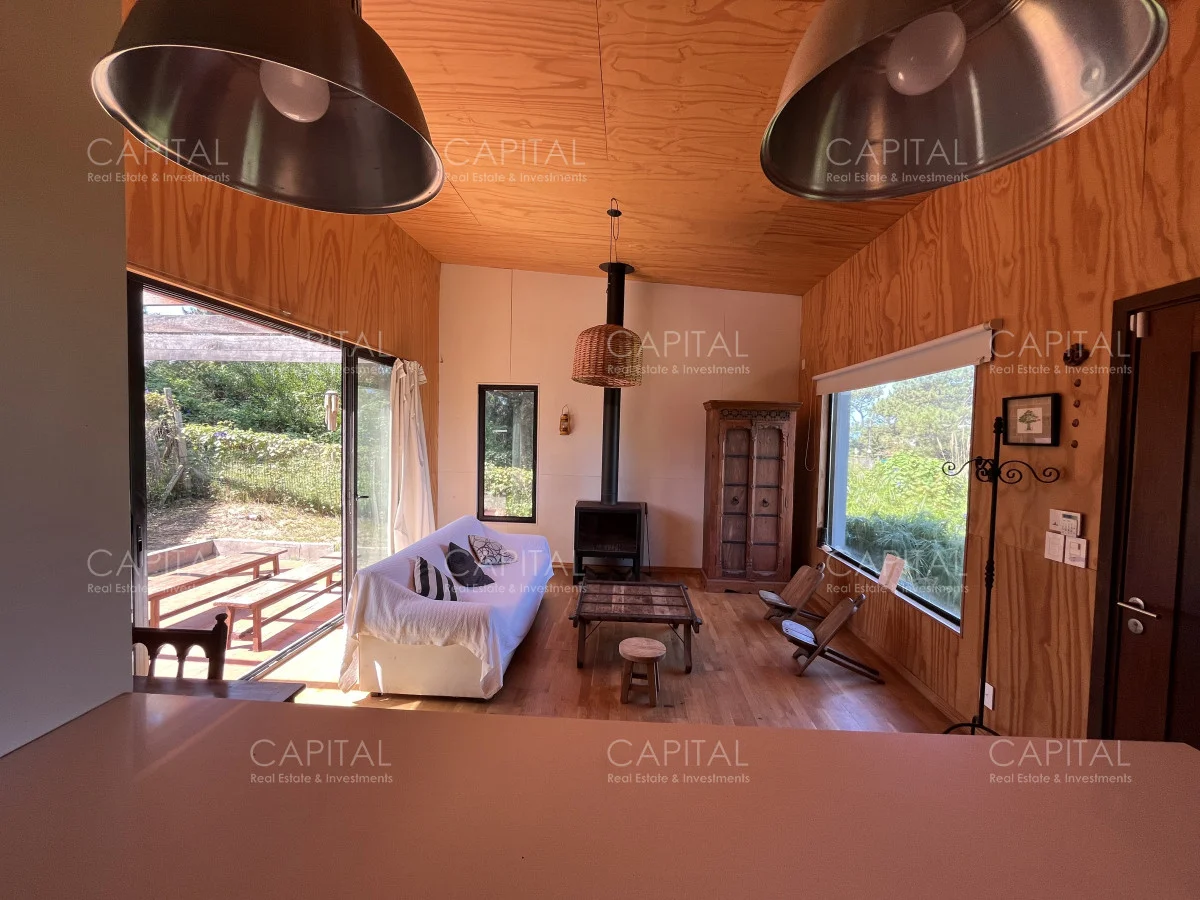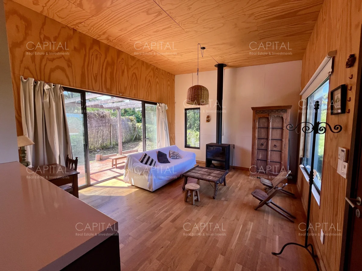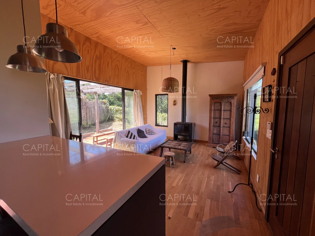Moderna casa construida en madera, con vista parcial al mar y al bosque. Ubicada a 900 mts de la Playa Bikini. Zona muy tranquila, a pocas cuadras del centro de Manantiales. Cuenta con un dormitorio, cocina abierta con barra, living con gran estufa de leña de alto rendimiento y jardín cercado con parrilla al fondo. Ideal para todo el año. Coordina tu visita María Strauch +589 93773199 Referencia Interna : Tera-29868