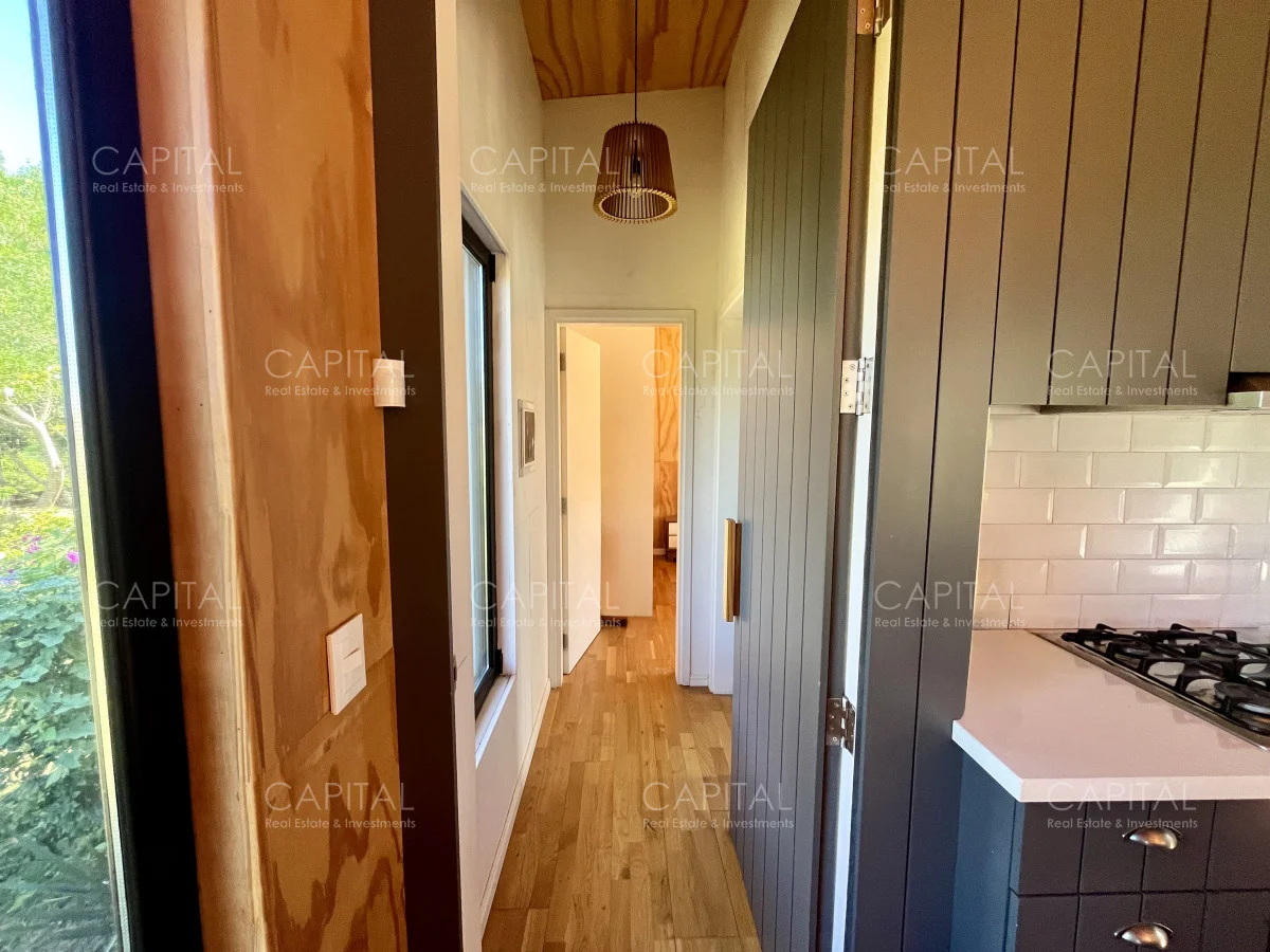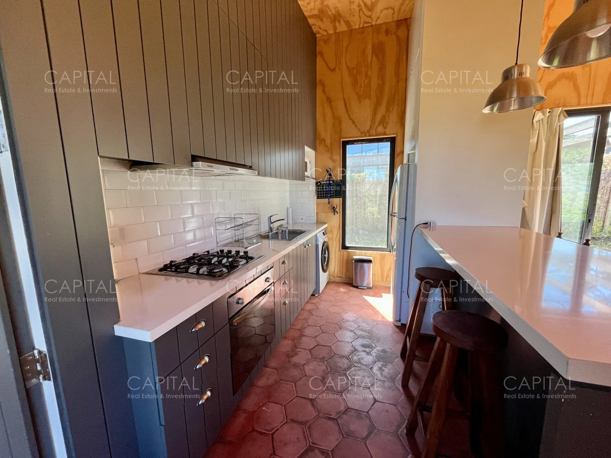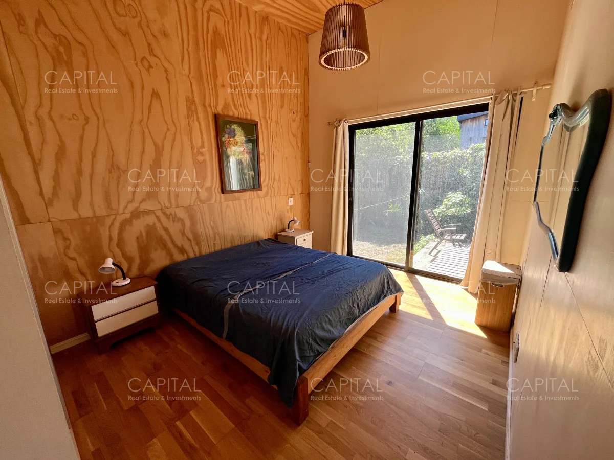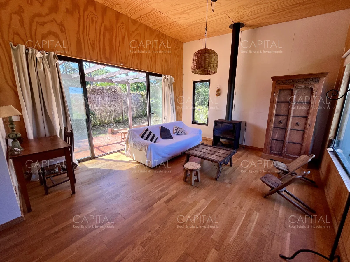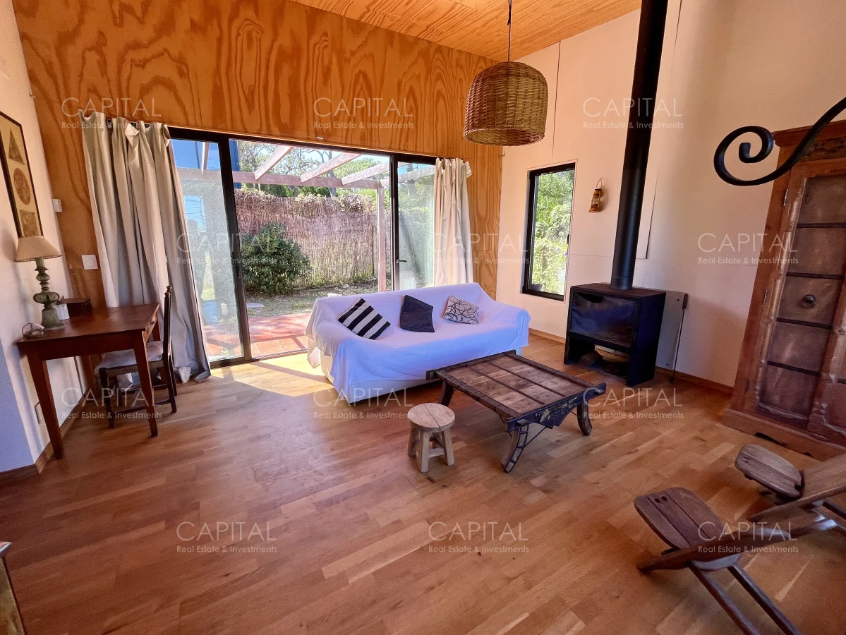 Moderna casa construida en madera, con vista parcial al mar y al bosque. Ubicada a 900 mts de la Playa Bikini. Zona muy tranquila, a pocas cuadras del centro de Manantiales. Cuenta con un dormitorio, cocina abierta con barra, living con gran estufa de leña de alto rendimiento y jardín cercado con parrilla al fondo. Ideal para todo el año. Coordina tu visita María Strauch +589 93773199 Referencia Interna : Tera-29868