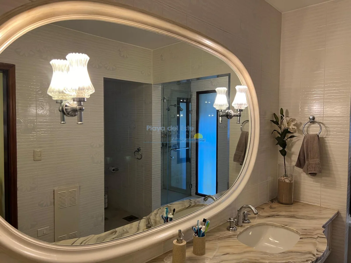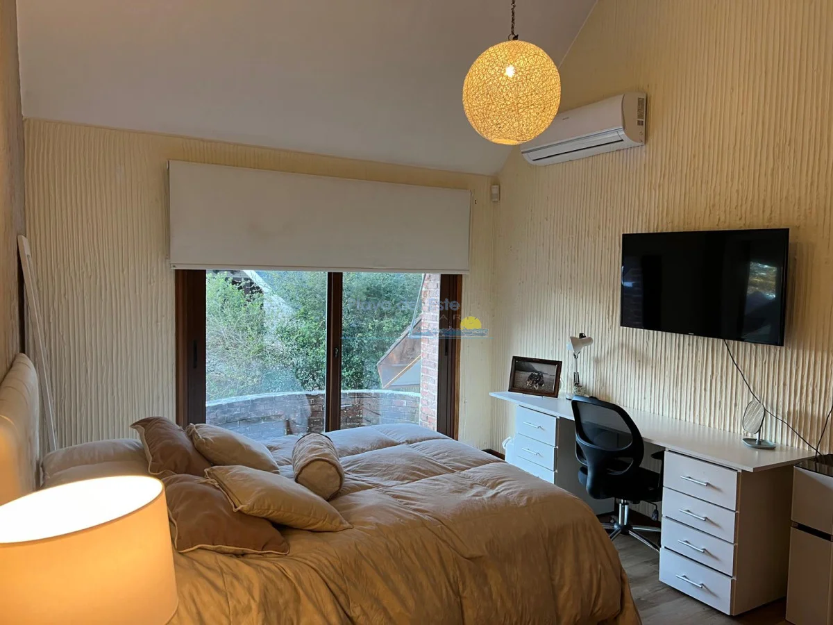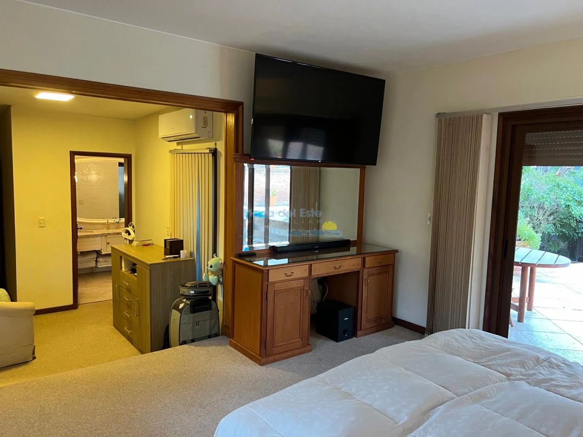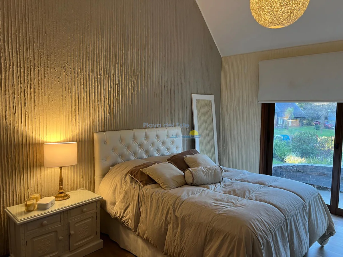 Dormitorio principal con baño en suite y ventanales con salida al exterior .