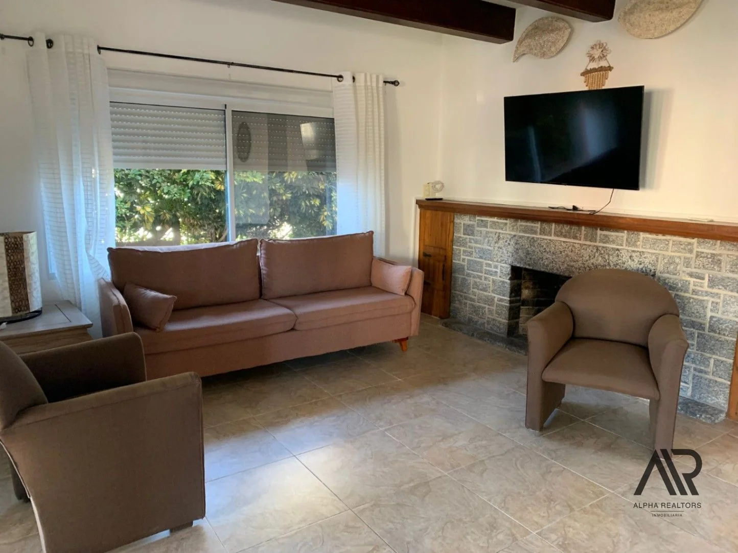 Gran living, comedor con 2 estufas a leña y aire acondicionado.