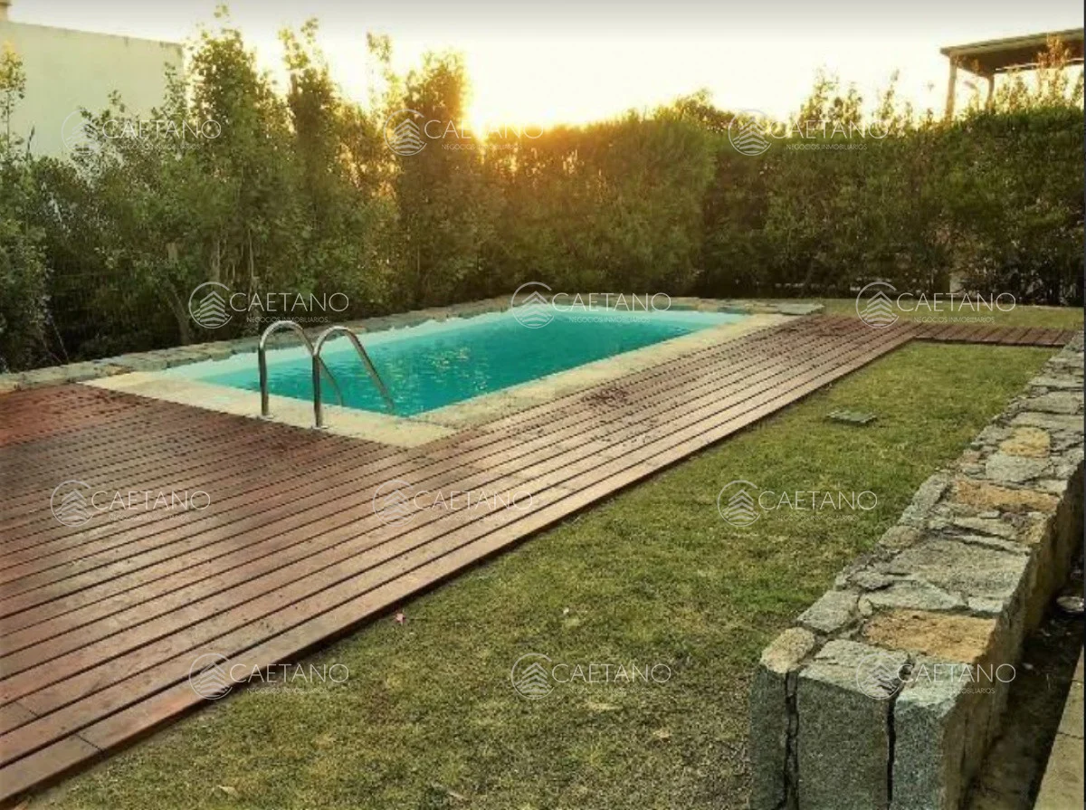 En el piso superior: barbacoa completa, pérgola con mesa y banco en madera. Jardín totalmente cercado con gran piscina. Garaje para 5 autos y 2 cajas de almacenamiento. Seguridad: alarma, portero automático con visor de personas, TV vía satélite en salón y dormitorios.