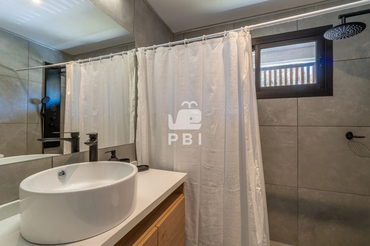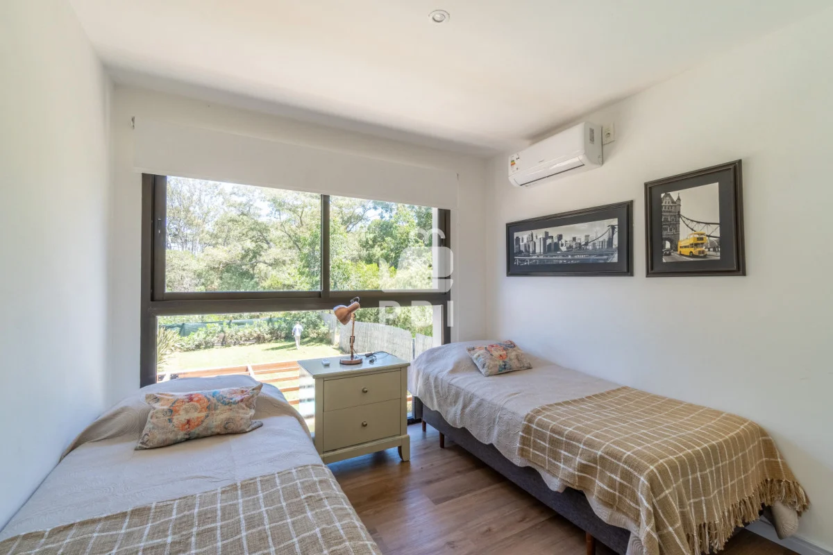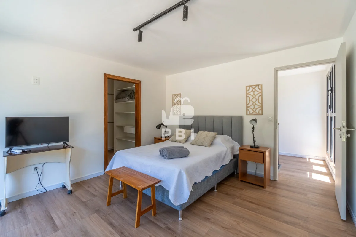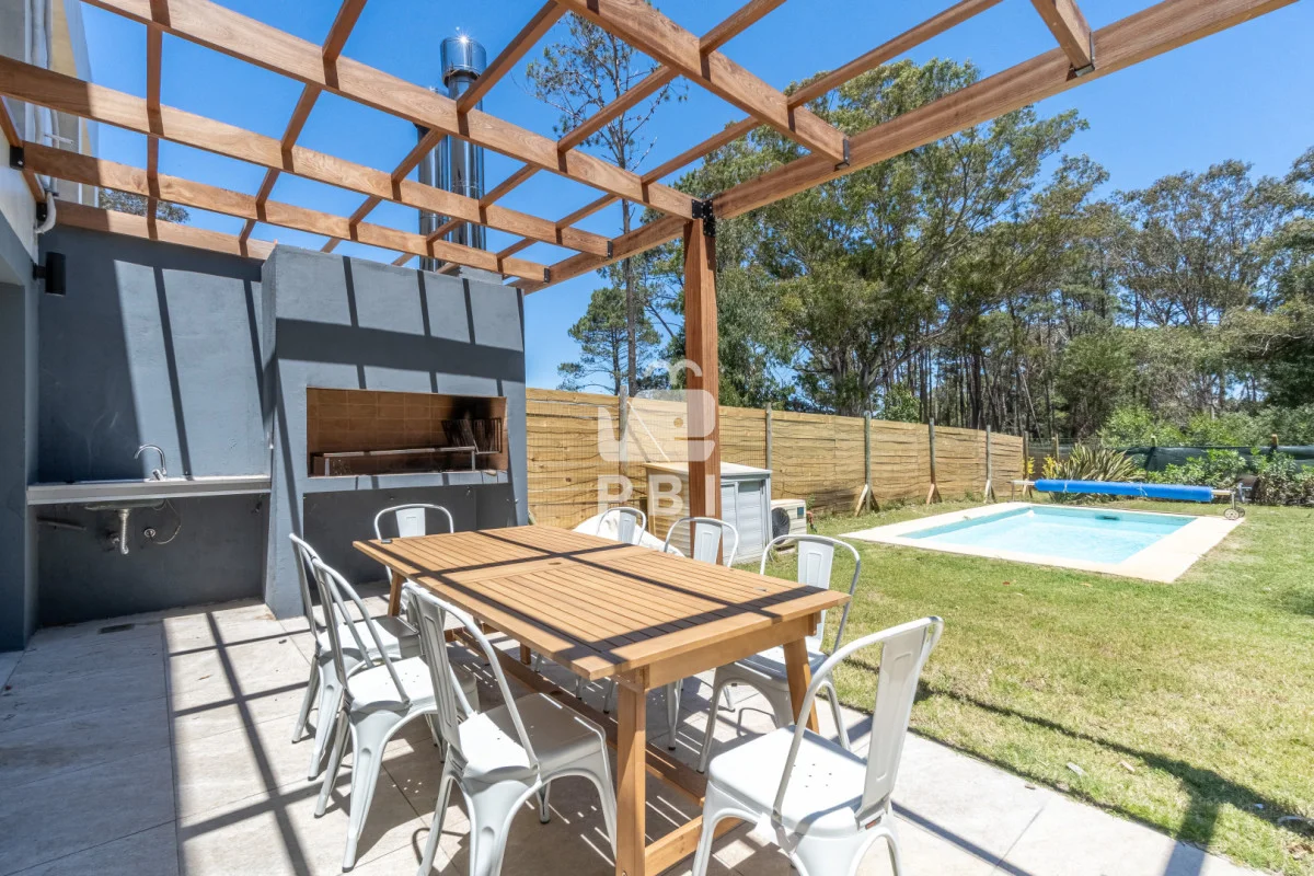 3 dormitorios (uno de ellos en suite con vestidor y balcón), 3 baños, living comedor, cocina semi integrada y bien equipada, con apartado para lavarropas, parrillero y piscina exterior climatizada (6 metros por 3 metros).