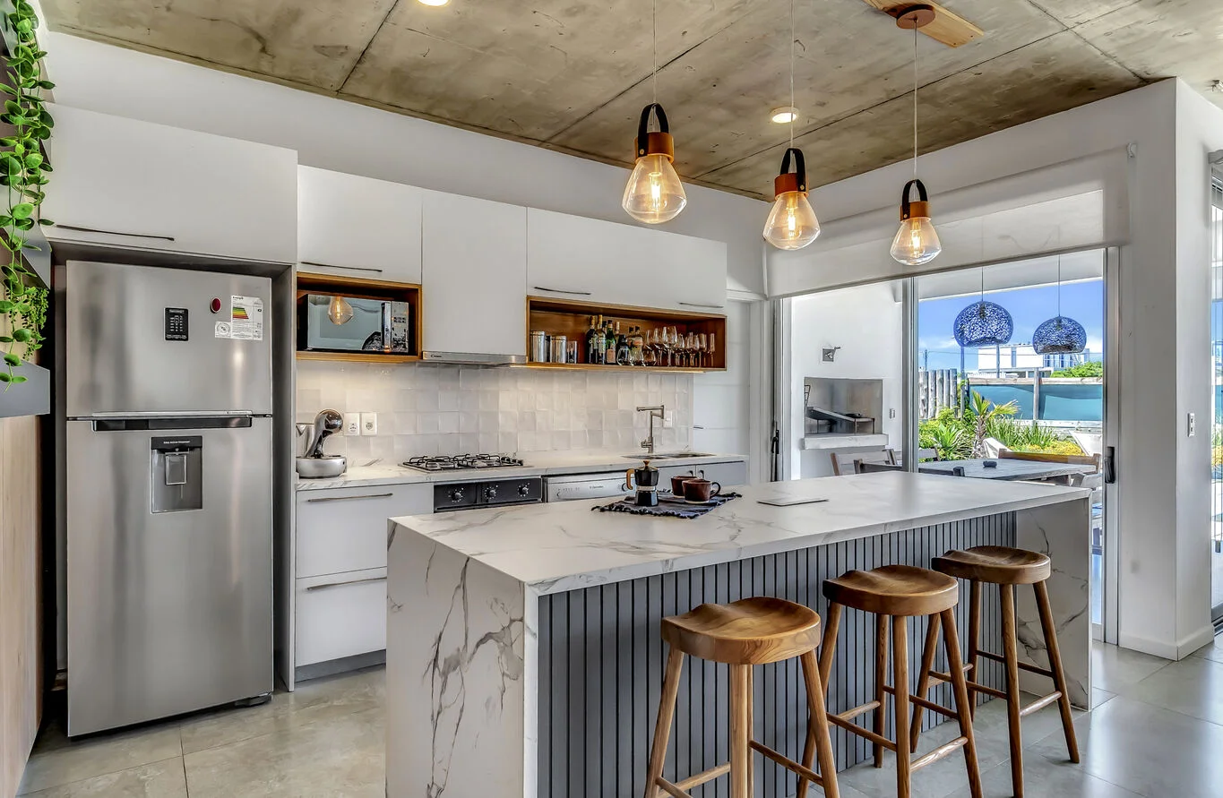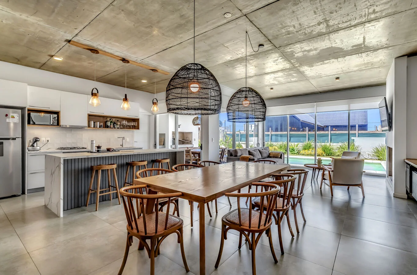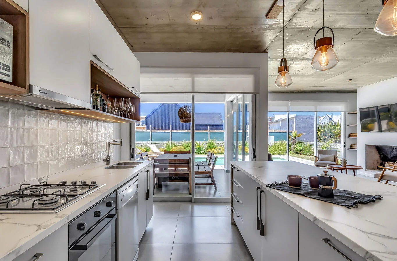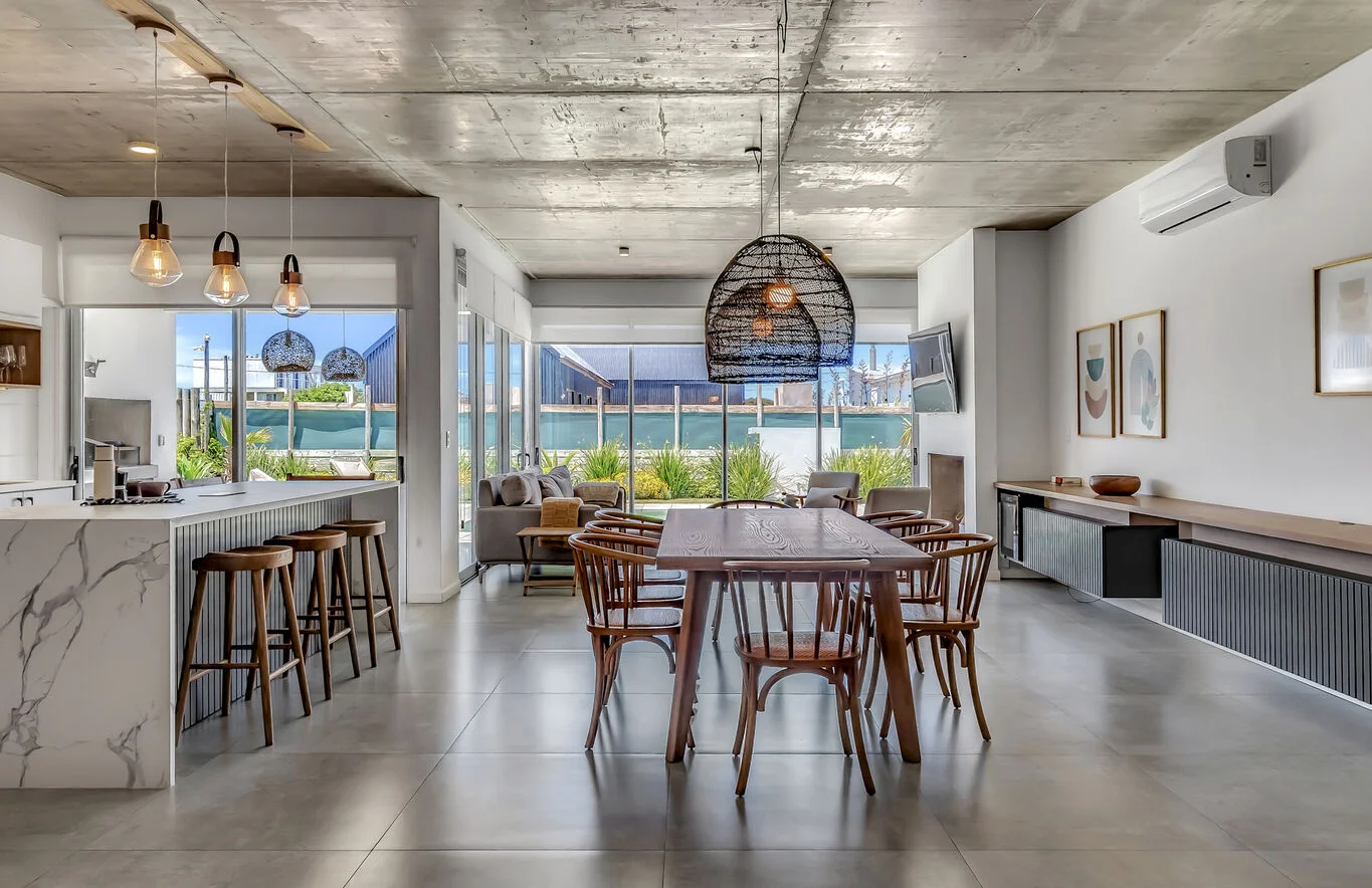 Al ingresar, nos recibe un amplio living comedor con cocina integrada, un espacio luminoso y funcional que incorpora una estufa de alto rendimiento, ideal para disfrutar todo el año. Desde este ambiente se accede directamente a la pérgola con parrillero y al jardín con piscina climatizada, generando un entorno perfecto para el descanso y la vida social al aire libre.