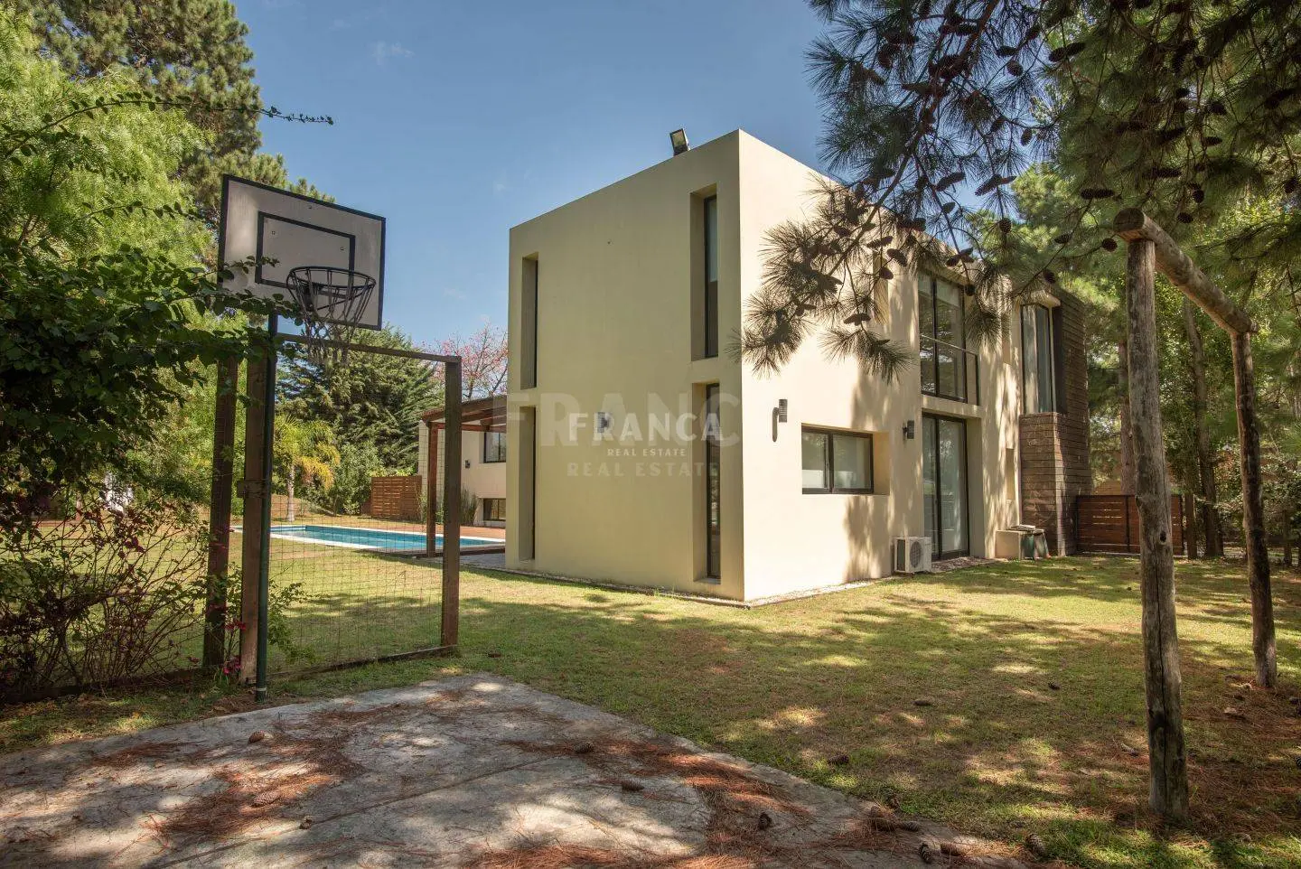 En el exterior se encuentra una pileta climatizada por bomba de calor, parrillero techado y amplio espacio verde.