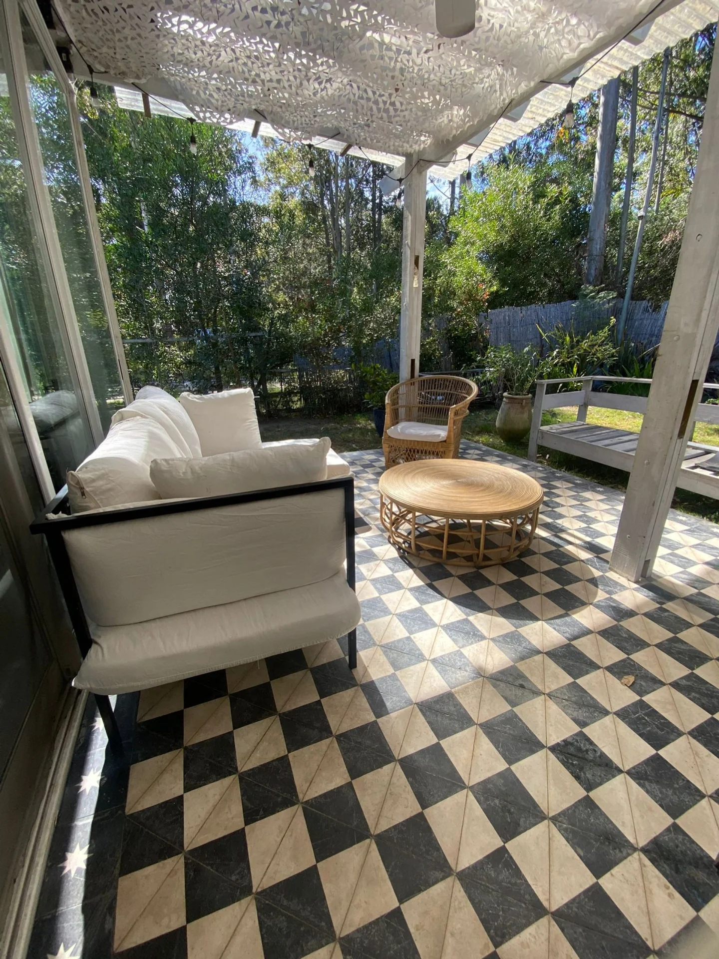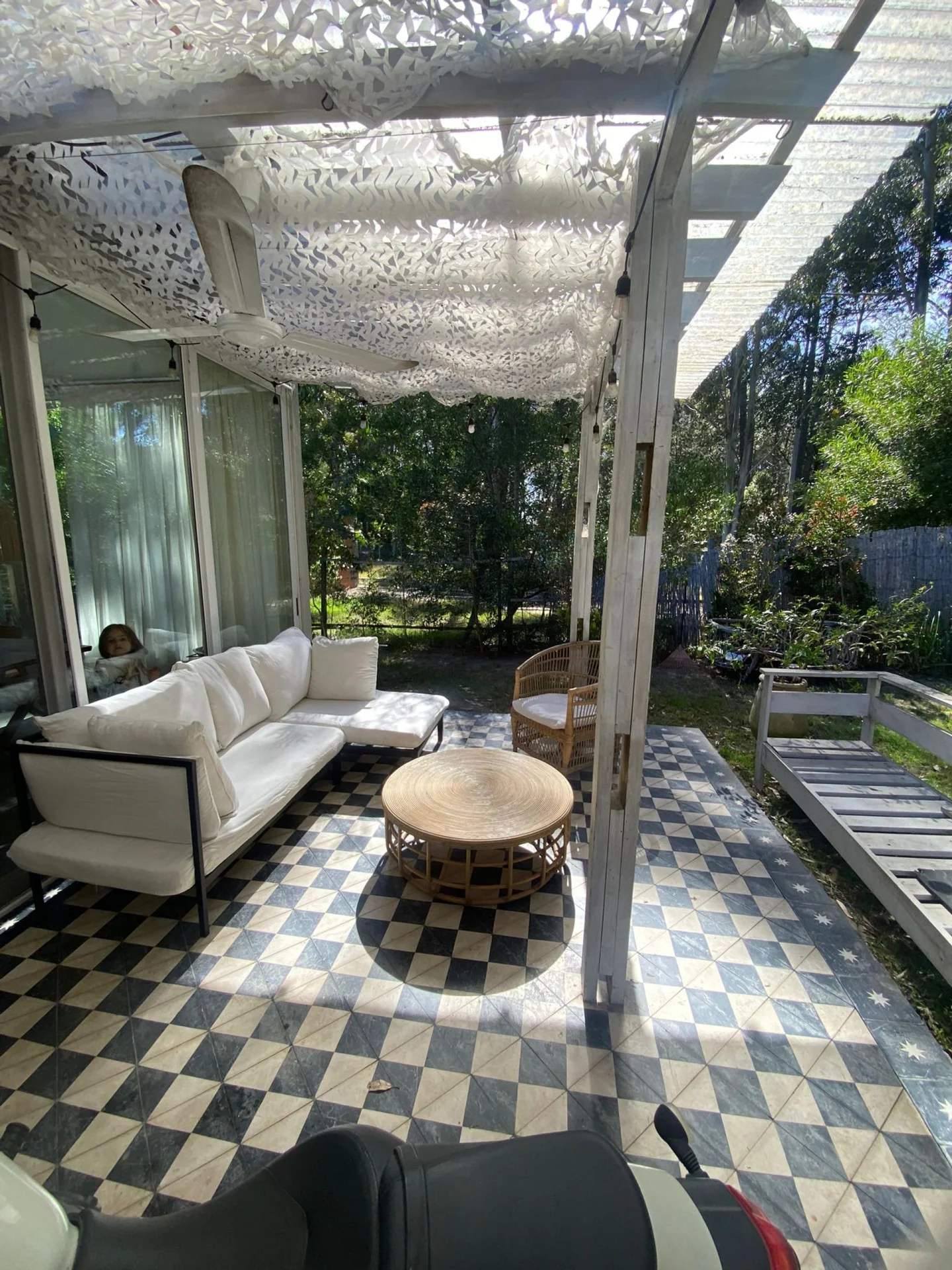 Pérgola techada, parrillero y piso de calcareas. Porton lateral que separa el jardin de atras con el frente. Ideal para animales.