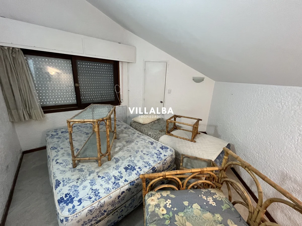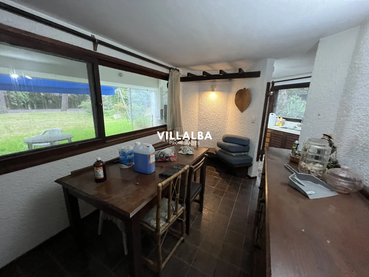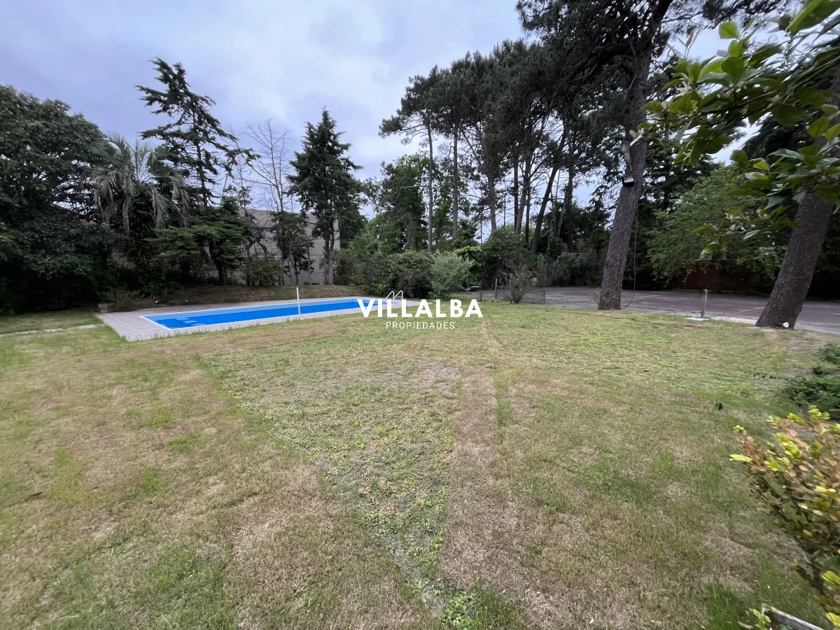 Amplia casa. Cuenta con 5 dormitorios, vestidores en 3 de ellos, placares en 2. 5 baños. Terreno de 1958 m2 y 210 m2 edificados. 30 m de frente x 65 m de fondo. Con piscina de 40 m2 (10x4) y parrillero Cancha de tenis de 400 m2 aprox Internet Alama ADT Amueblada con estufa a leña, 2 heladeras funcionando, horno y microondas. Sanitaria de entrada y salida actualizada. Sistema eléctrico actualizado. Alquiler por USD 2200, Garantía de aseguradora. Opción a venta o permuta. USD 740.000 Referencia Interna : Tera-3409