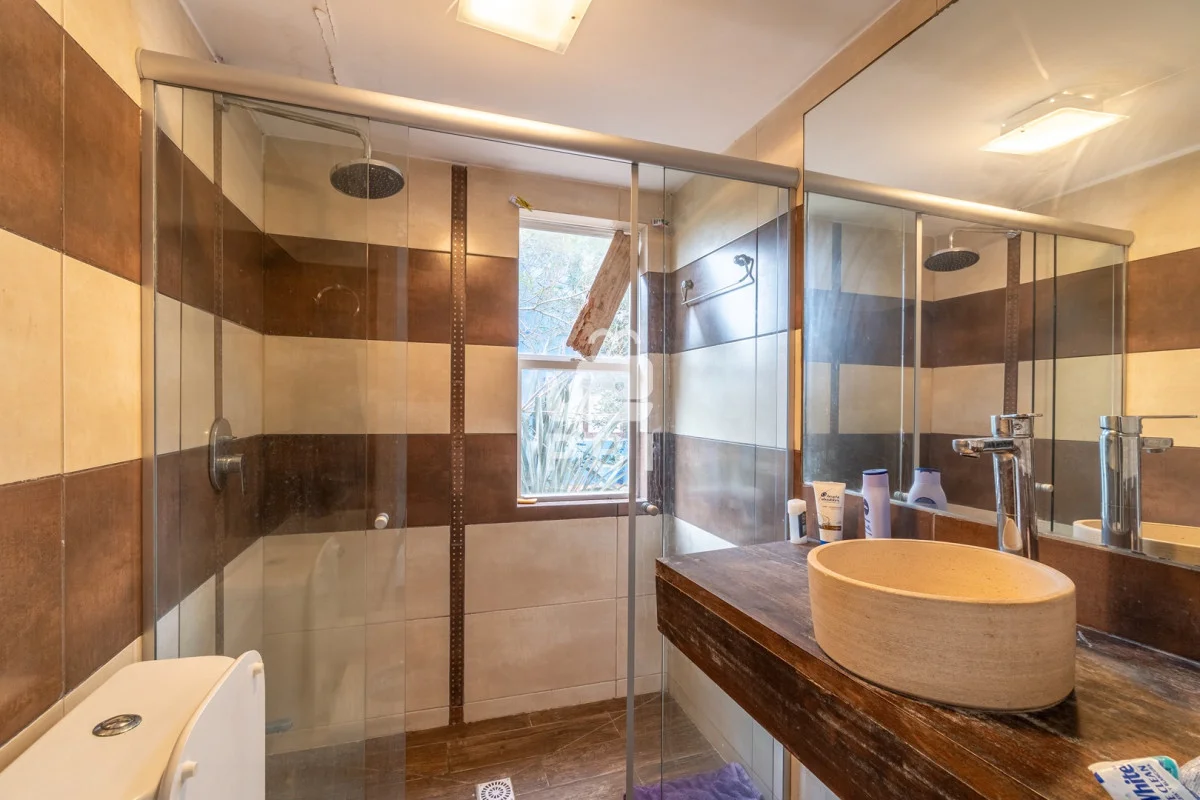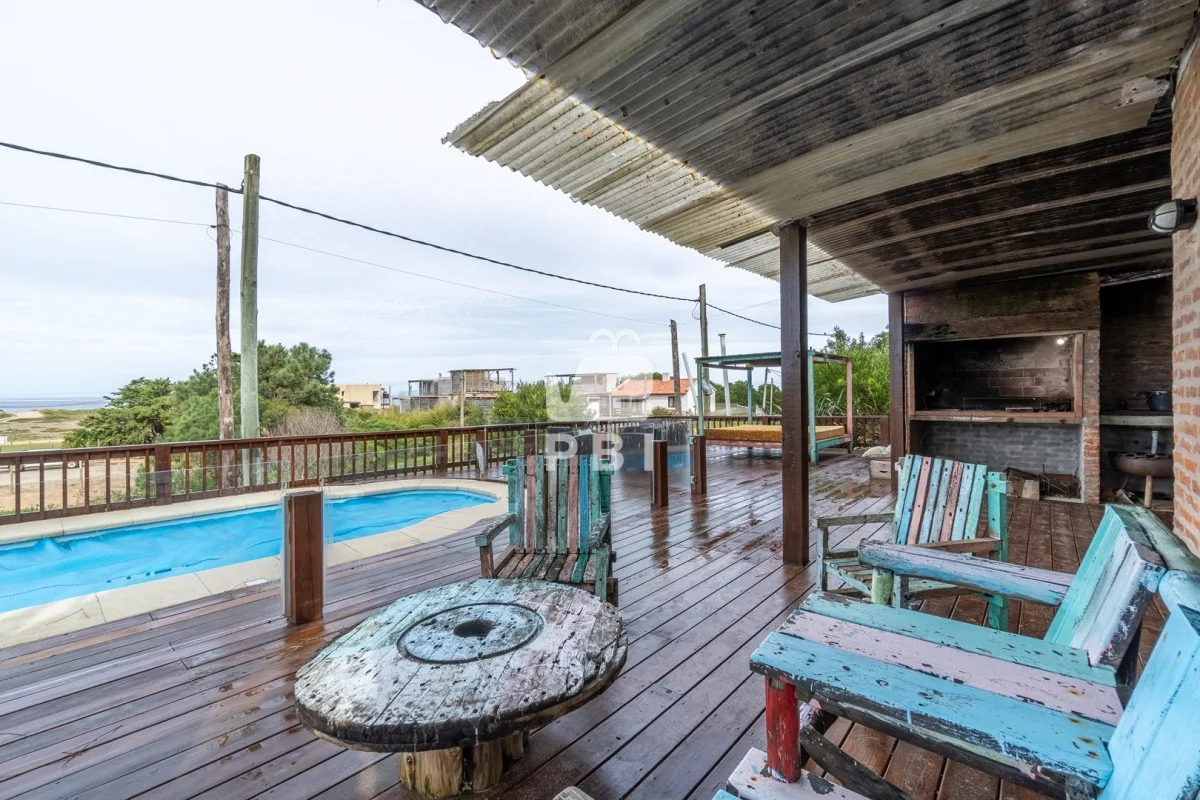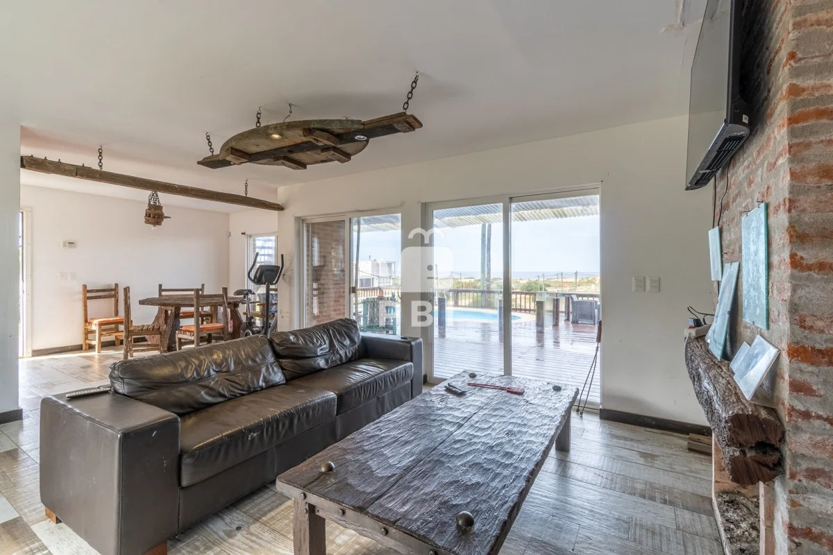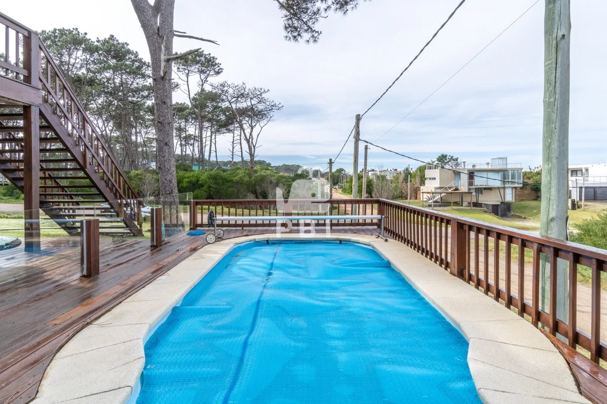 Ubicada a solo 100 metros del mar en Ocean Park, Punta Ballena, esta propiedad ofrece una superficie de terreno de 427 m² y una construcción de 2 plantas de 182 m². La casa se distribuye en 4 dormitorios en suite, una cocina semi-integrada junto a un amplio living con estufa a leña y comedor.