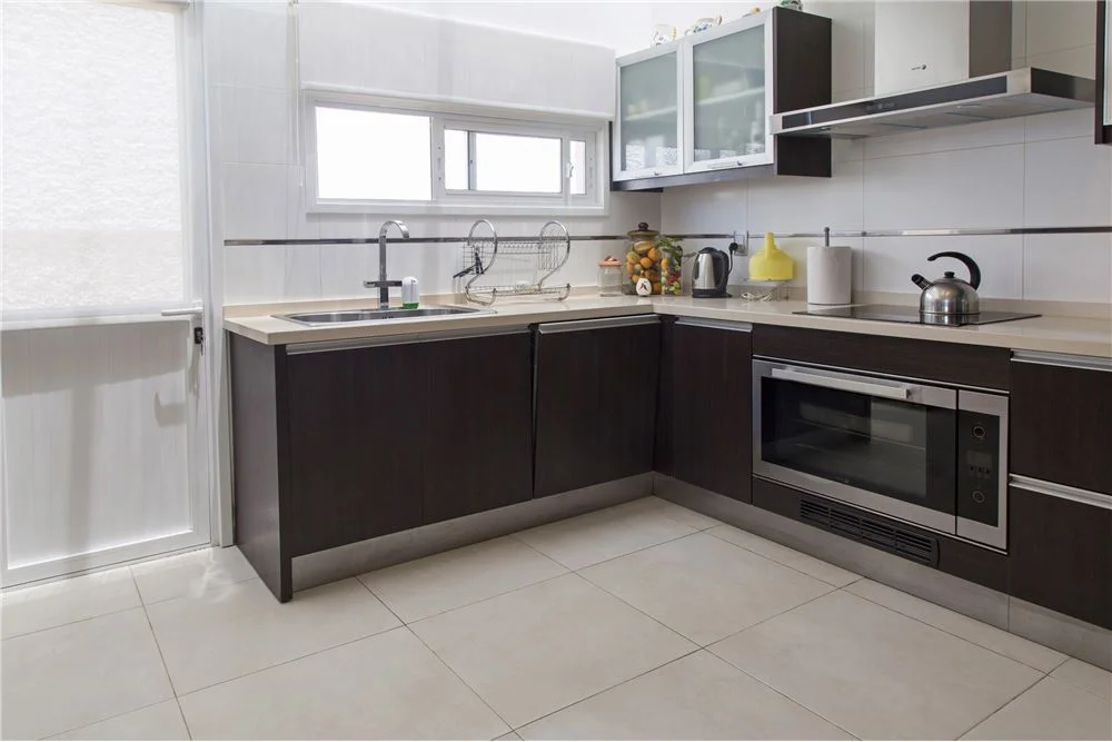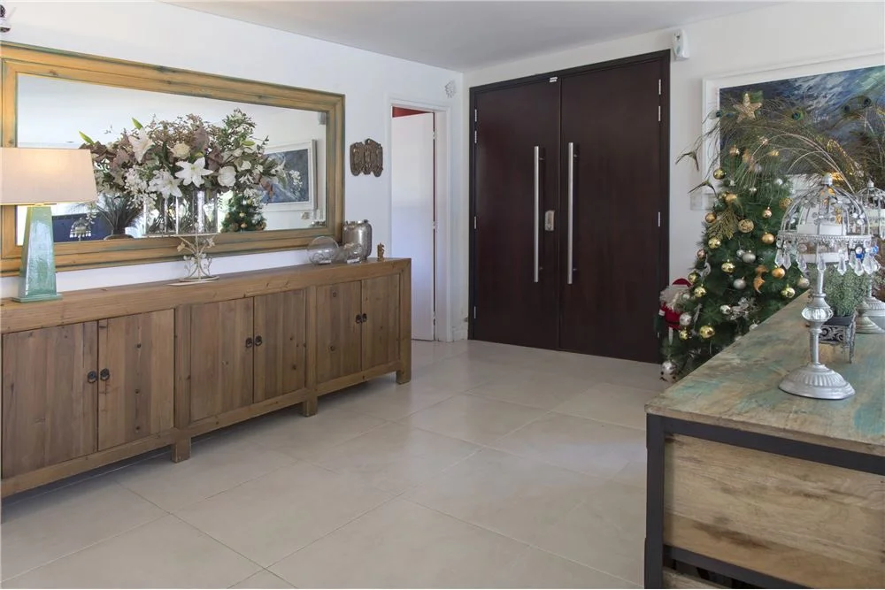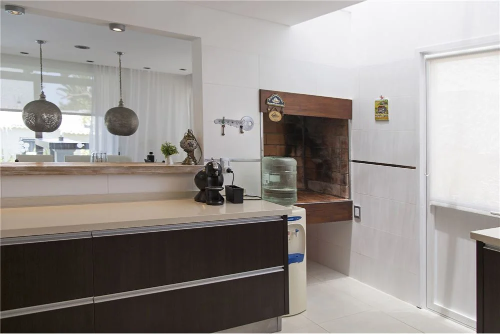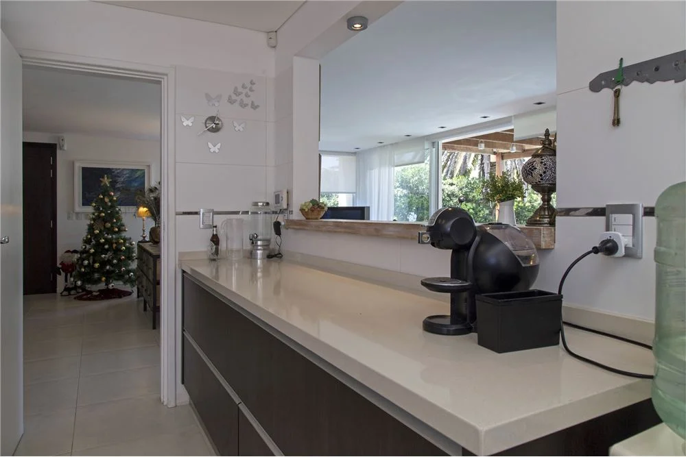 Hacia atrás hay una agradable galeria con parrillero grande, jardin, piscina infinita, un depto de servicio con dormitorio en suite, y lavadero.