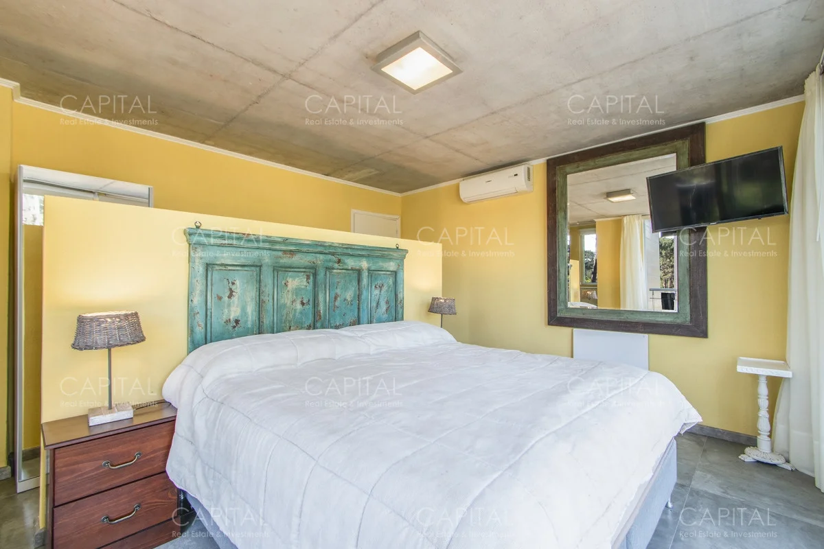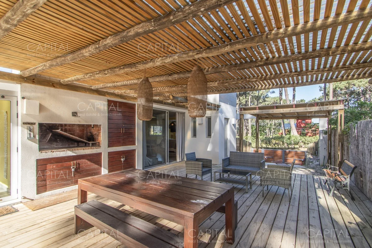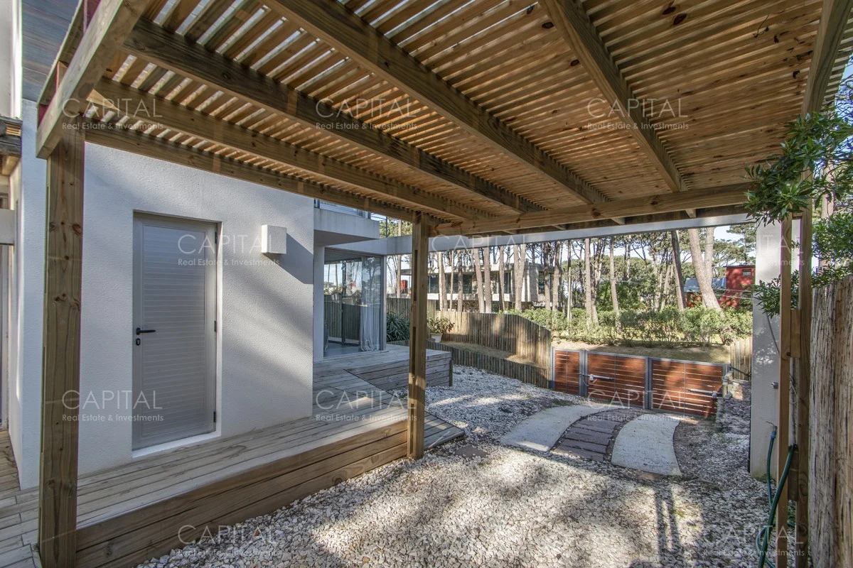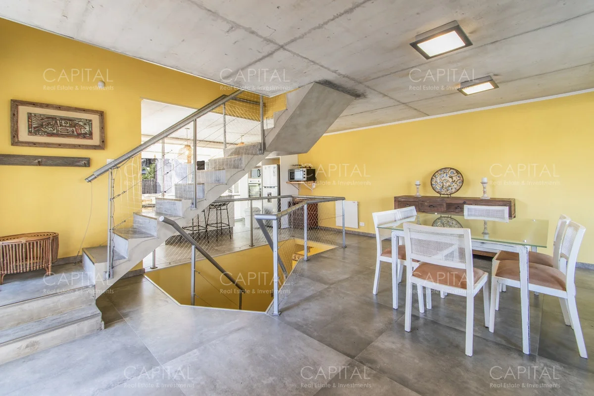 Lindísima casa con cuatro dormitorios (dos en suite) y tres baños, casa con ambientes espaciosos y con mucha iluminación natural. La casa cuenta con tres plantas, la planta de abajo cuenta con dos dormitorios amplios y con mucha iluminación y un baño, la segunda planta se puede disfrutar de un gran living comedor con cocina integrada y salida al jardín con una gran piscina y en la ultima plata se encuentra el dormitorios principal en suite con salida a una terraza al frente. La cuarta habitación se encuentra apartada con entrada independiente y baño propio, además se cuenta con Dependencia de servicio con baño