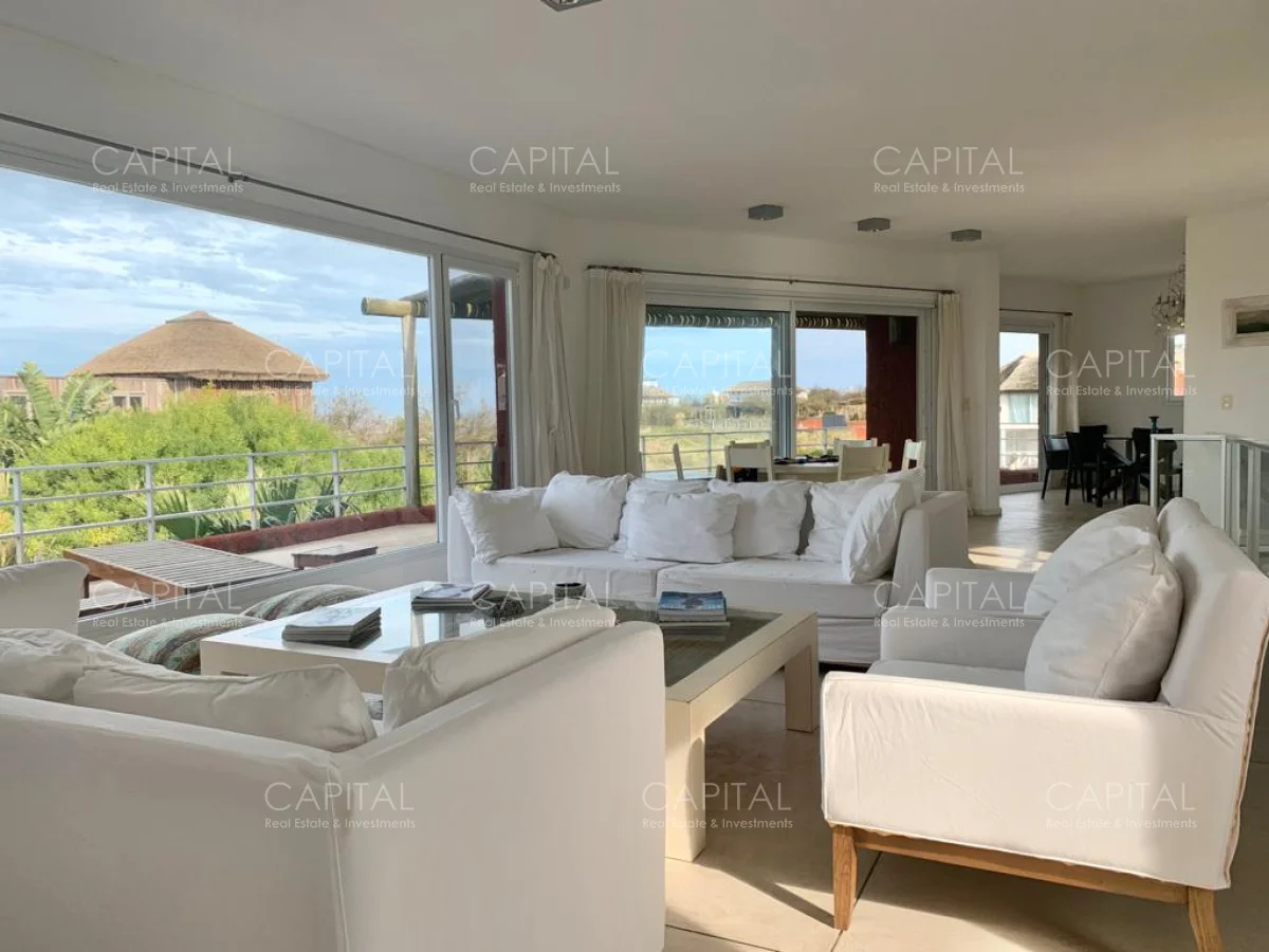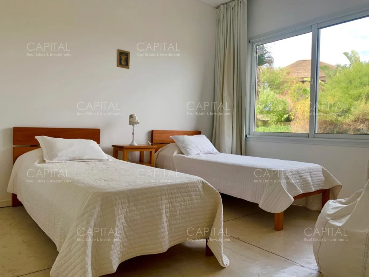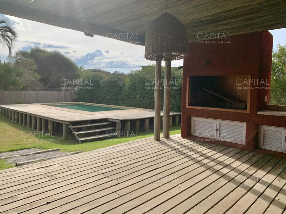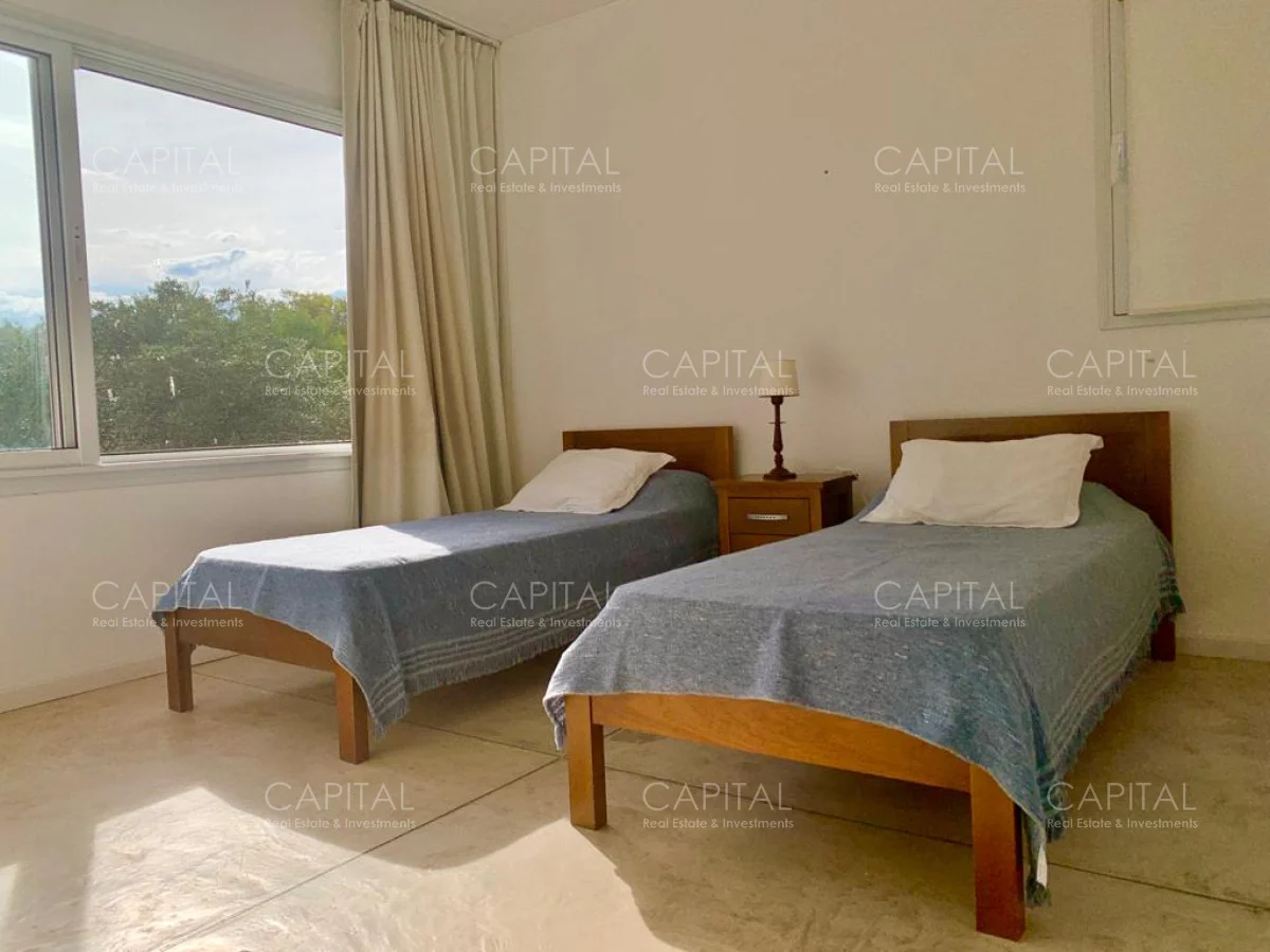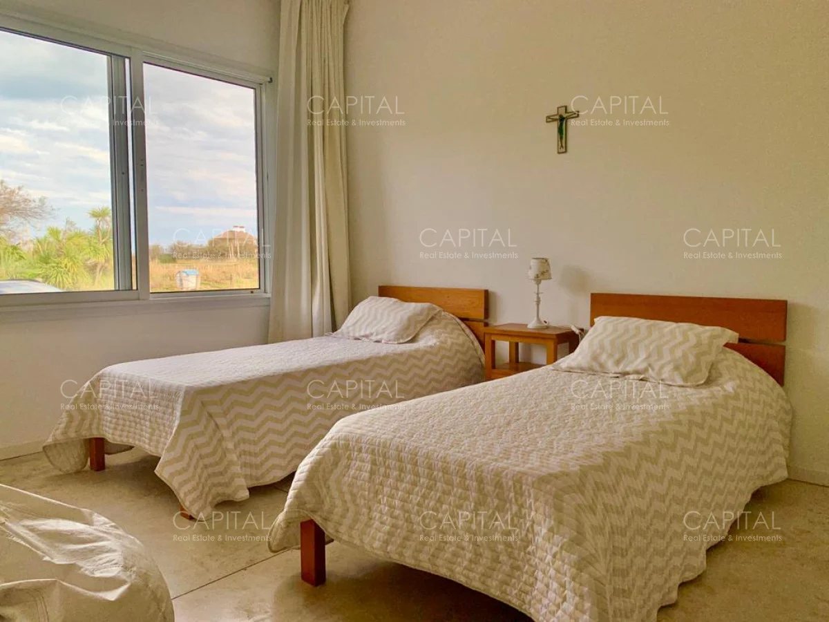 Casa Ubicada en altos de Punta Piedras, se distribuye en dos plantas cómodas. Cinco dormitorios, cuatro baños, amplios y luminosos. Parrillero techado con vistas a la pileta y un gran jardín . Planta baja 4 dormitorios, dos de ellos en suite, lavadero, dependencia de servicio, toilete