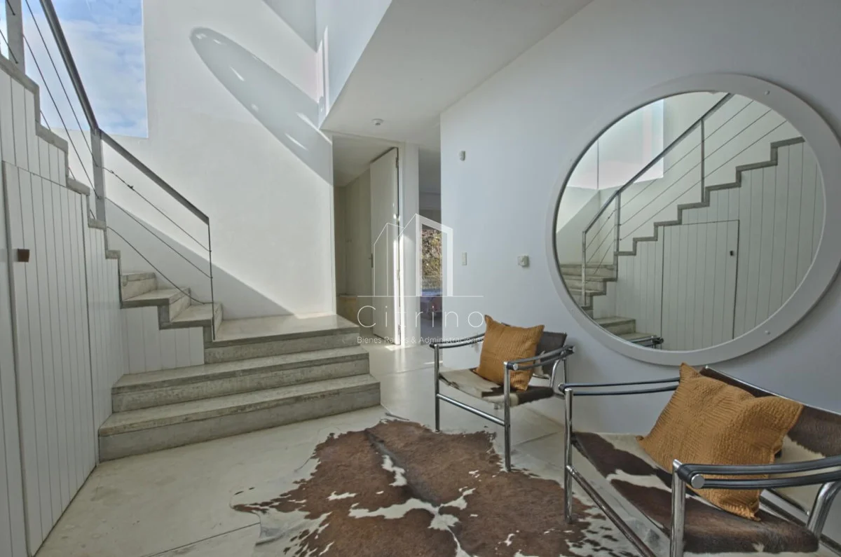 Excelente casa minimalista en Punta Piedras construida en dos plantas. Comodidades: - Living comedor - Estufa a leña - Cocina integrada - 3 Dormitorios (1 suite) - 2 Baños - Terraza con vista al mar - Dependencia con entrada externa - Amplio estar con parrillero y kitchenette - Jardín - Piscina - Cochera techada para 3 autos Referencia Interna : Tera-254