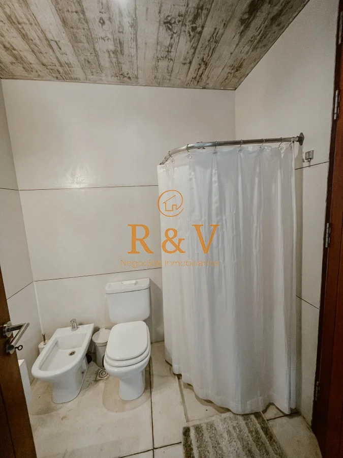 En la plata baja hay dos habitaciones ( que tienen su ingreso independiente), dos baños y un lugar para estar abierto ( cuenta con toldos para parar el viento). La casa tiene dos parrilleros, unos en planta alta y otro en planta baja.