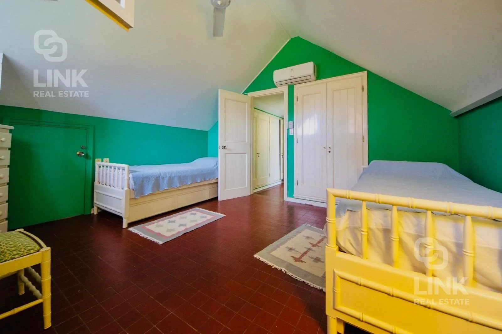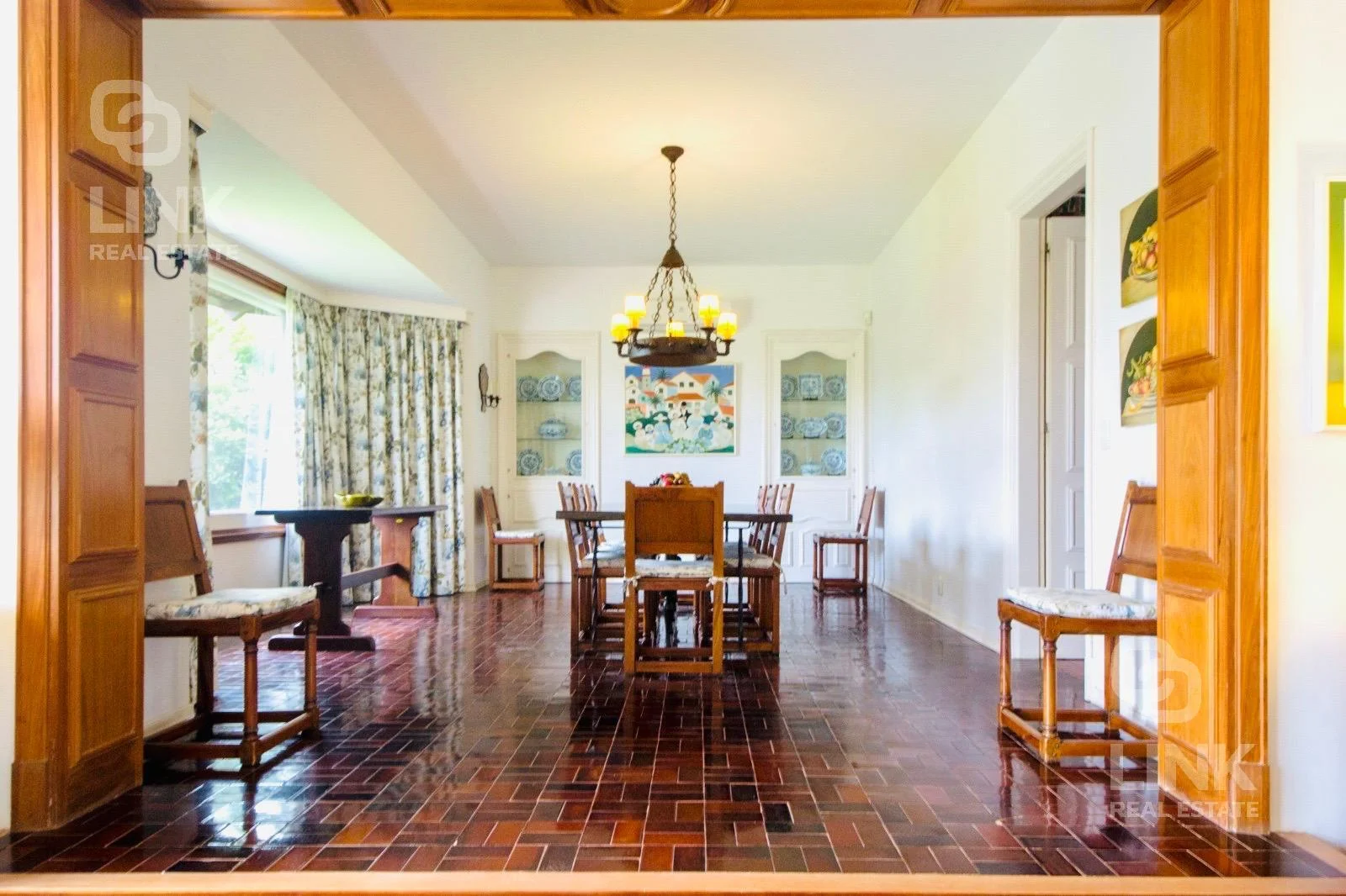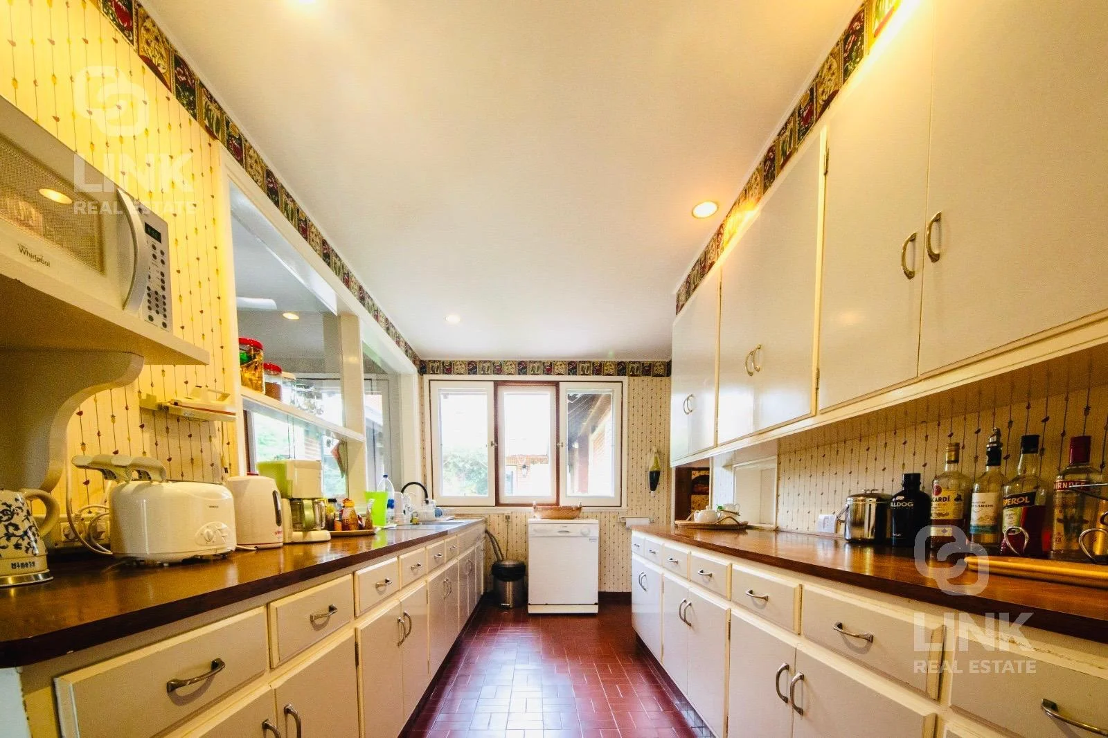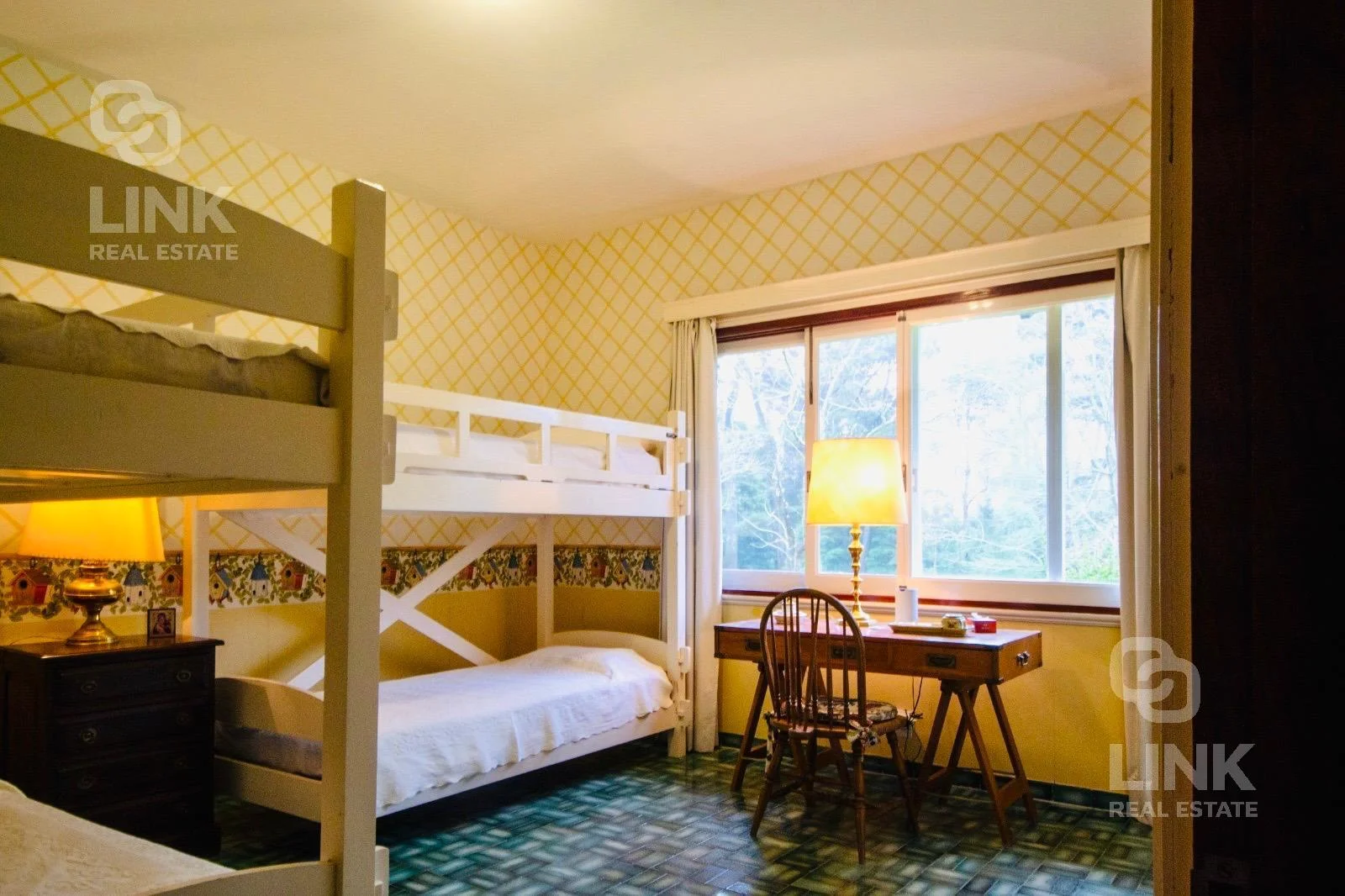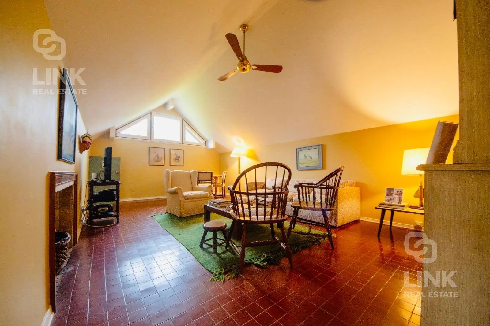 En la planta alta, playroom, un escritorio y dos dormitorios adicionales mas una gran baulera y despensa. Dispone de seis baños, casa de caseros completa, Dormitorio de servicio con baño, lavadero y garaje.