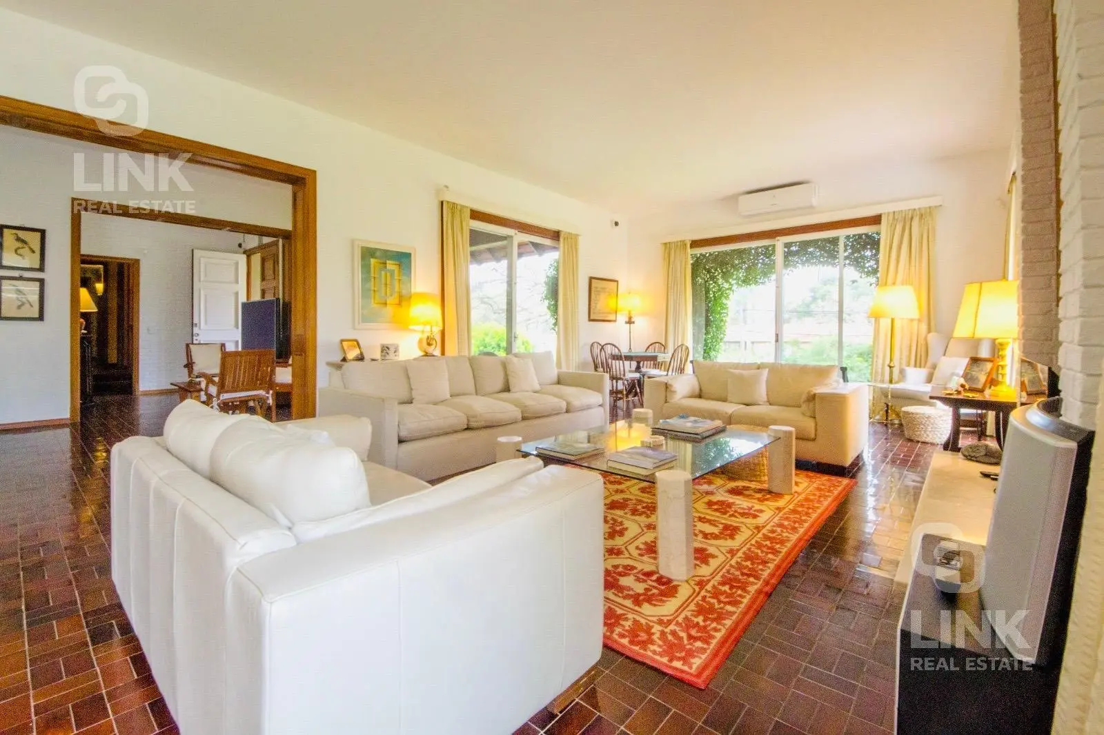 Consta de 628 mts. construidos, 556 mts. de casa principal y 70 mts. de casa de caseros, distribuidos en forma cómoda y funcional, para el disfrute familiar: proyectada en dos niveles, en su planta inferior encontramos un recibidor, pequeño estar con bar, living, comedor, doble cocina con desayunador, máster suite y tres dormitorios.