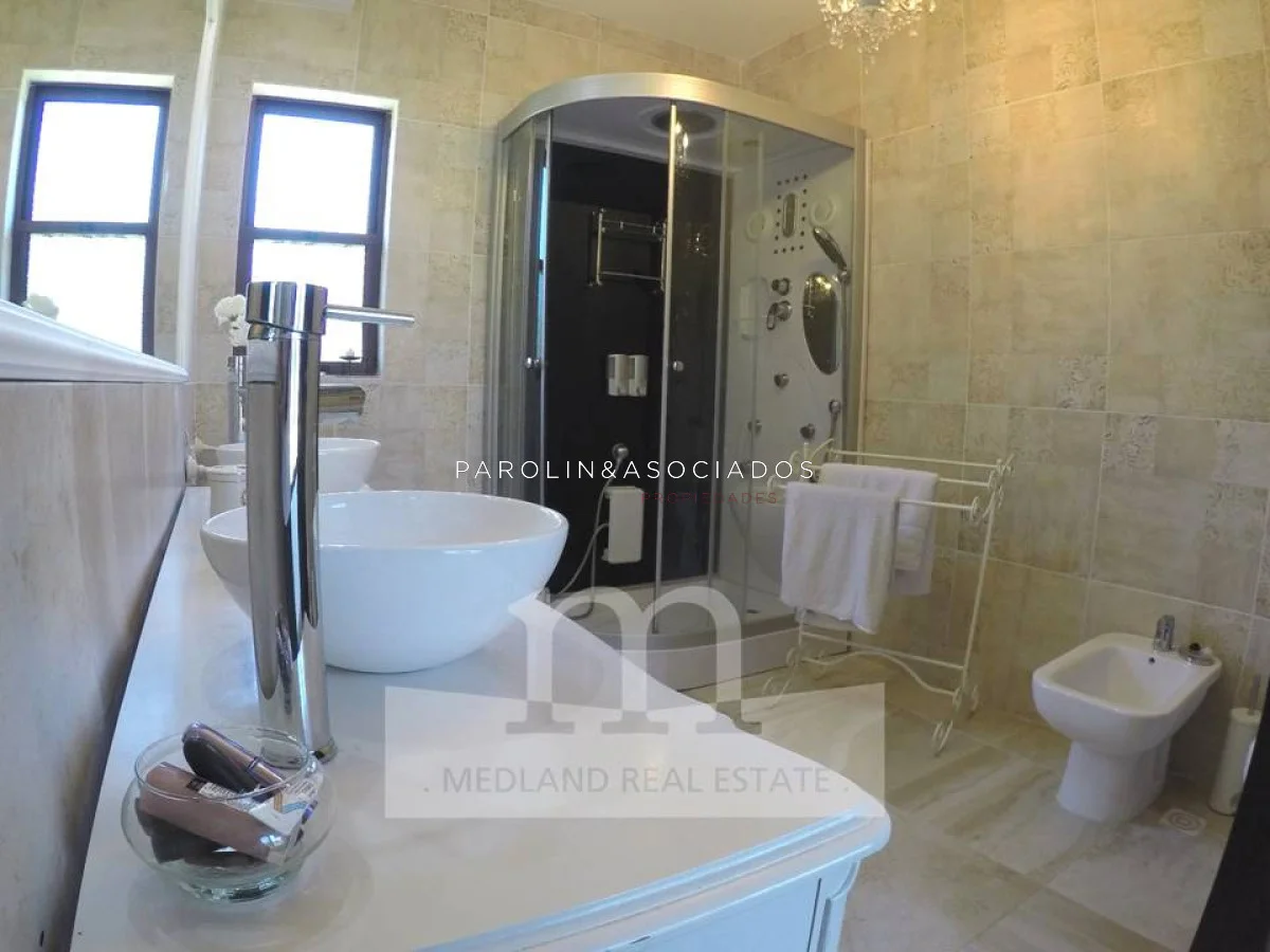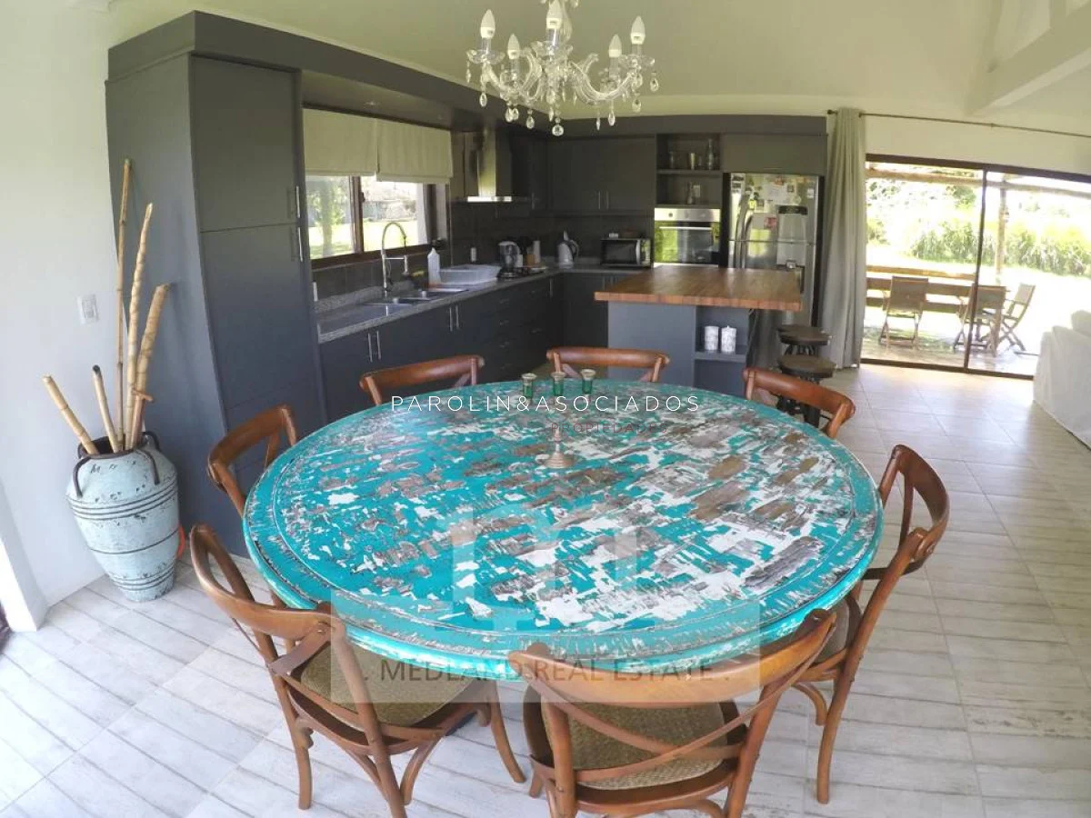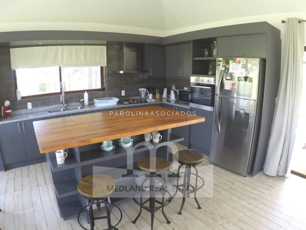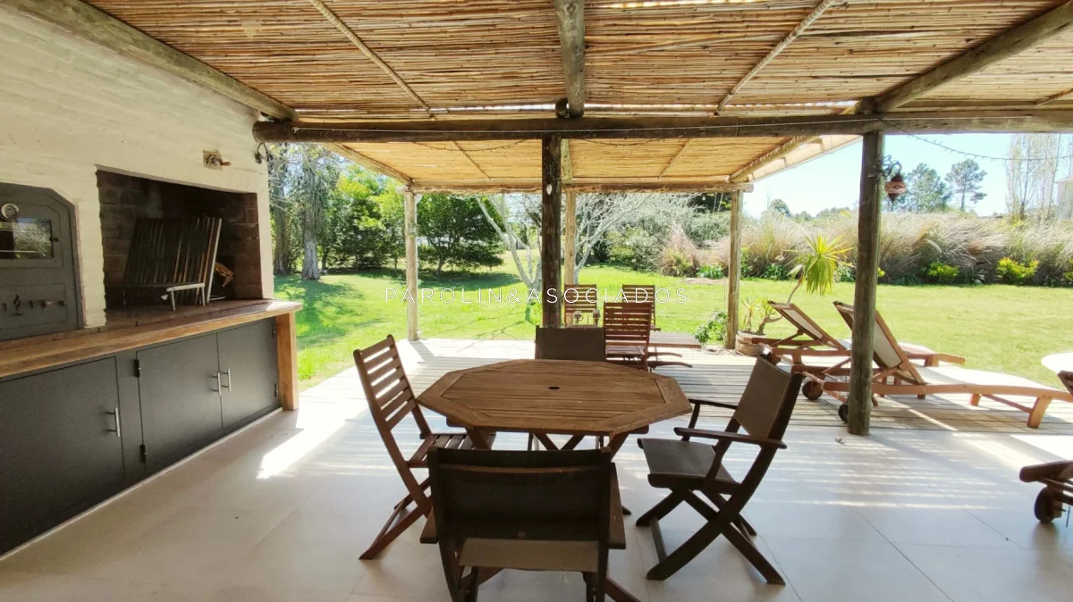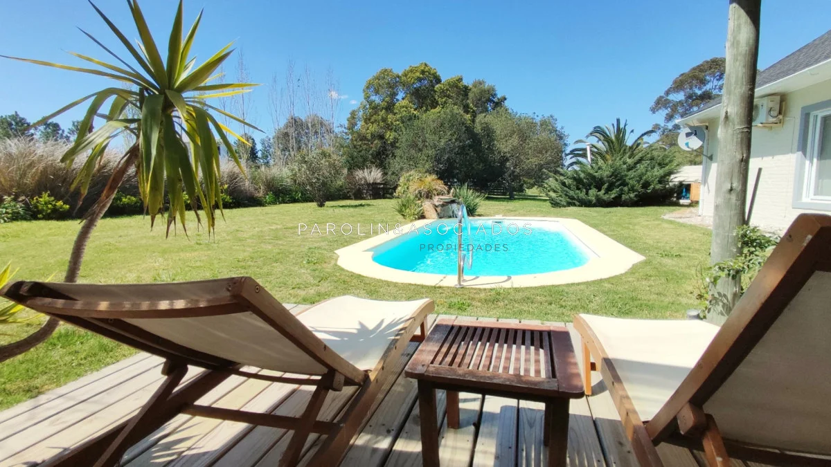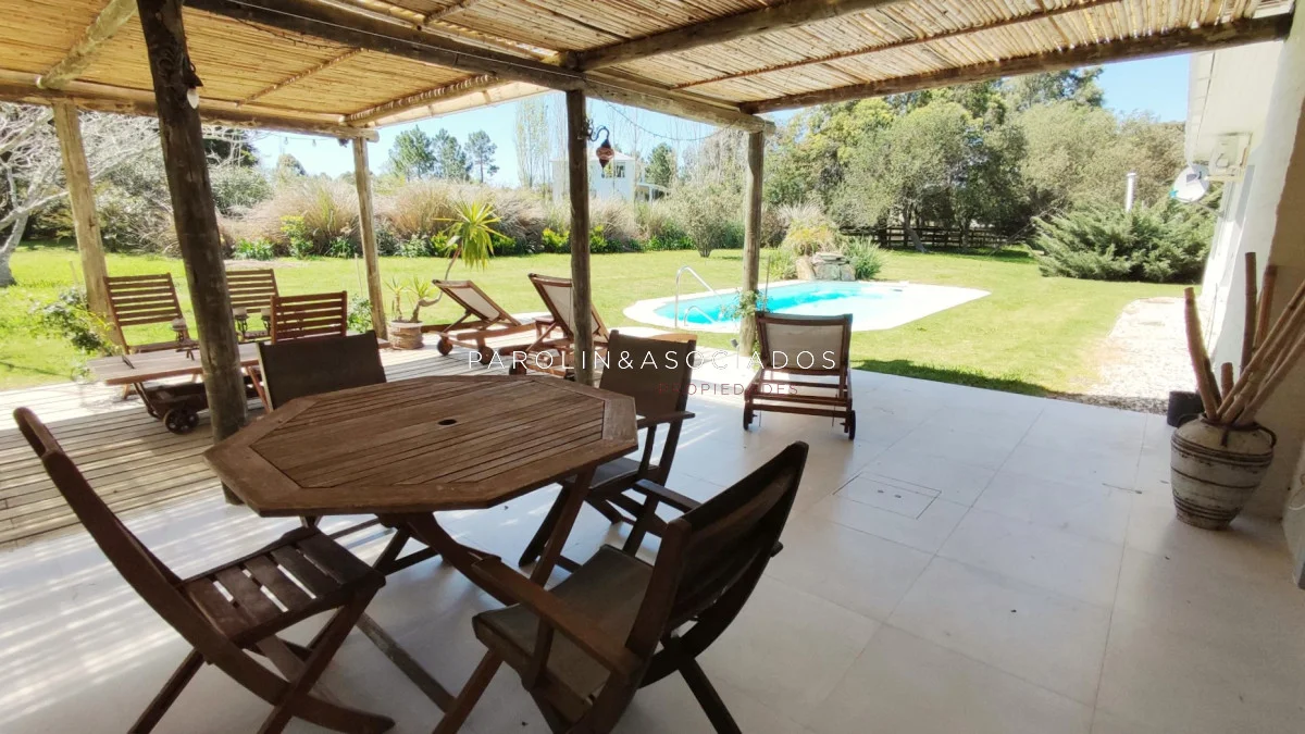 Cuenta con 3 Dormitorios, 1 de ellos es suite, 2 Baños, cocina integrada, living comedor, parrillero techado en galería, piscina, equipo ablandador de agua potable en la casa además de que el barrio tiene planta de tratamiento de osmosis inversa.