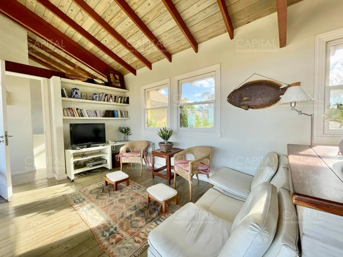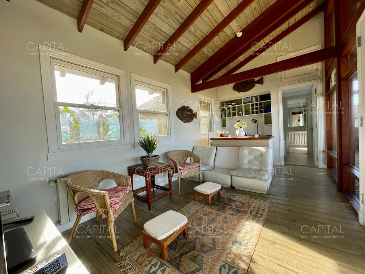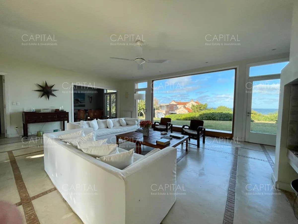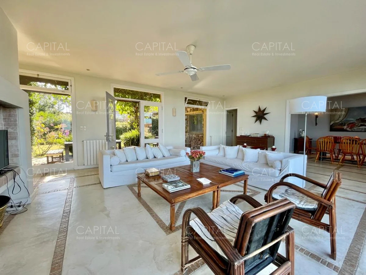 Living comedor super amplio con muy buena iluminación y vista al mar, unido a una galería que sale al lindo jardin con parrillero techado, hogar a leña, área definida de comedor.