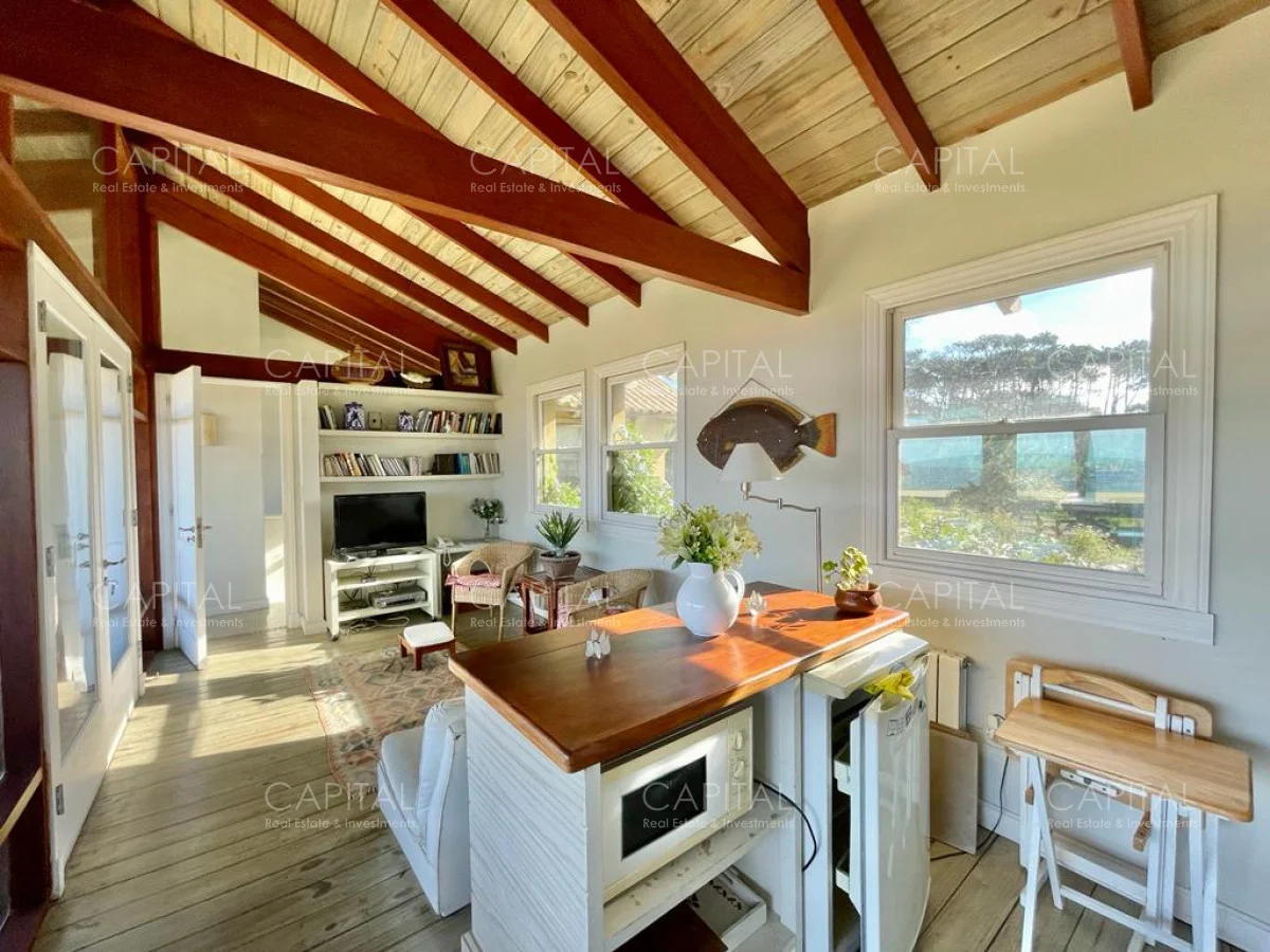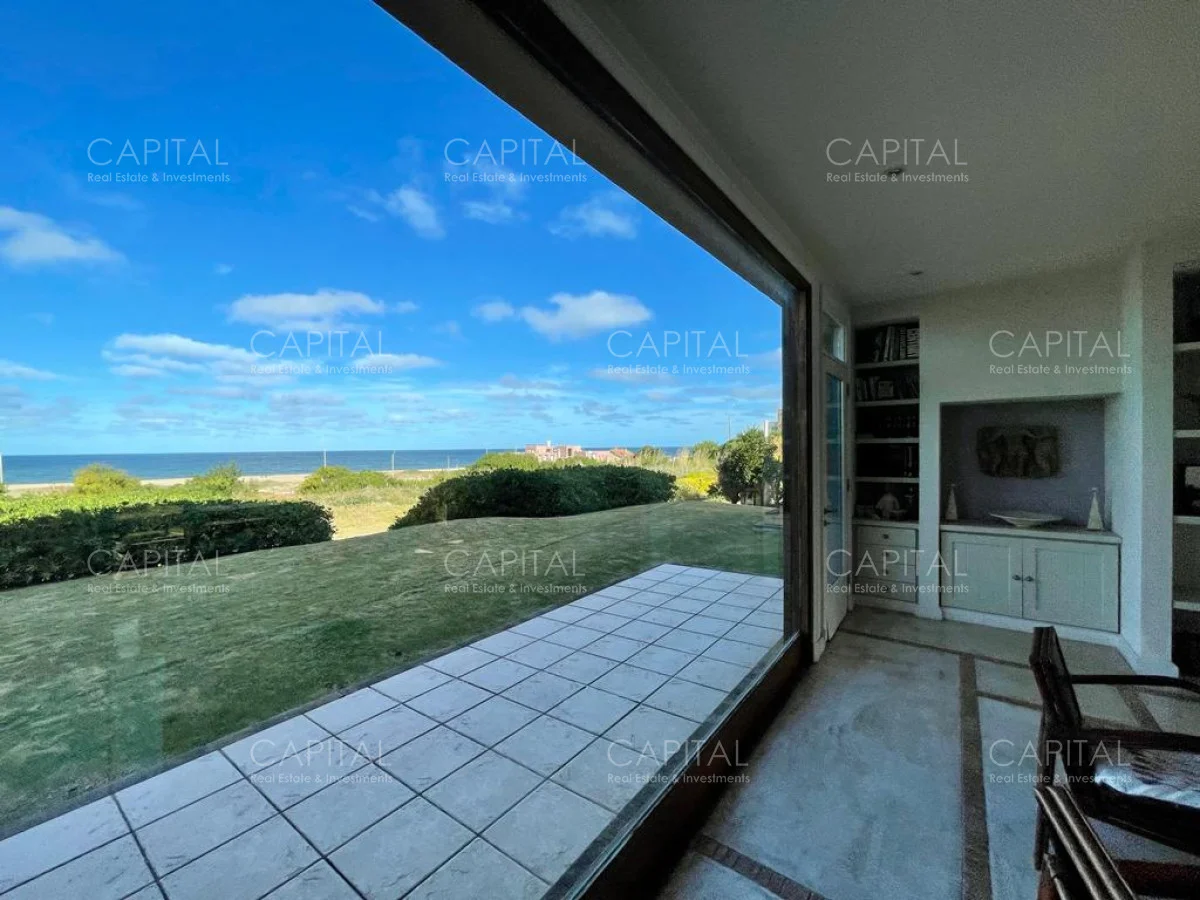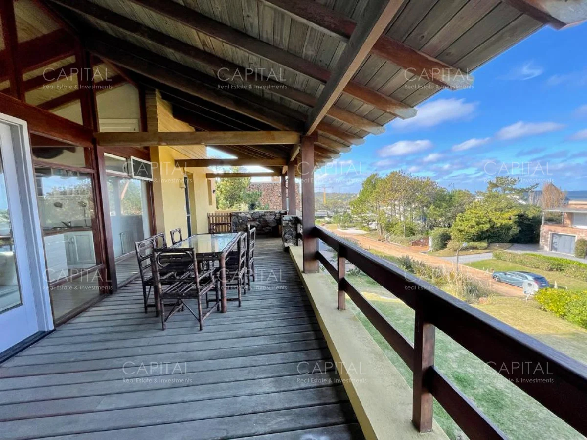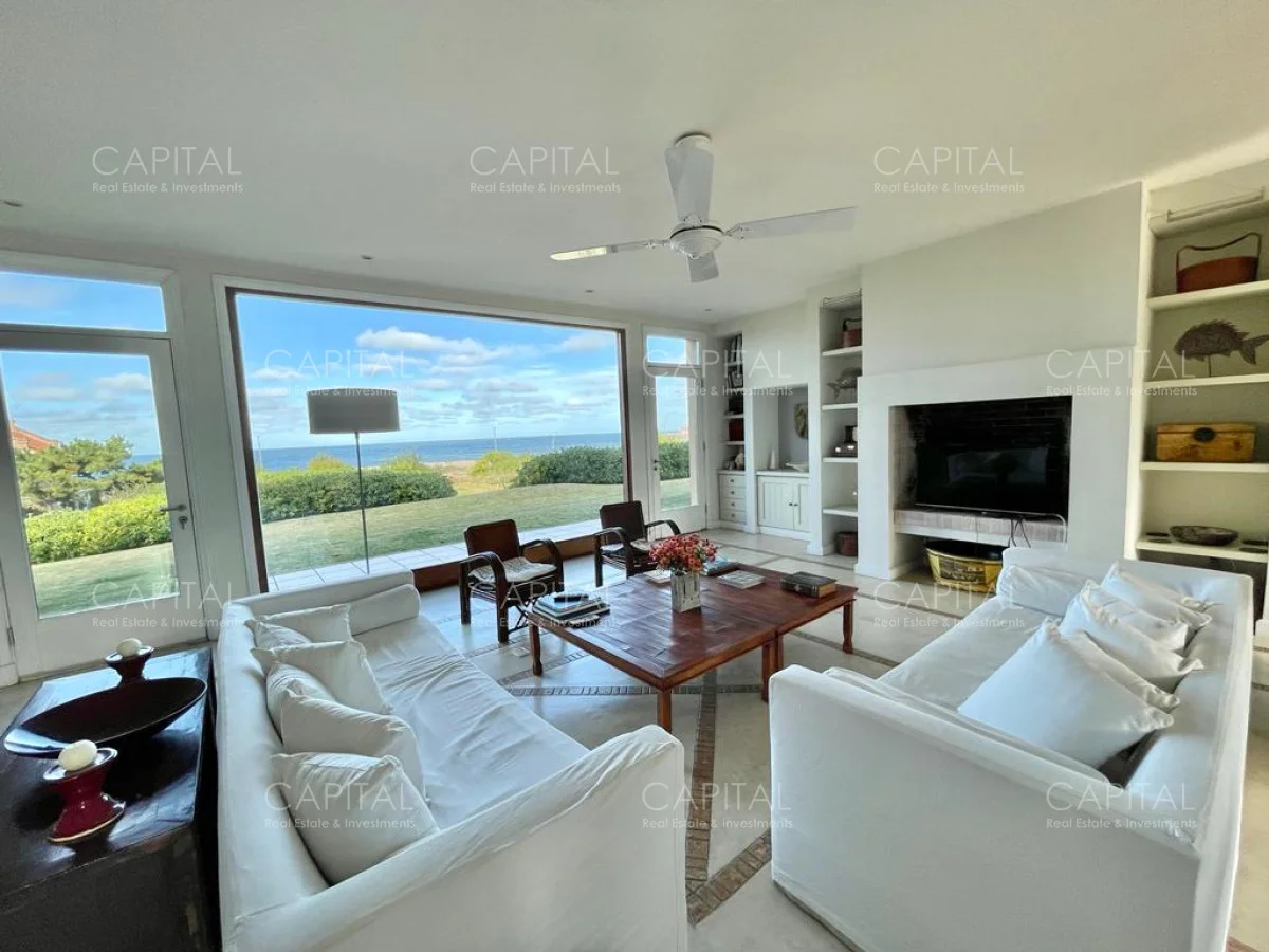 Living comedor super amplio con muy buena iluminación y vista al mar, unido a una galería que sale al lindo jardin con parrillero techado, hogar a leña, área definida de comedor.
