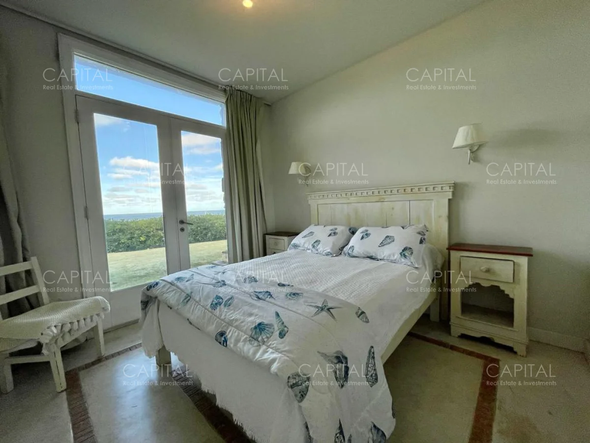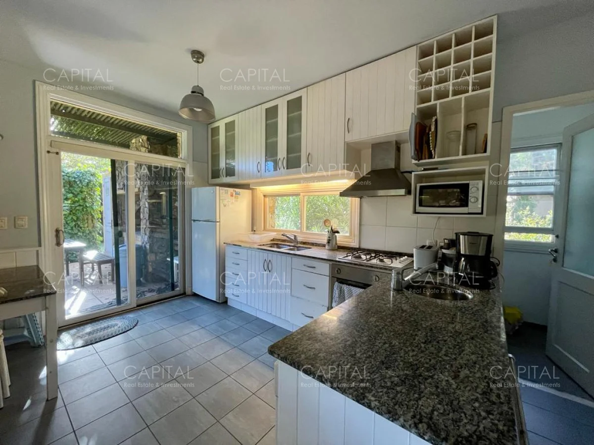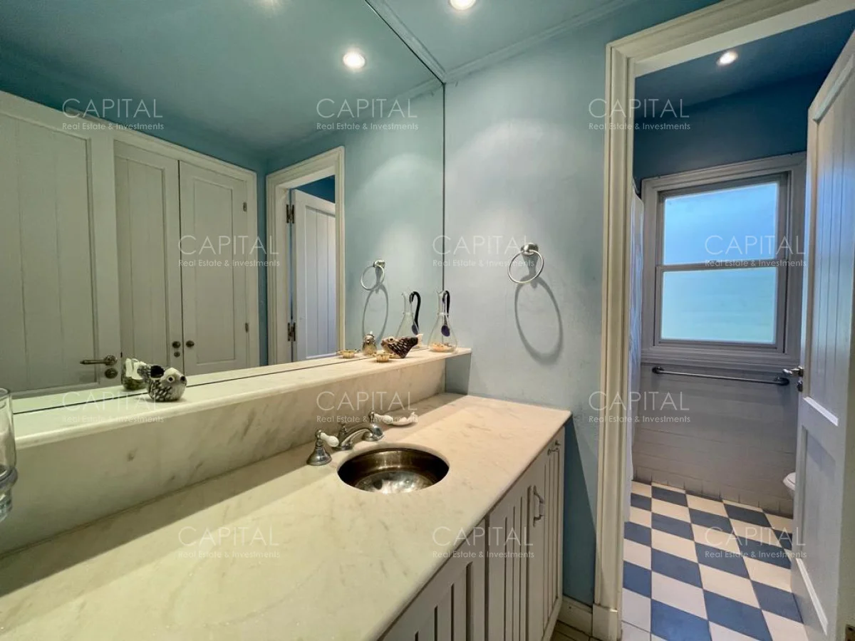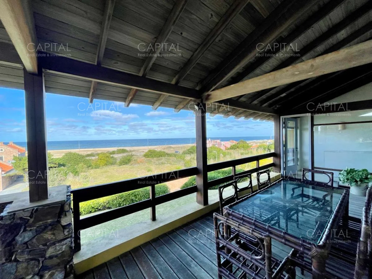 Living comedor super amplio con muy buena iluminación y vista al mar, unido a una galería que sale al lindo jardin con parrillero techado, hogar a leña, área definida de comedor.