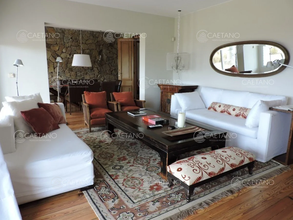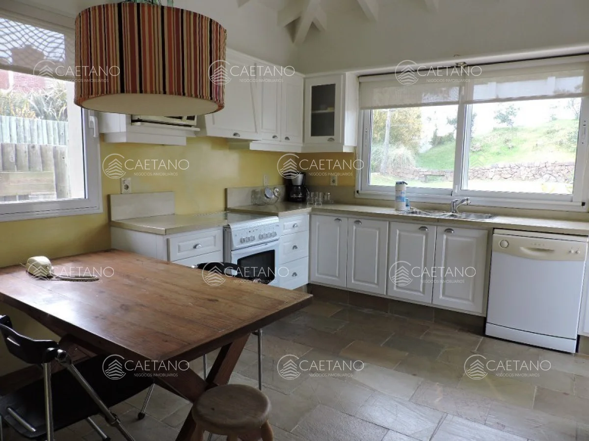 Propiedad ubicada a 300M del mar en la zona de El Chorro muy bien decorada y con vistas al mar. Diseñada en dos plantas, cuenta con 3 dormitorios en suite y dependencia de servicio. Totalmente equipada, cochera, parrillero, calefacción por losa radiante, aire acondicionado y Direct TV. Excelentes vistas. Planta principal: hall de entrada, living, comedor. Un dormitorio con baño que puede hacer las veces de servicio. Cocina muy completa con buena heladera, microondas, lavavajillas, electrodomésticos varios. Lavadero. Toilette de recepción. En ala opuesta, dormitorio principal en suite con vestidor. Planta alta. Dos dormitorios en suite con vistas al mar. Vea las fotos o visítela en nuestra oficina de Amarras La Barra. Referencia Interna : Tera-2208