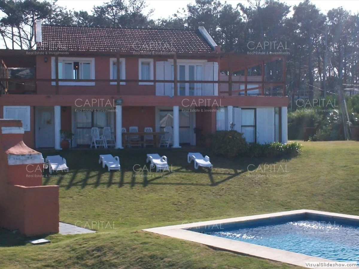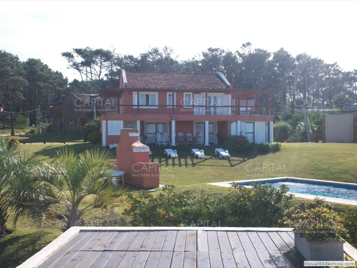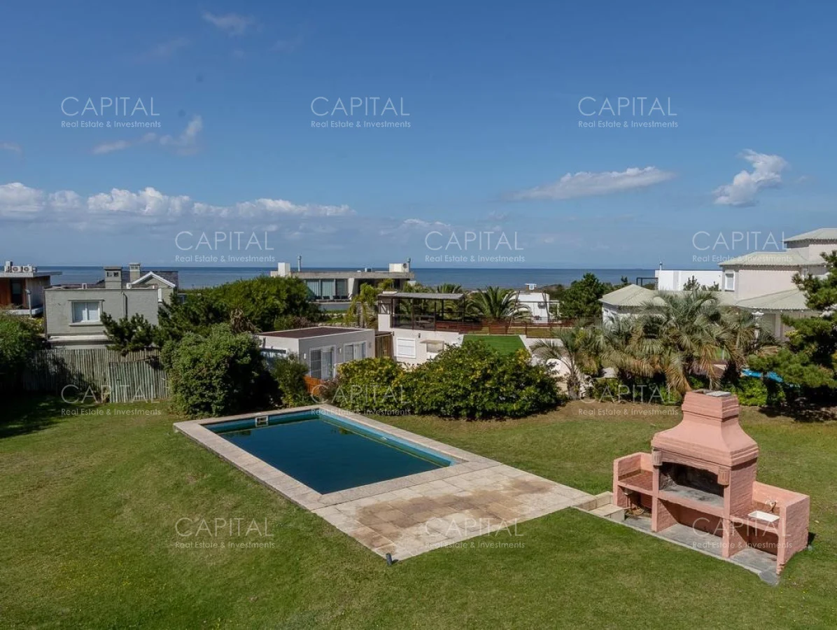 Espectacular casa a 1 cuadra de la playa. Cuenta con 4 dormitorios en suite, habitación de servicio con baño, amplia terraza con vista al mar y piscina en un gran parque.