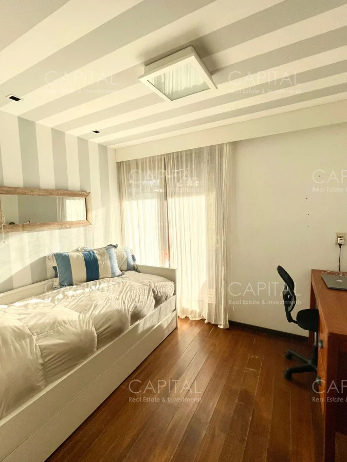 Hermosa casa para todo el año, Orientación norte, muy iluminada, zona segura y tranquila en El Chorro. Un exuberante jardín de 800 m con gran vegetación arboles y palmeras. 341 metros construidos y techados, 205 metros cerrados. Gran Living super luminoso con Toilet, dos dormitorios en suite con sus vestidores, 2 dormitorios con su baño, sala de TV, lavadero, Parrilla protegida del viento veraniego, Cochera para dos autos techada.