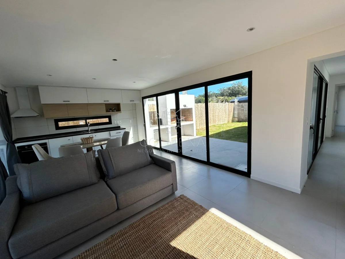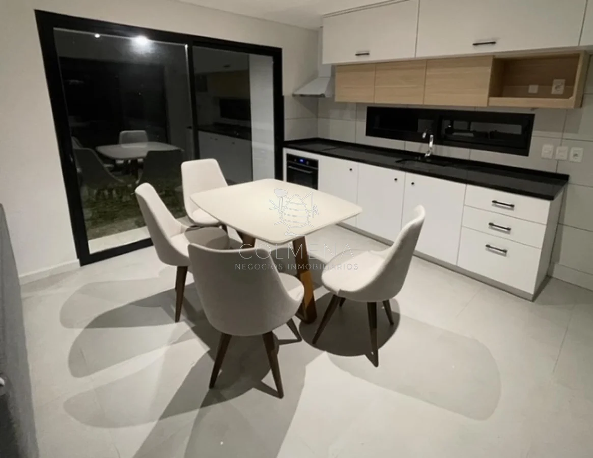 Por otro lado, la unidad cuenta con un living comedor de co?modas dimensiones, con una muy linda cocina americana, ideal para crear un calido y ameno ambiente en familia, y un parrillero en la parte trasera de la casa.