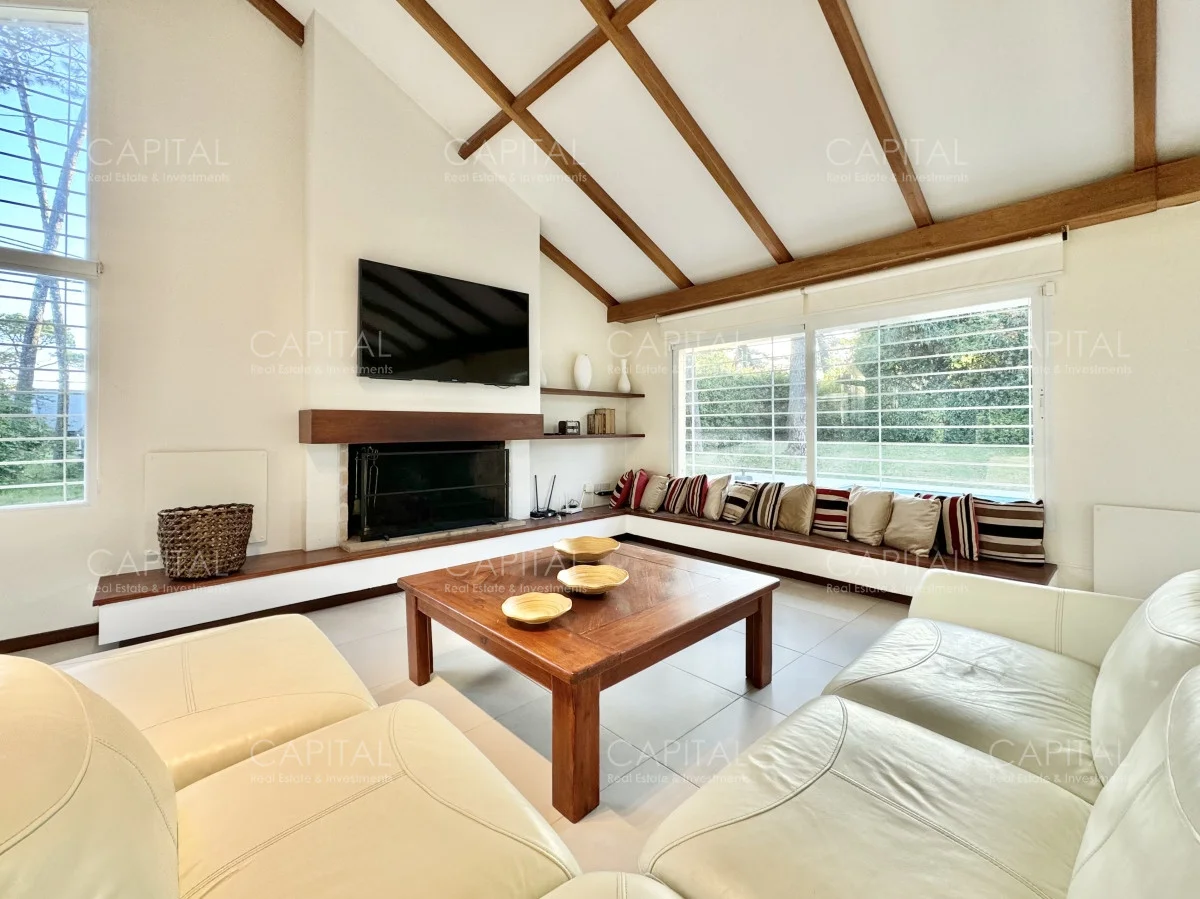 Cuatro dormitorios (dos en suite), dependencia de servicio, cinco baños, un gran living con estufa a leña y comedor, cocina definida, completa y lavadero, aire acondicionado en cada habitación, Piscina climatizada, parrillero, riego automático, iluminación exterior automatizada, cochera, perímetro cerrado