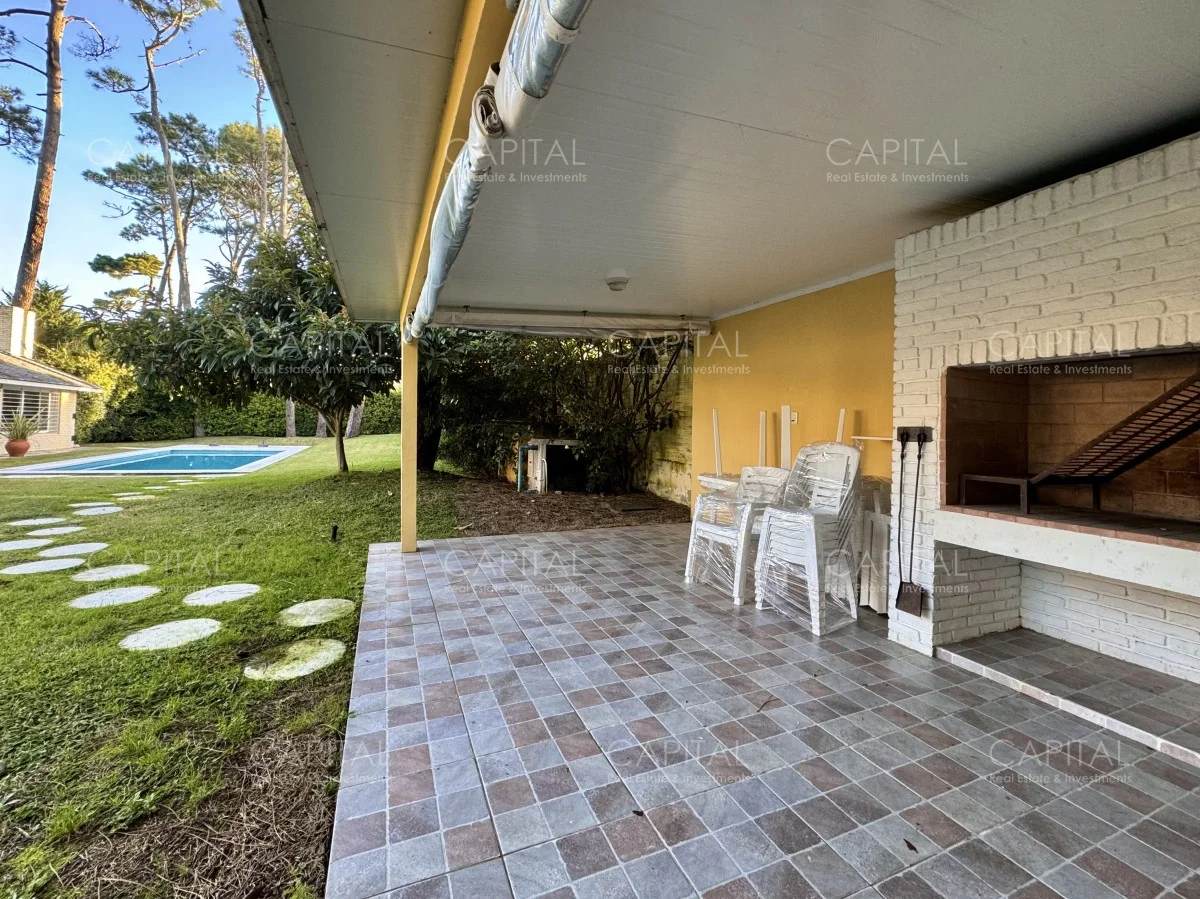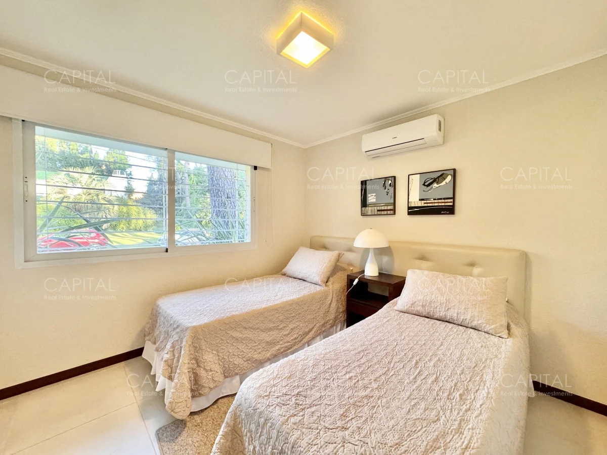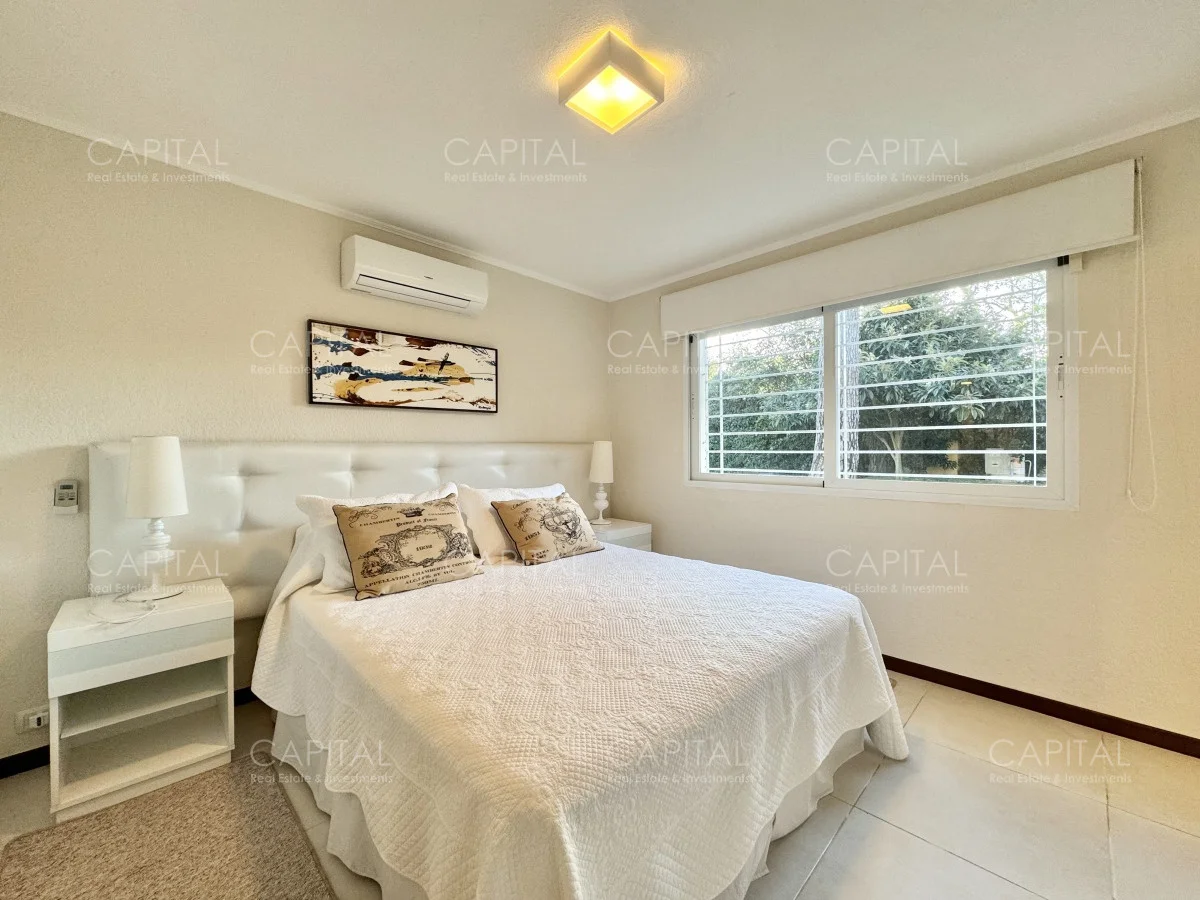 Cuatro dormitorios (dos en suite), dependencia de servicio, cinco baños, un gran living con estufa a leña y comedor, cocina definida, completa y lavadero, aire acondicionado en cada habitación, Piscina climatizada, parrillero, riego automático, iluminación exterior automatizada, cochera, perímetro cerrado