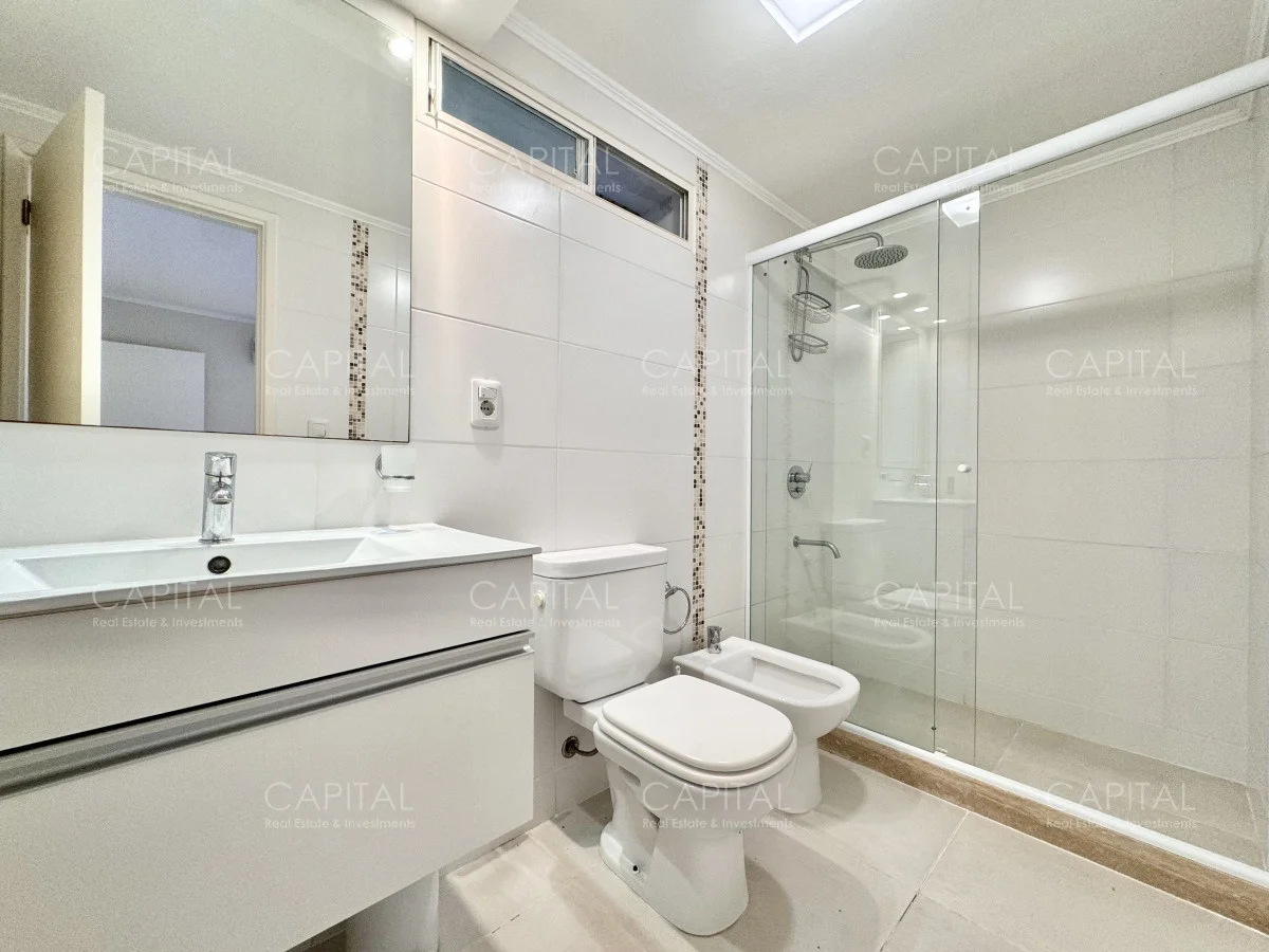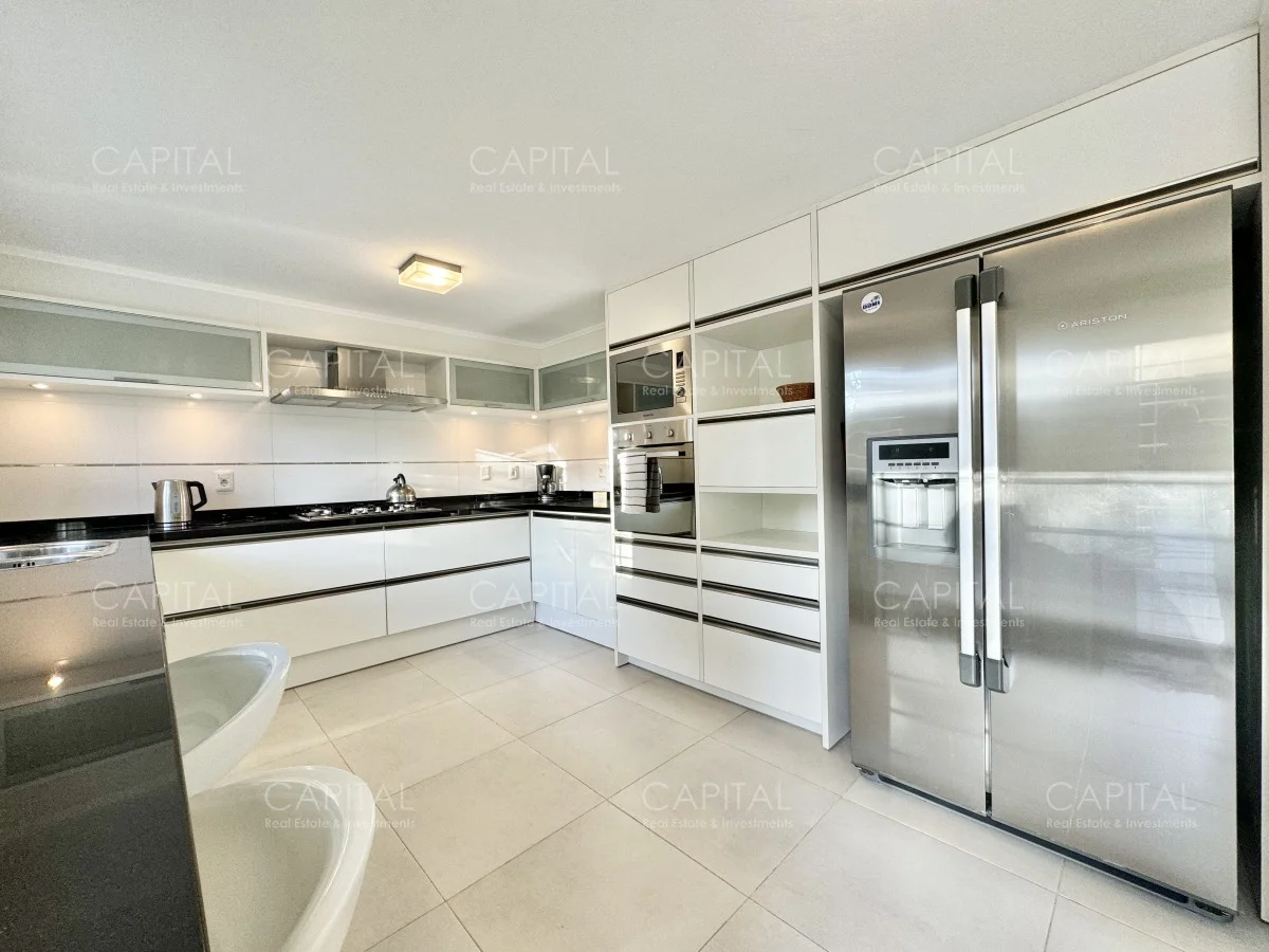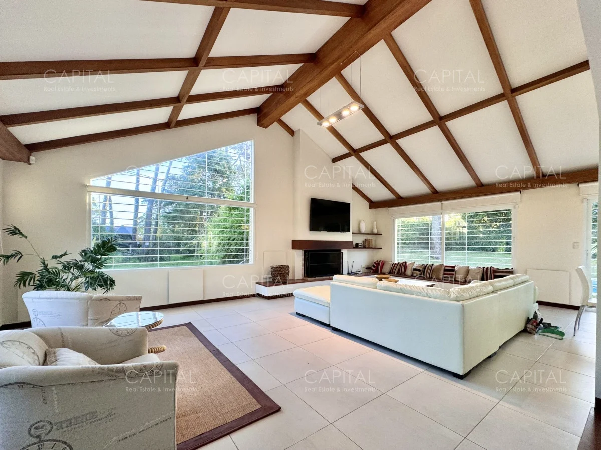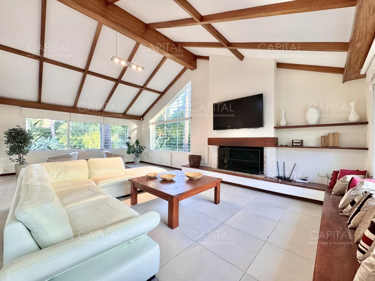 Cuatro dormitorios (dos en suite), dependencia de servicio, cinco baños, un gran living con estufa a leña y comedor, cocina definida, completa y lavadero, aire acondicionado en cada habitación, Piscina climatizada, parrillero, riego automático, iluminación exterior automatizada, cochera, perímetro cerrado