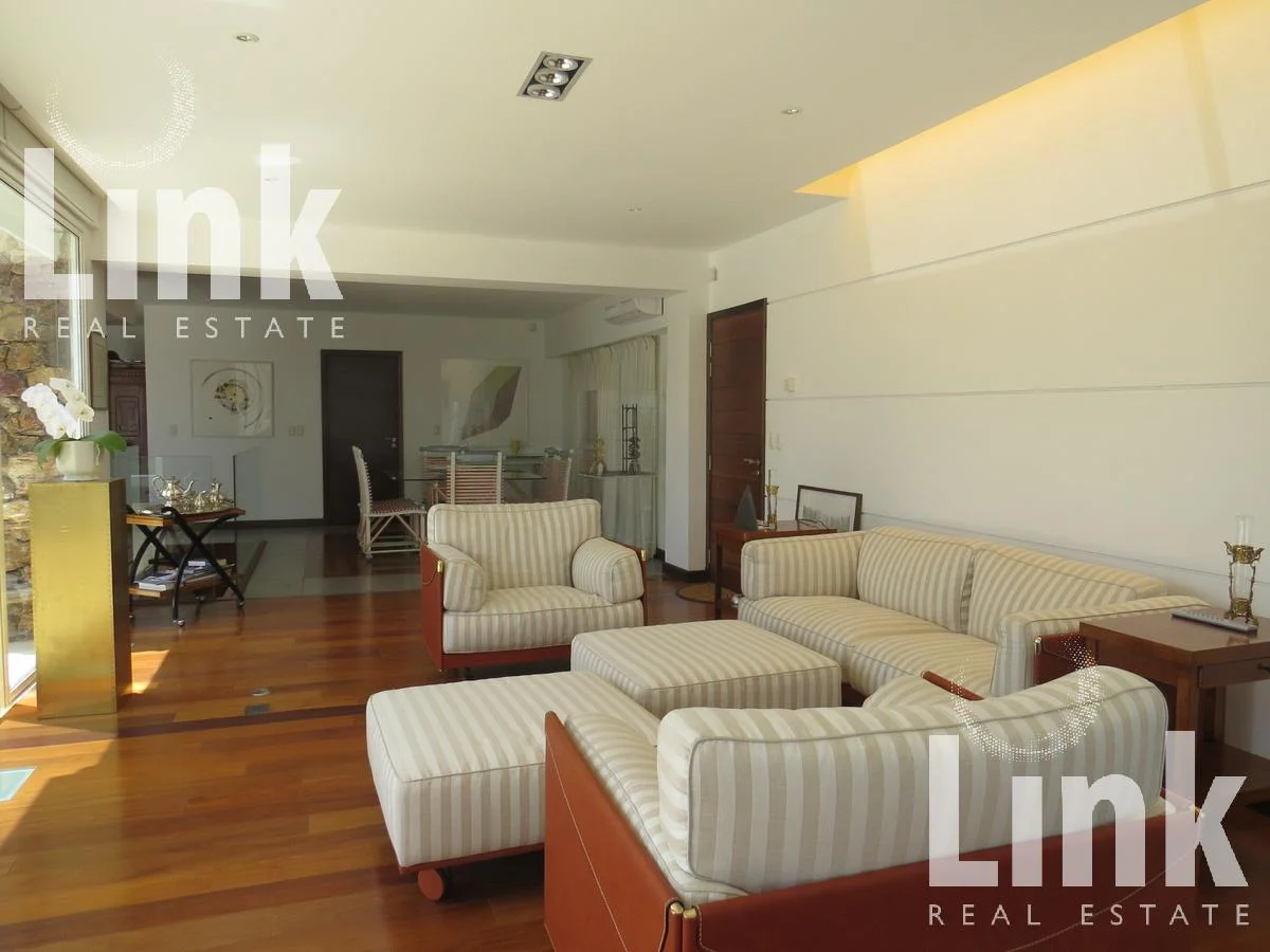 Cuenta con 4 dormitorios, 3 baños (2 en suite), amplios ambientes sociales, estar con estufa a leña, living comedor con vista al mar, cocina funcional muy bien equipada, parrillero cubierto y piscina .