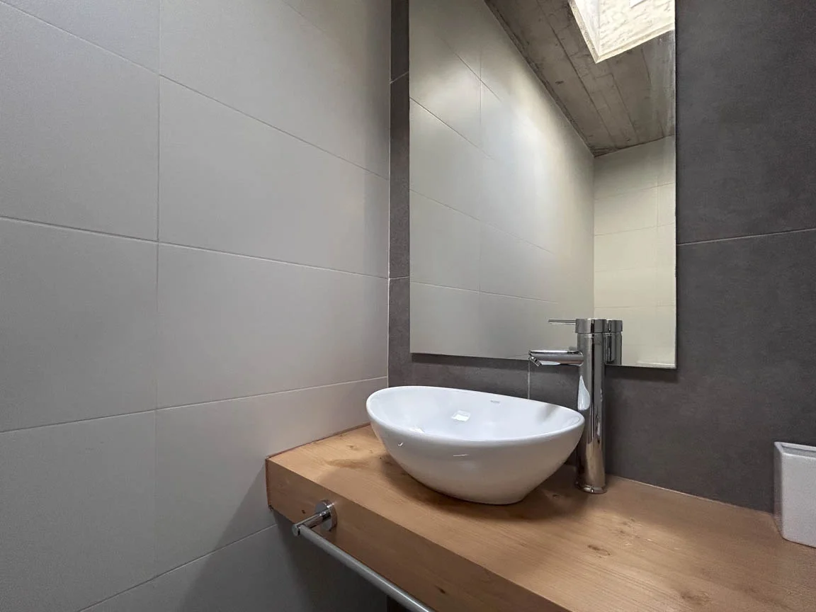 En el nivel intermedio un baño completo y la comunicación a otros dos dormitorios y la salida hacia la cochera cubierta.