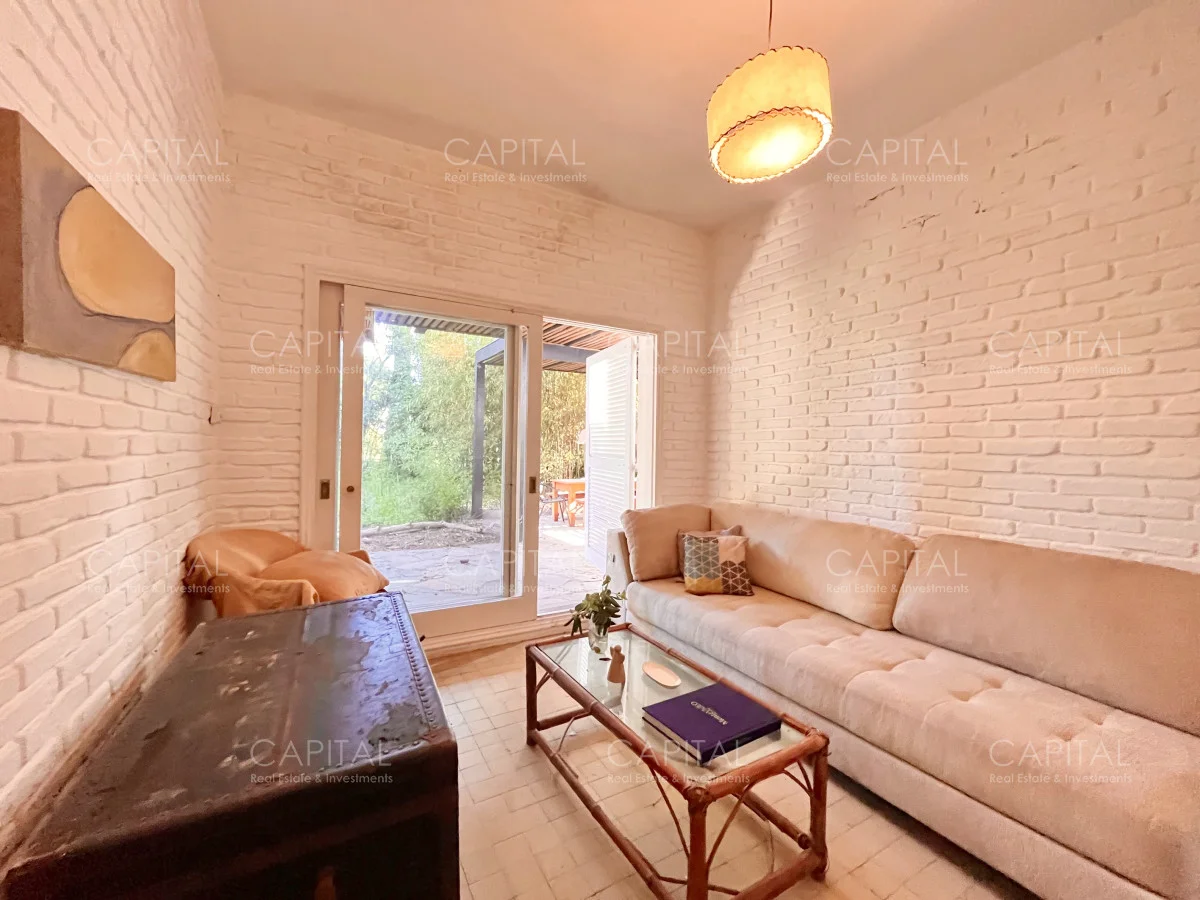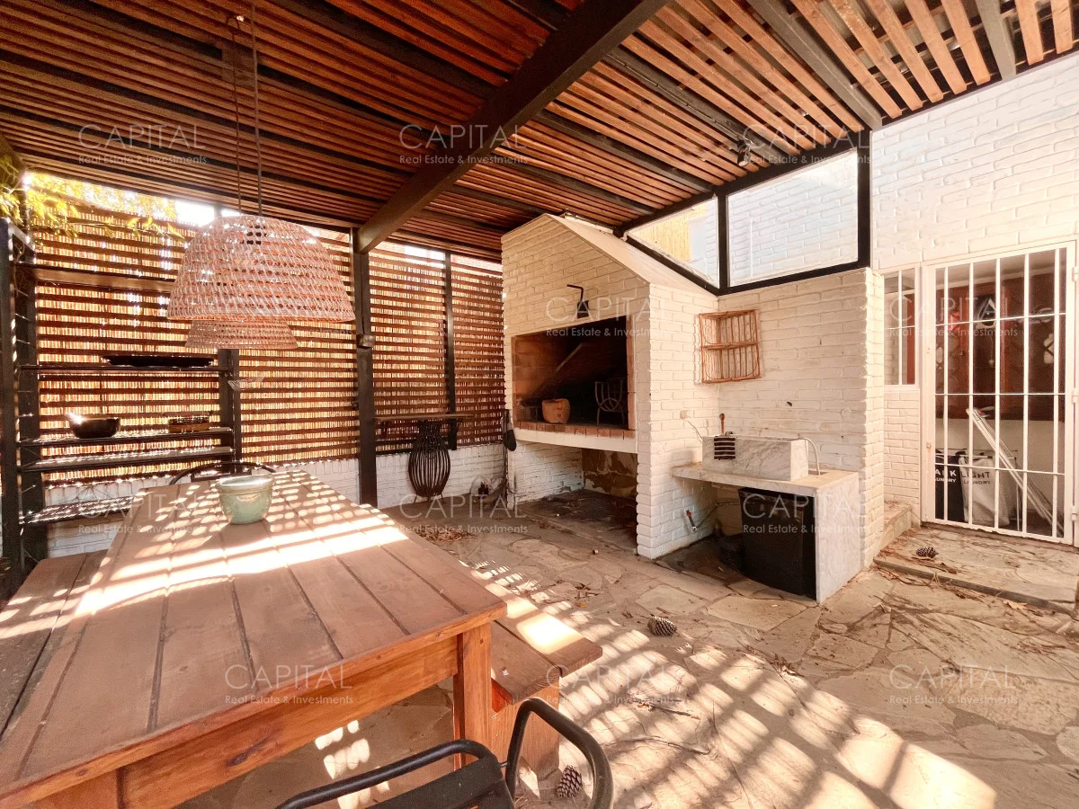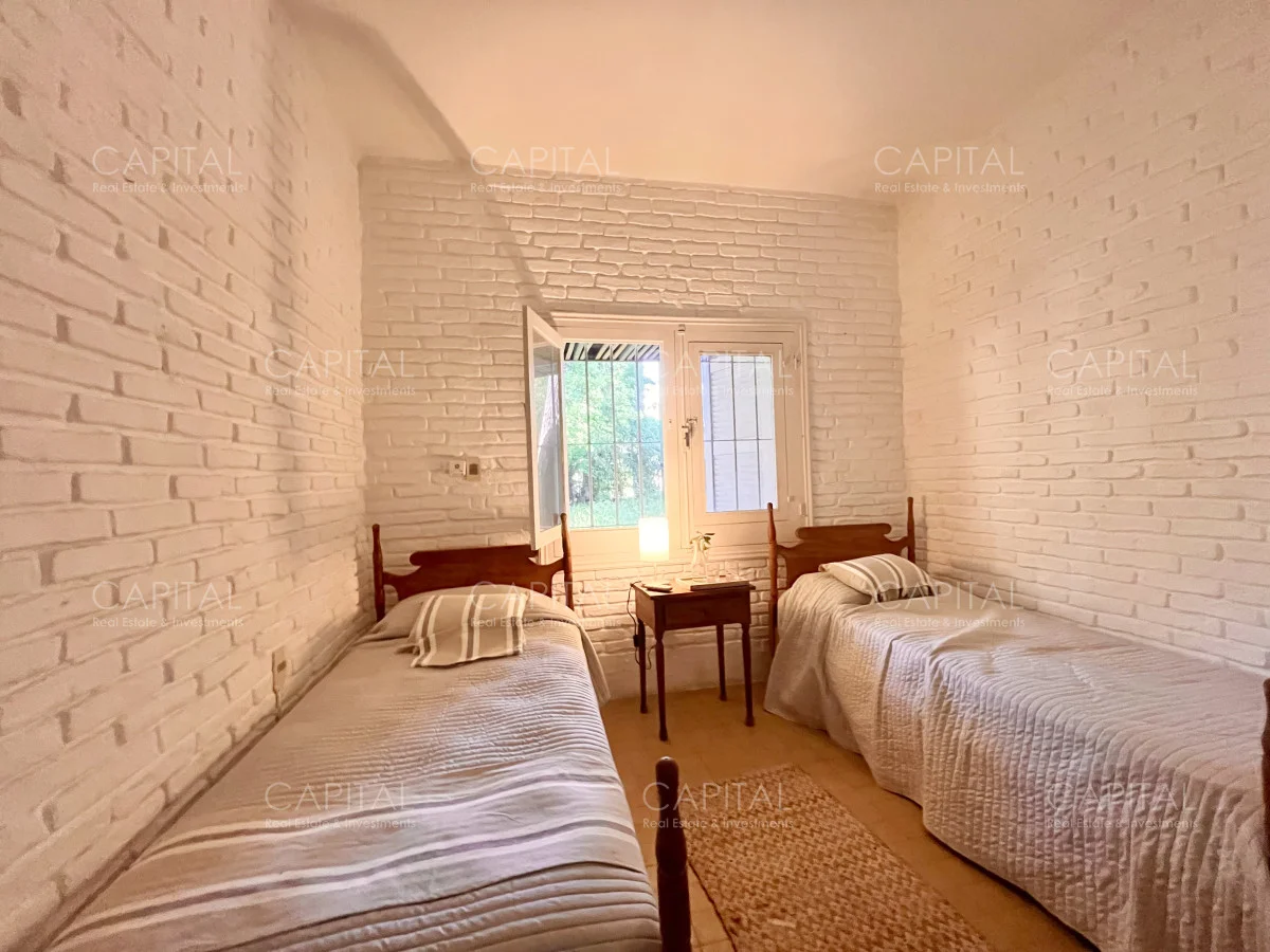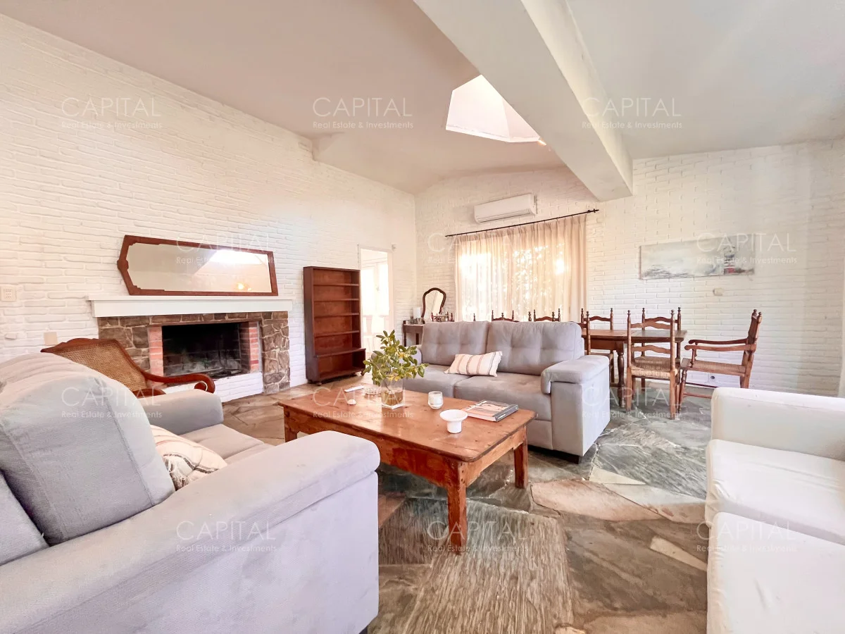 Cuenta con amplio y luminoso living comedor con hogar a leña, acogedor estar de recepción. Espaciosa cocina bien equipada, totalmente reciclada. Dispone de cinco cómodos dormitorios distribuidos en dos plantas, dos baños completos a nuevo. Extenso jardín verde con espacio para vehículos y parrillero techado.