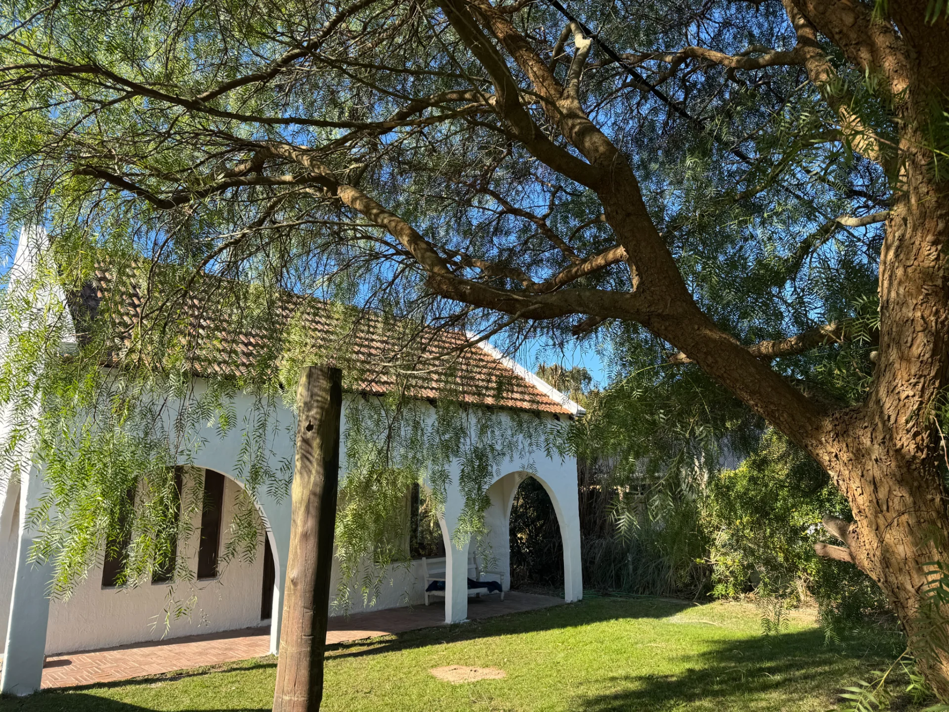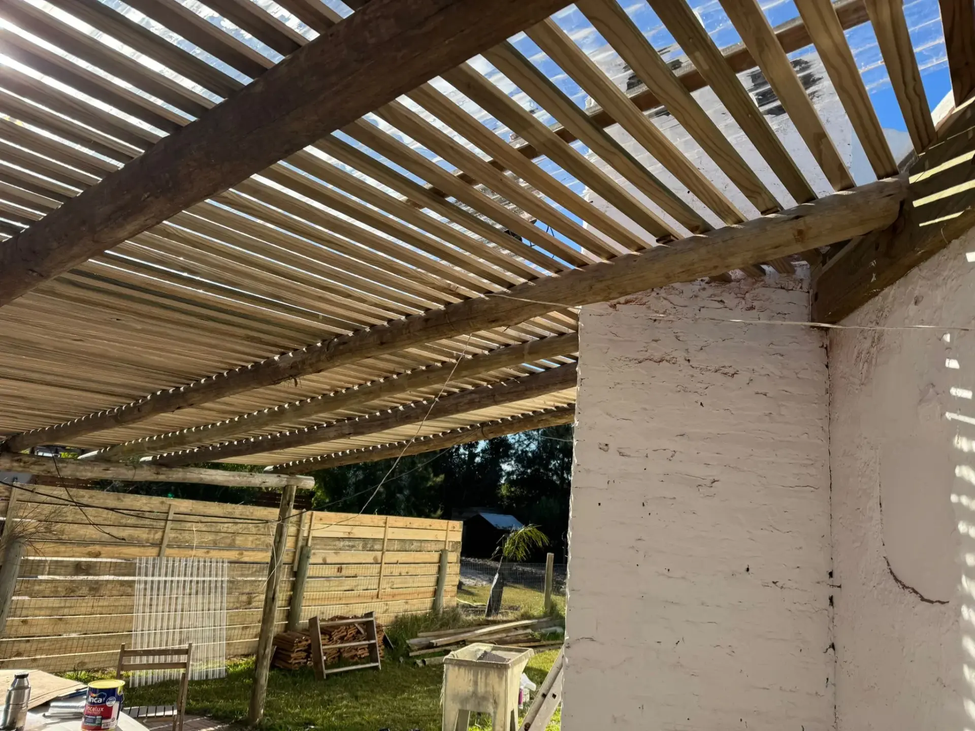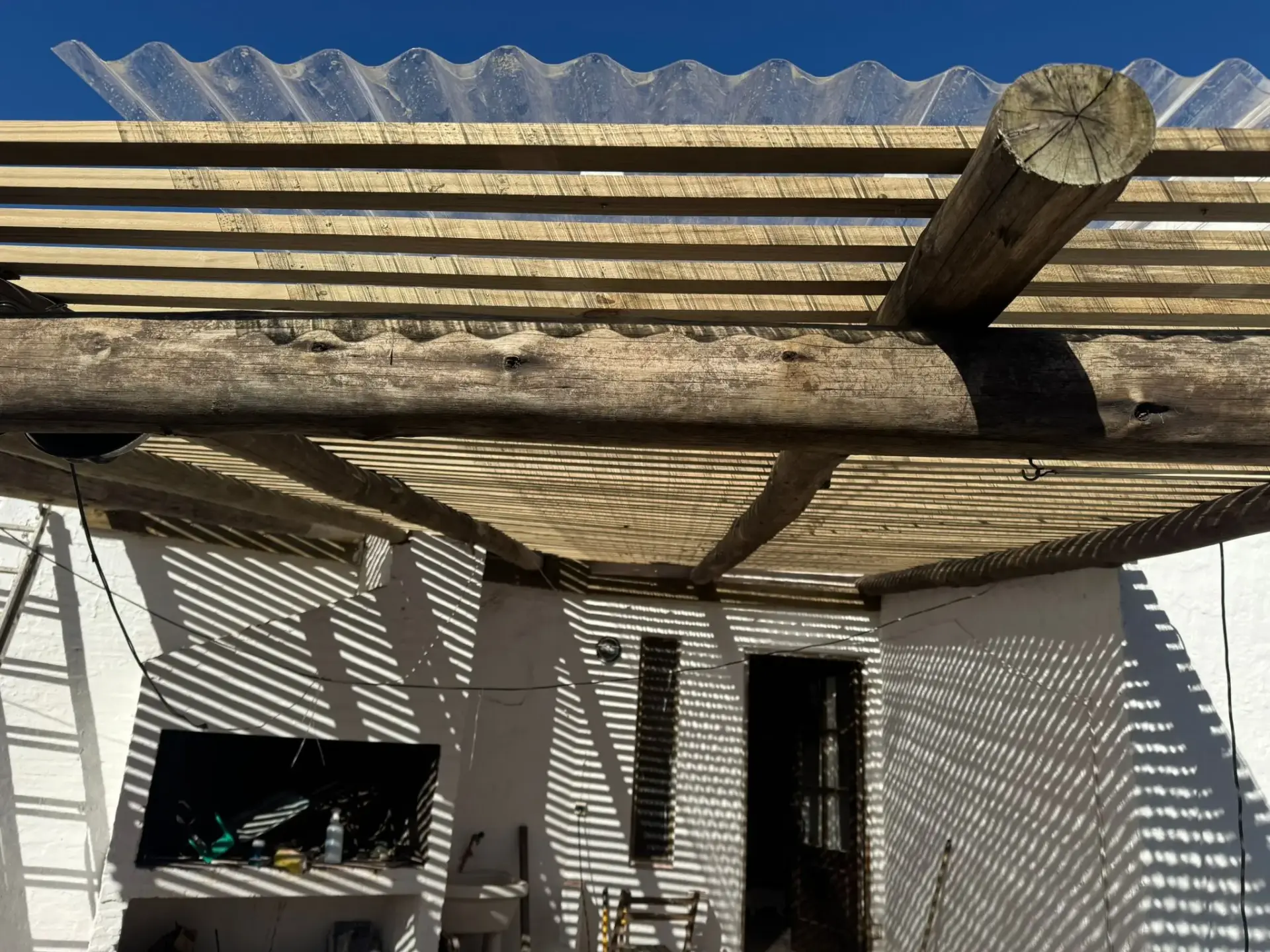 Barbacoa techada con policarbonato ondulado.