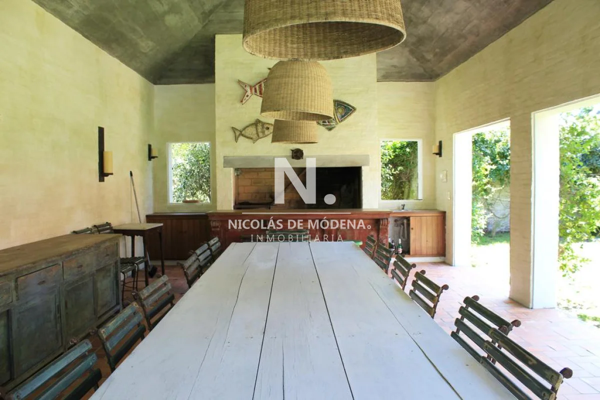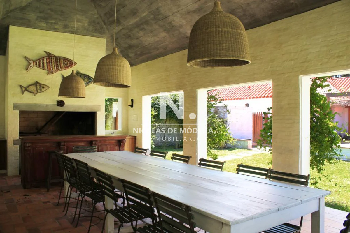 El área exterior invita a disfrutar plenamente de la vida en Punta del Este. El parque es amplio y muy bien mantenido, rodeado de vegetación que aporta privacidad y un entorno de calma. La piscina se integra de forma armoniosa con el jardín, creando un espacio ideal para refrescarse y relajarse durante los días de verano. Además, la propiedad cuenta con una parrilla techada, perfecta para reuniones familiares, almuerzos al aire libre o cenas distendidas sin preocuparse por el clima.