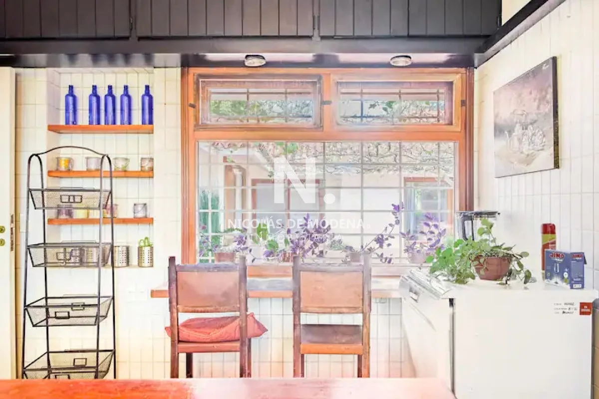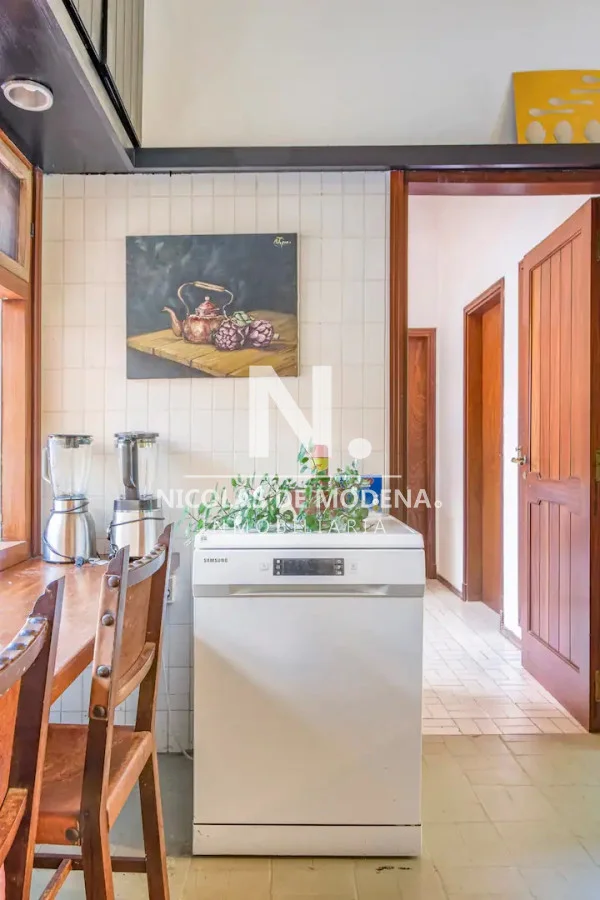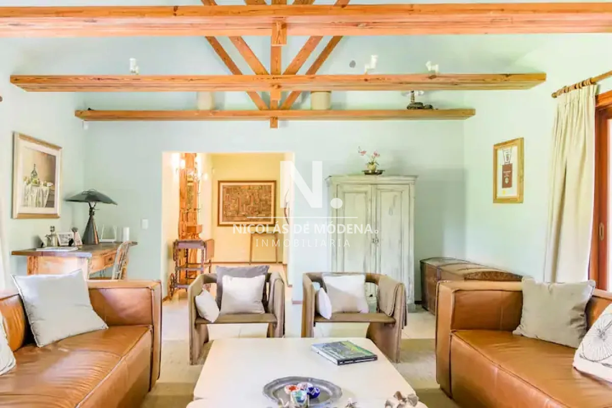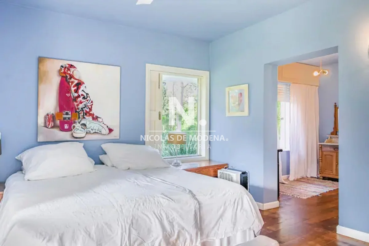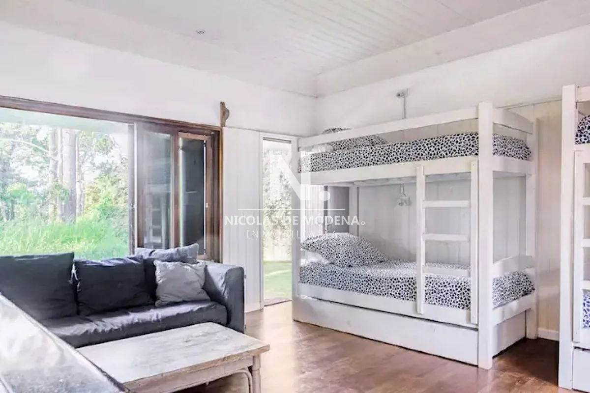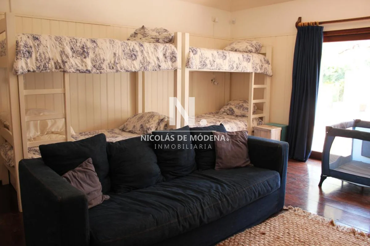 La casa cuenta con 6 dormitorios, distribuidos de forma inteligente para garantizar privacidad y descanso. Sus ambientes son amplios, luminosos y bien ventilados, acompañados de una agradable sensación de hogar. El living comedor es uno de los puntos más destacados: generoso en dimensiones, con grandes ventanales que permiten la entrada de luz natural y una estufa a leña que crea un ambiente cálido y acogedor, perfecto para compartir en familia o con amigos durante todo el año.