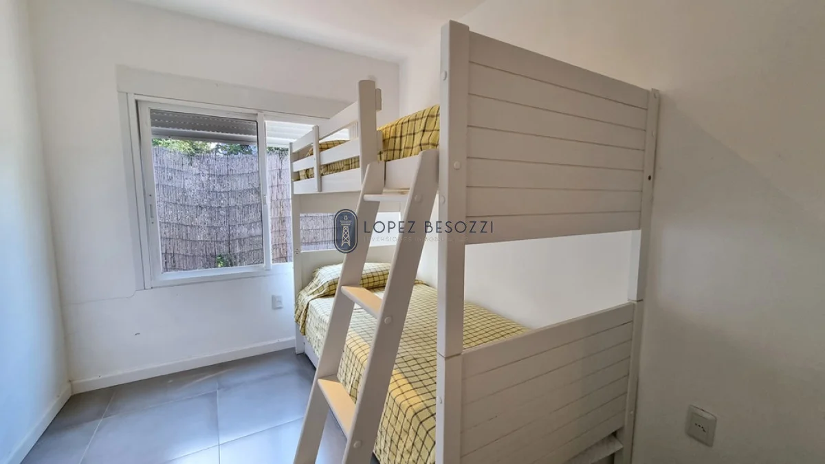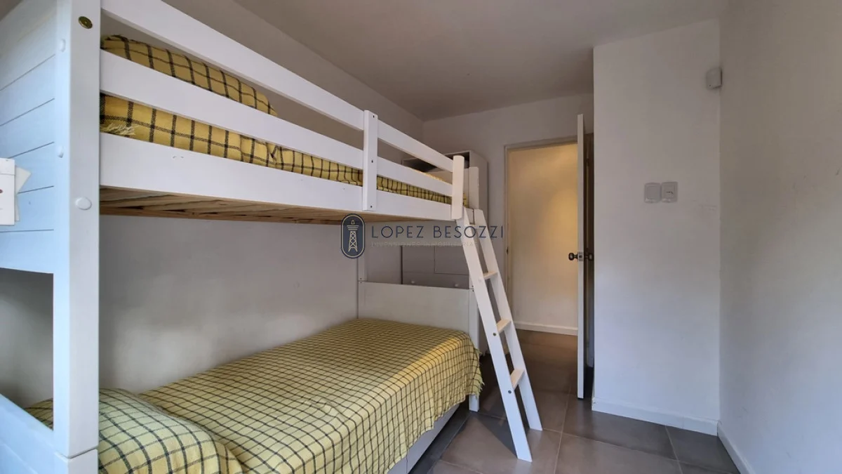 Ideal para descansar e ir caminando a la playa sin necesidad de utilizar un vehículo, propiedad muy cálida y luminosa de amplios ventanales con mosquiteros, distribuida en un solo nivel contando con living-comedor con estufa de alto rendimiento y cocina integrada con placares empotrados, pasillo de distribución hacia los dos dormitorios con placares (principal con aire acondicionado) y baño completo.