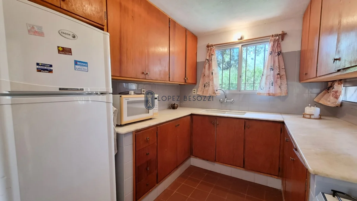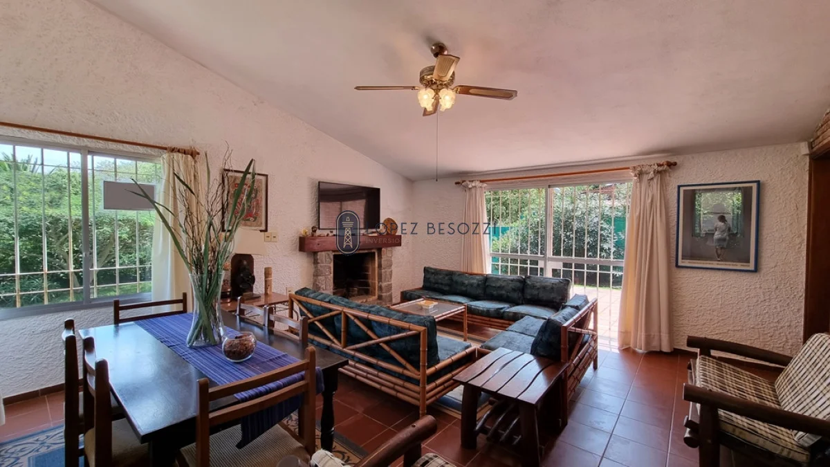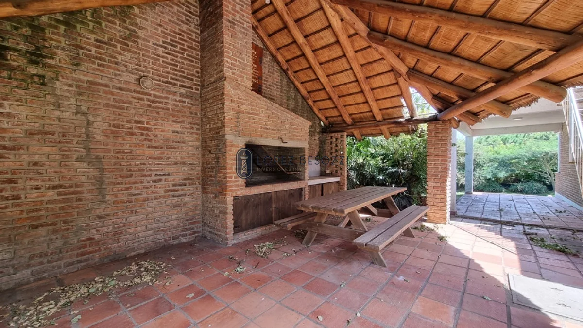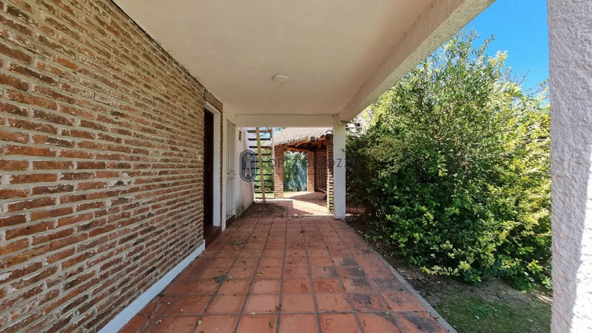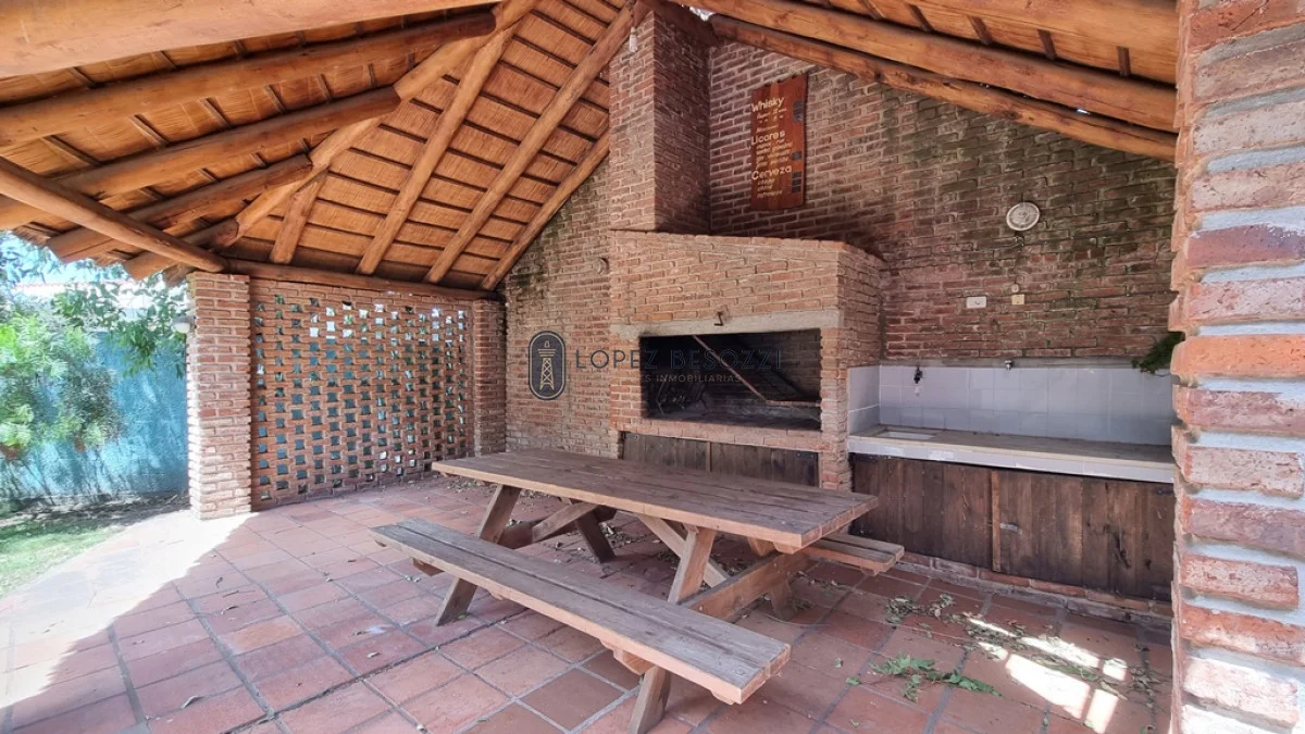 Fondo de buenas dimensiones donde se encuentra la barbacoa abierta con techo de quincho y terraza-solárium con vista parcial a los cerros. Propiedad con gran potencial a metros del mar en uno de los mejores balnearios de la zona. Consulte