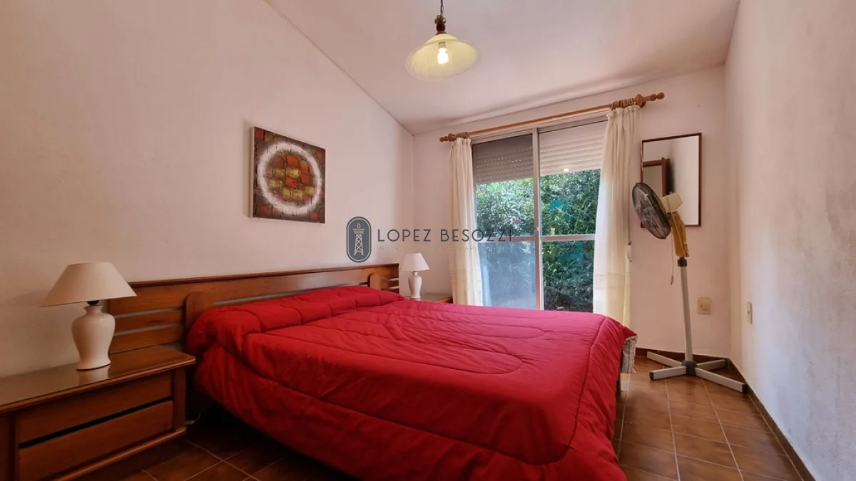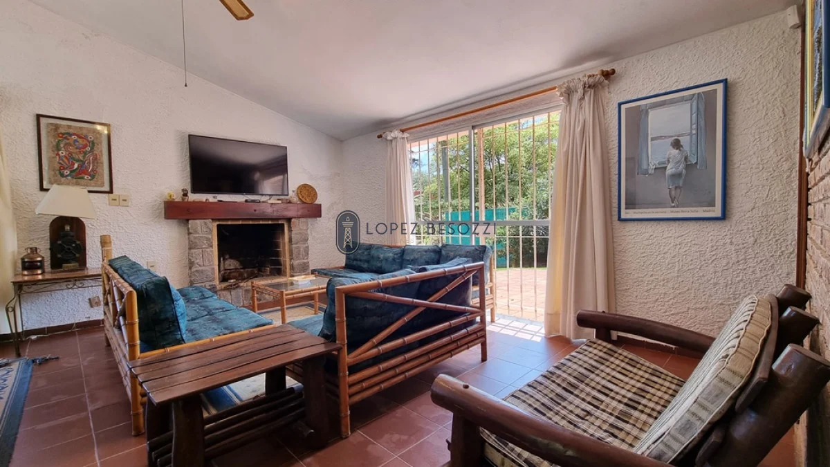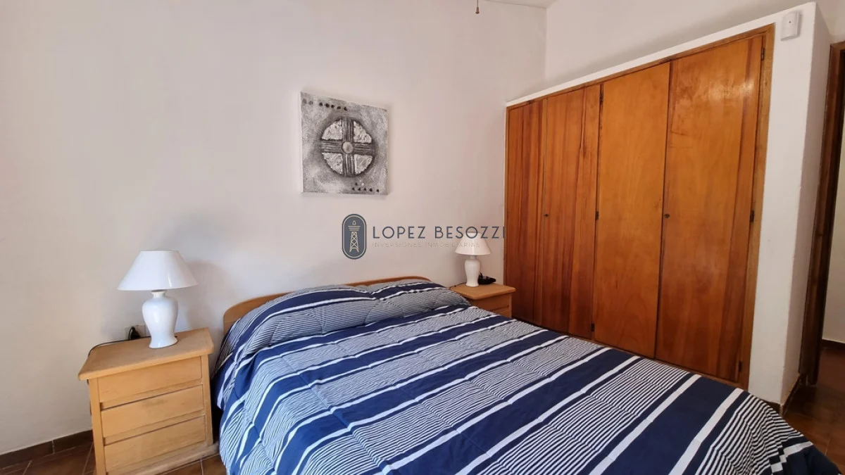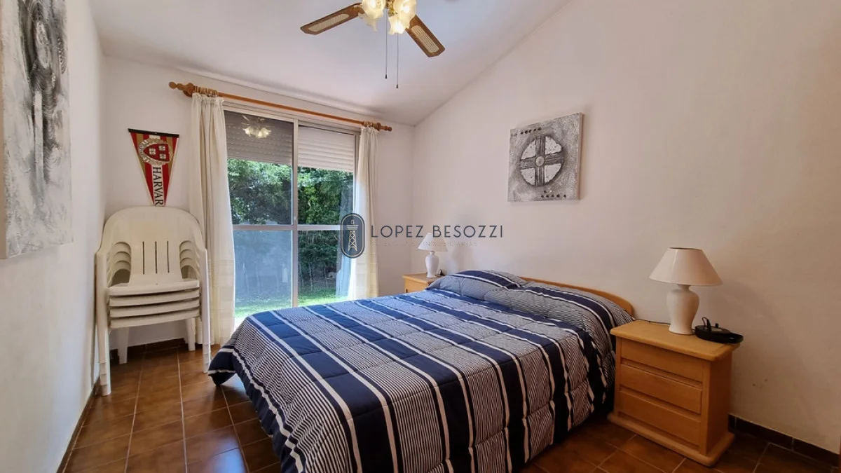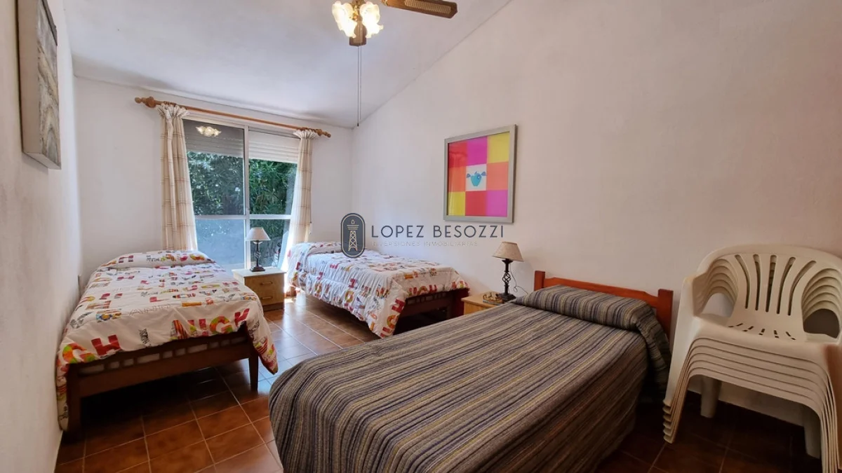 Fondo de buenas dimensiones donde se encuentra la barbacoa abierta con techo de quincho y terraza-solárium con vista parcial a los cerros. Propiedad con gran potencial a metros del mar en uno de los mejores balnearios de la zona. Consulte