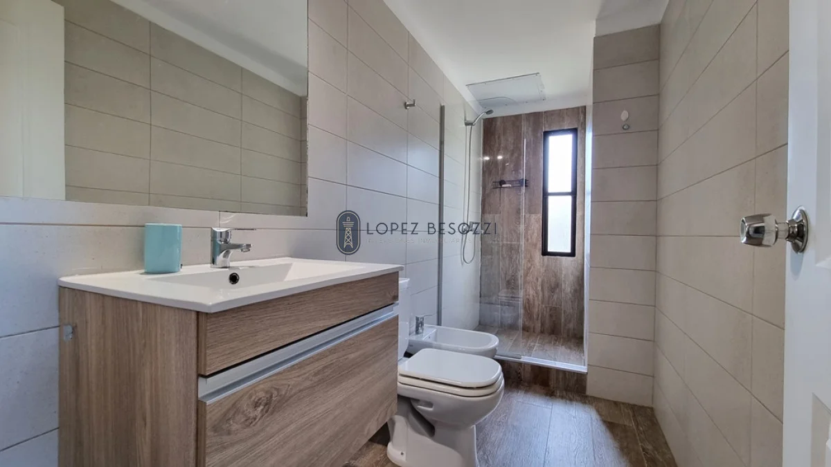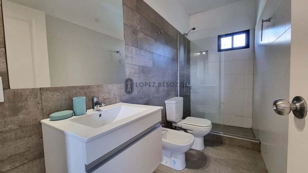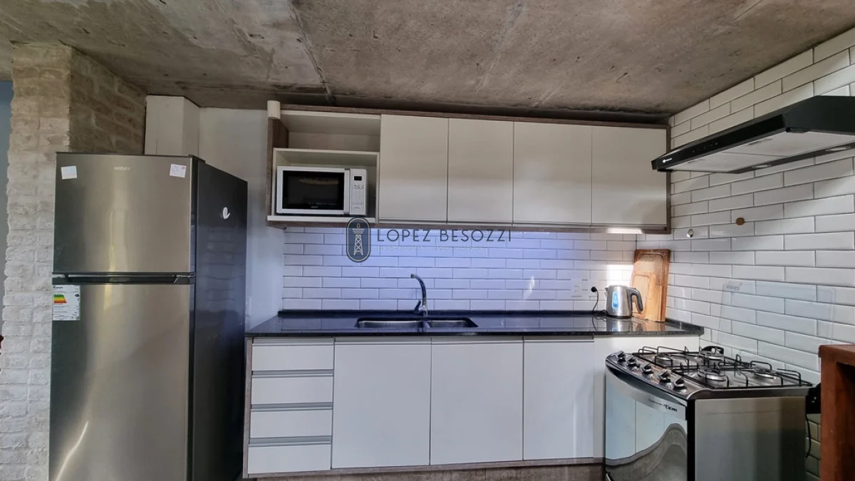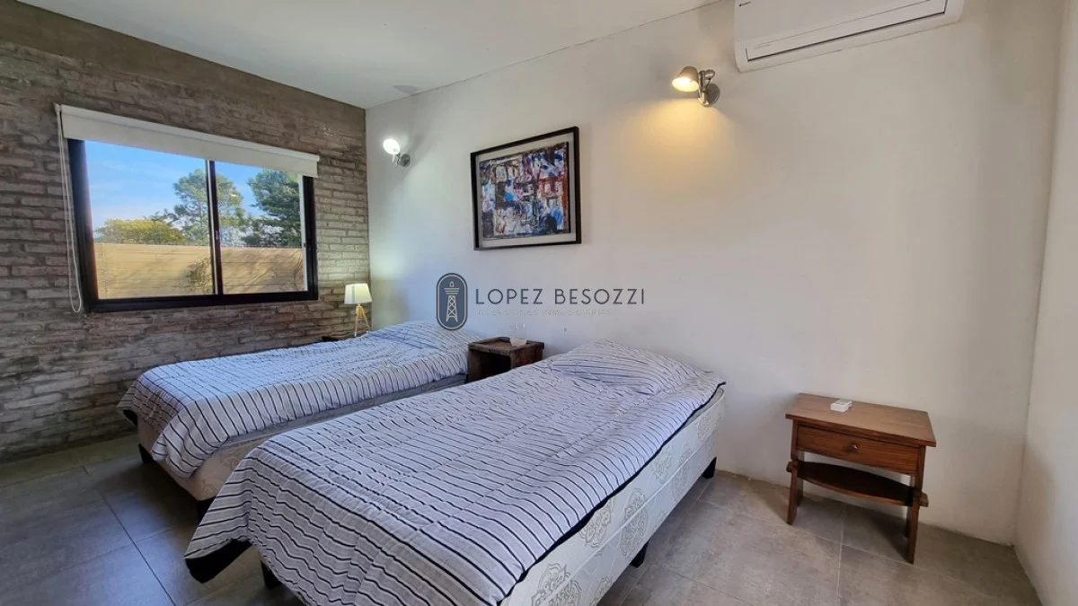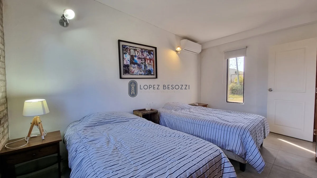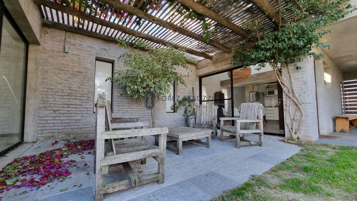 En planta baja posee living con estufa a leña tradicional con ventanales hacia el jardín de invierno y enfrentado al mismo se encuentra la cocina-comedor con gabinetes aéreos y bajo mesada con la particularidad de contar techo a doble altura para mayor luminosidad en el ambiente; pasillo de distribución hacia un dormitorio y baño completo.