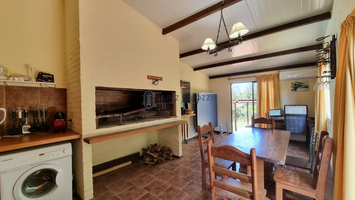 Sobre un terreno de 551m² y amplio frente de 17 metros sobre Avenida de La Gloria, propiedad de solida construcción en dos niveles, en planta baja con living con estufa a leña tradicional, cocina - comedor el cual posee semi-integrada mediante puerta de granero la barbacoa cerrada; pasillo de distribución hacia dos dormitorios y baño completo.