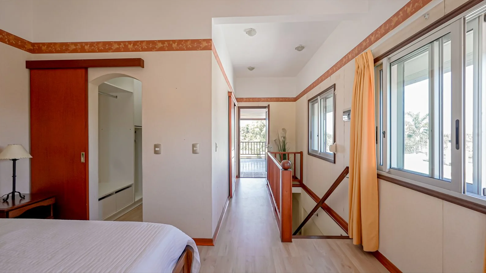 Planta alta: Al ingresar por la escalera, se encuentra un dormitorio principal con vestidor. Además, el baño completo de planta alta proporciona
