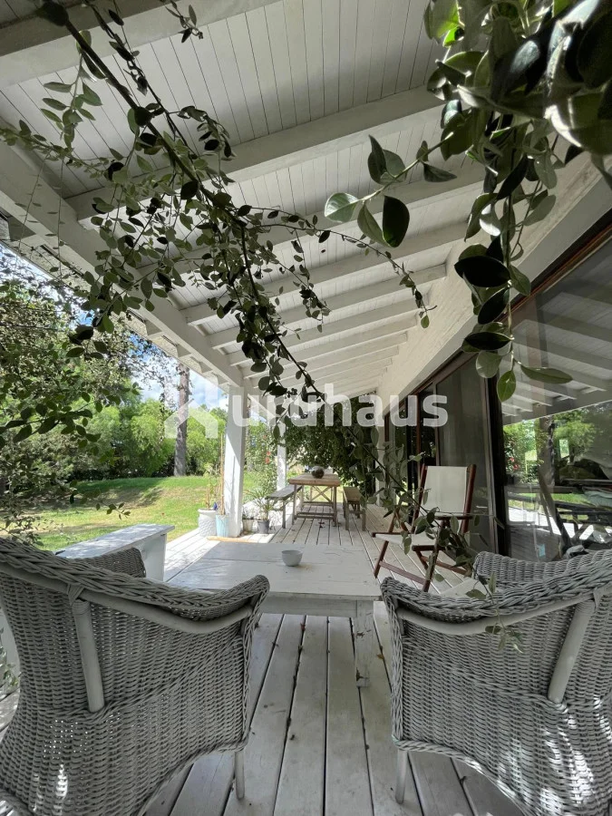 El exterior ofrece una gran galería techada, un lindo parrillero y un amplio patio con mucho verde, ideal para disfrutar del aire libre durante todo el año.