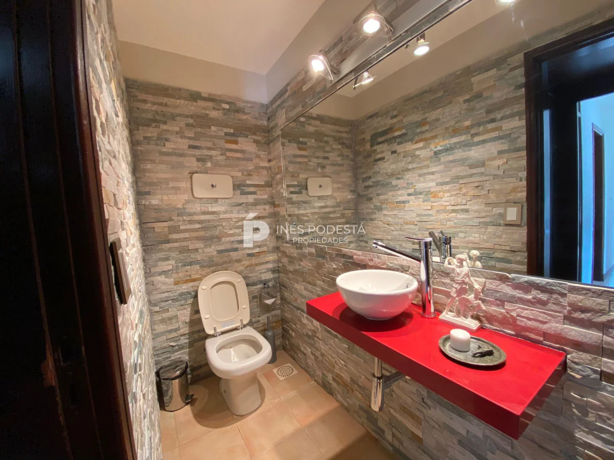 Amplia y agradable casa en zona de Lugano totalmente cercada, cuenta con 2 plantas, 4 dormitorios ( 2 en suite ) todos con aire acondicionado y televisión en todos los dormitorios, cocina, living, comedor, toilette, dependencia de servicio con baño, terraza, jardín, piscina climatizada, parrillero techado, rampa para subir el auto y dejarlo adentro.