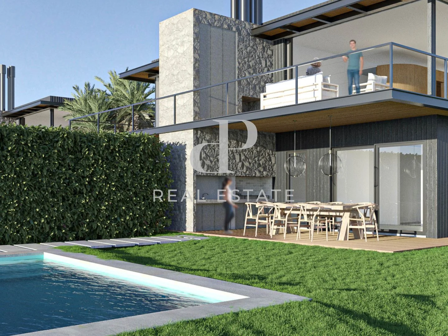 El sector exterior, presenta un diseño paisajístico en relación con el entorno, se proyectan un deck de madera con parrillero completo y en planta alta una terraza con parrilla móvil, que busca generar una conexión interior y exterior que permite disfrutar de una impresionante vista al mar.