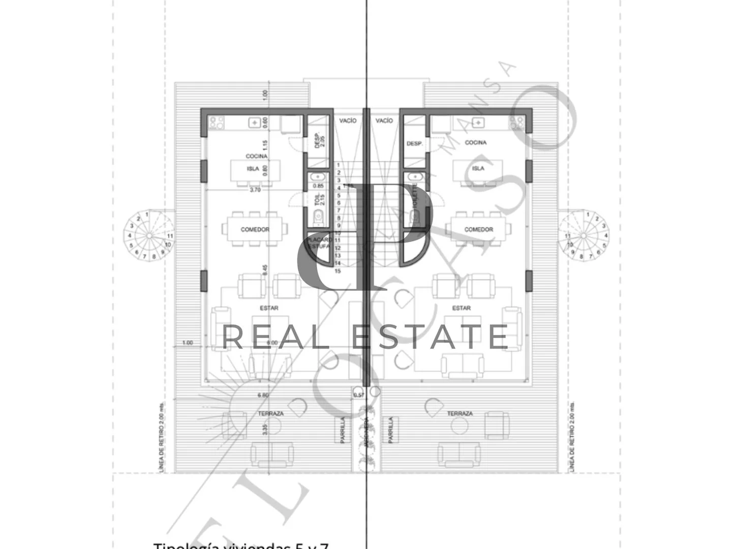 Las unidades, en 2 plantas, cuentan con living comedor con salida a amplia terraza con parrillero. Cocina integrada con isla y despensa, se entrega con anafe, horno y campana de extracción instaladas. 3 dormitorios con placares,el principal en suite.